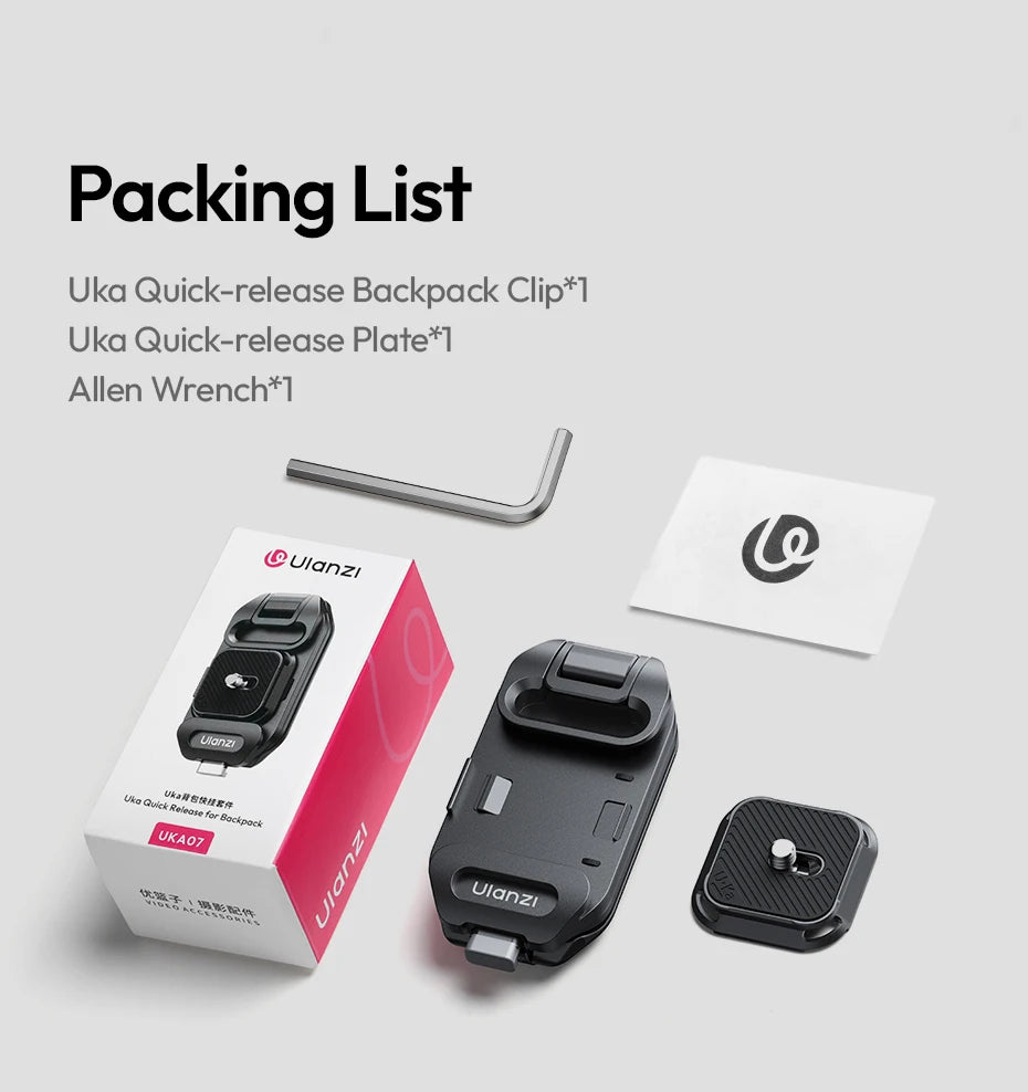 Ulanzi UKA07 Uka Quick-Release Kit for Backpack Hassle-Free Hanging 10KG Load Suit for Arca-Swiss & F38 Quick Release System