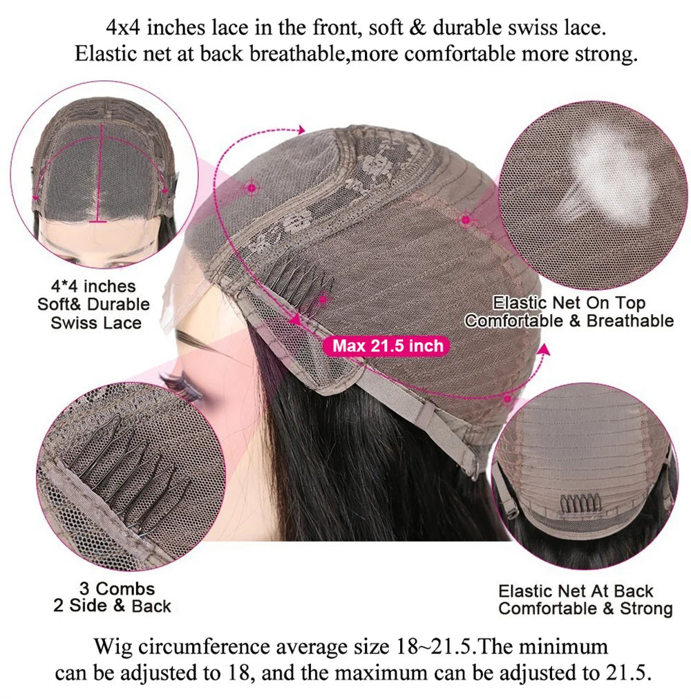 Human Hair Lace Wigs Remy Brazilian Transparent Body Wave 4x4 Lace Closure Wig 180% Density Cranberry Hair 4x4 Lace Front Wig