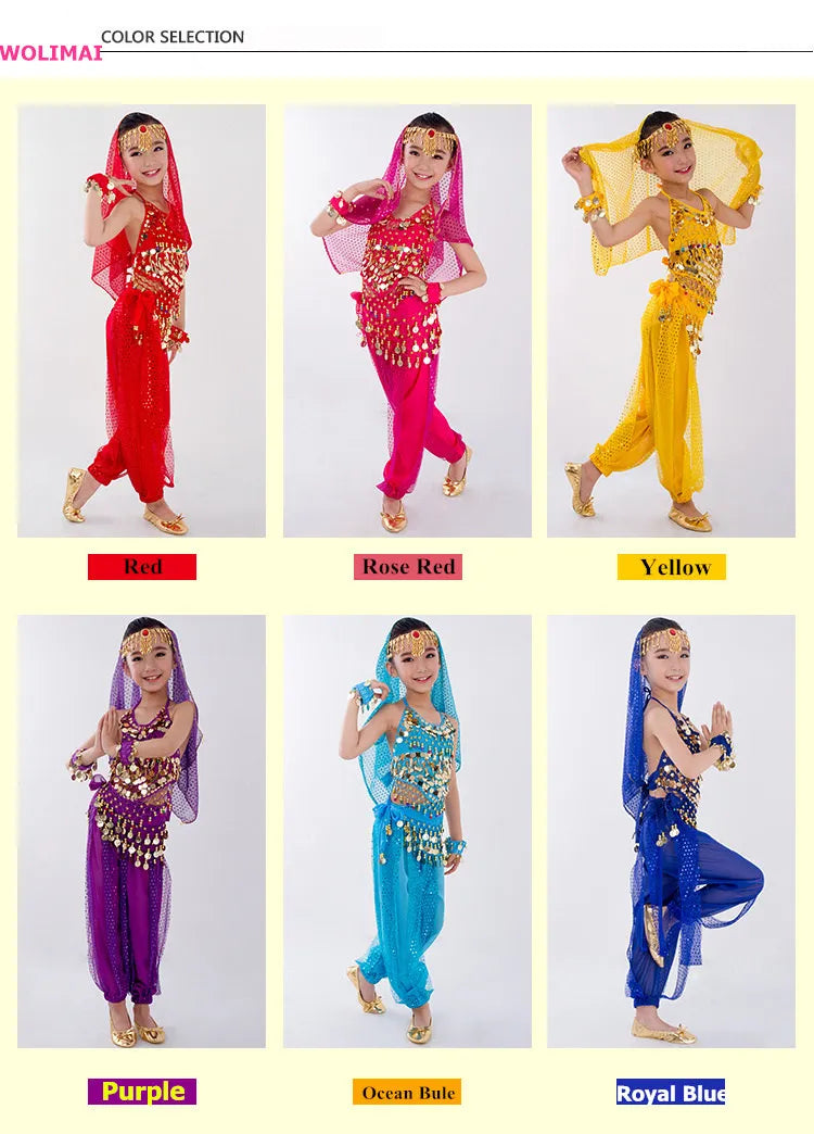 Kids Belly Dance Costumes Set Oriental Dance Girls Belly Dancing India Belly Dance Clothes Bellydance Child Kids Indian 6 Colors