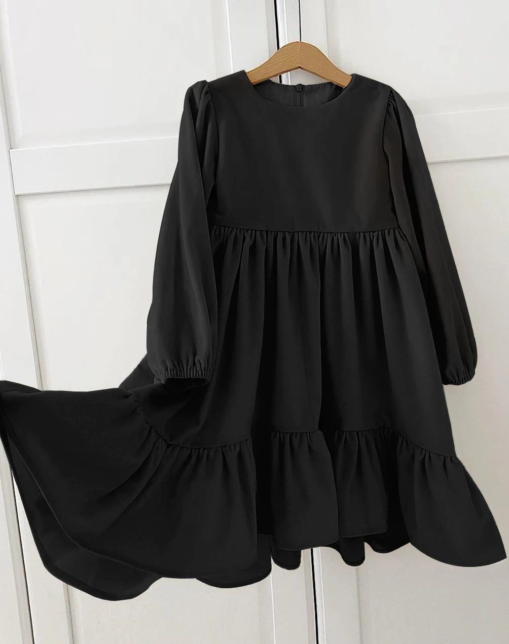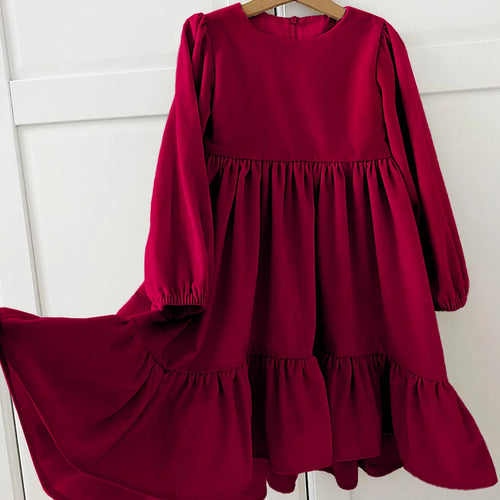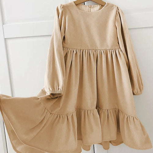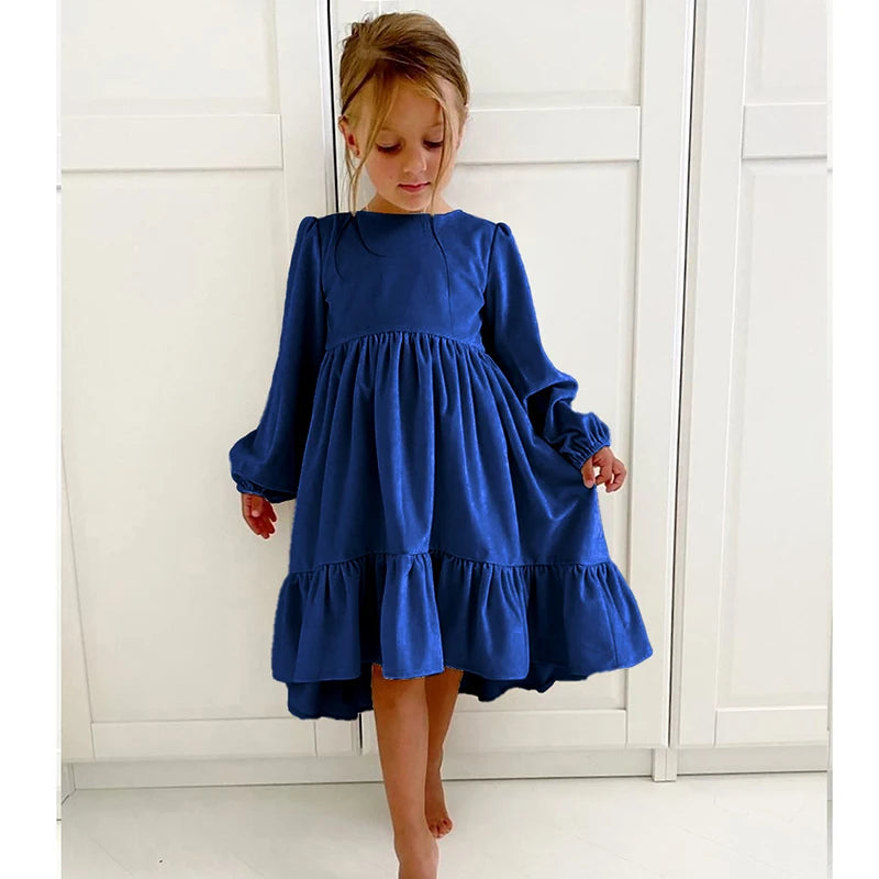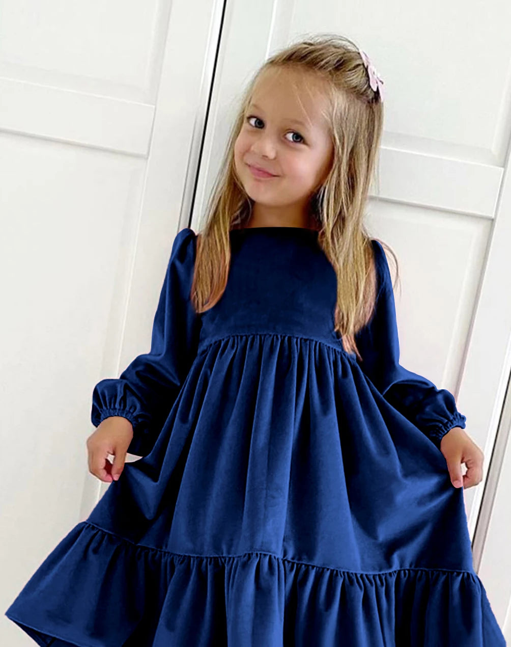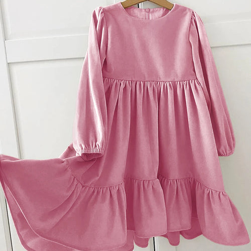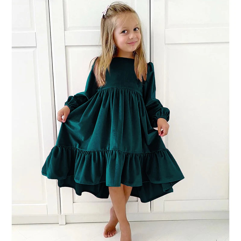Spring AutumnGirls Dress Ruffles Long Sleeve Girl Velvet Retro Kids Party Dress Girl Princess Dress Children Clothing 6-12Y