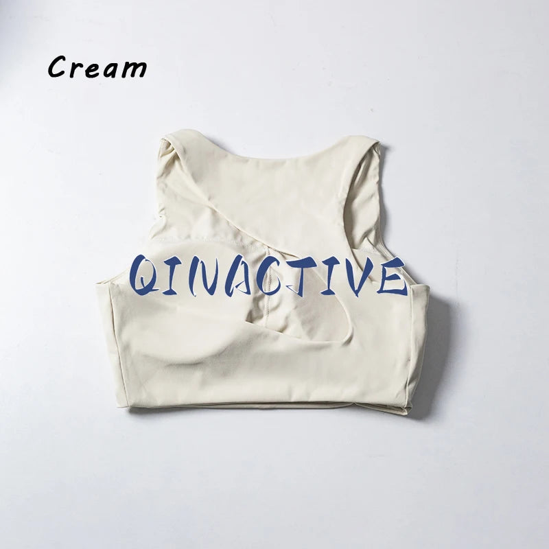 QINACTIVE Sexy Backless Women Crop Top Fitness Solid Sports Bra Gym Shockproof Workout Yoga Tank Tops