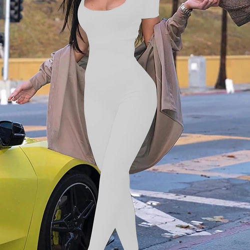 Women's Rompers Short Sleeve Solid Skinny Bodycon Jumpsuits Fashion Sports Fitness Casual Activity Streetwear Overalls