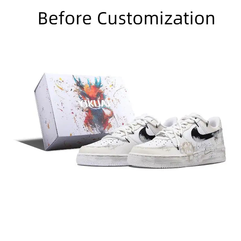 【Customize】Nike Air Force 1 Skateboarding Shoes Men Low-top Grey/white/yellow Sneakers shoes CW2288-111