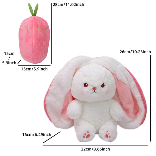 Kawaii Fruit Bunny Plush Toy Cute watermelon StrawberryCarrot Reversible Rabbit Zipper Plush Toy Kids Birthday Gift