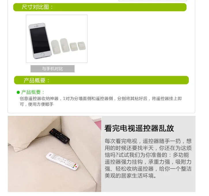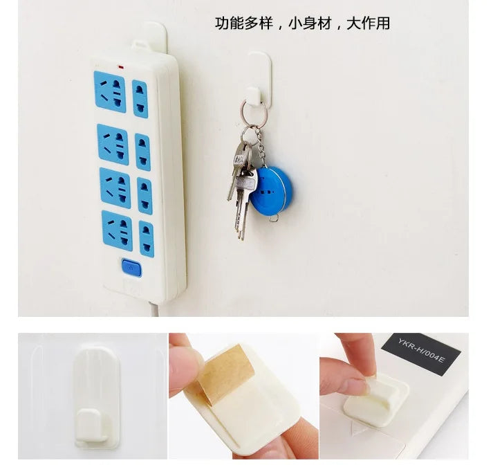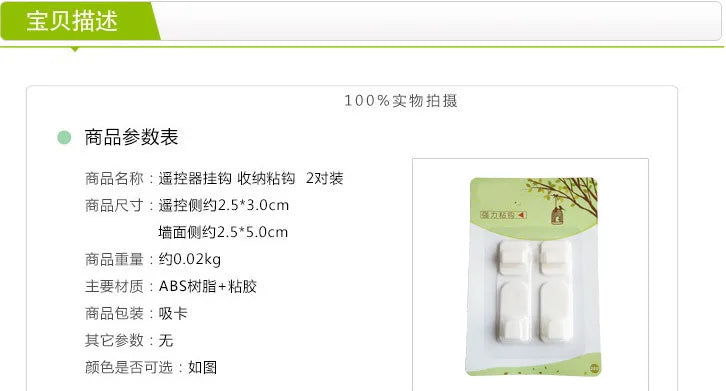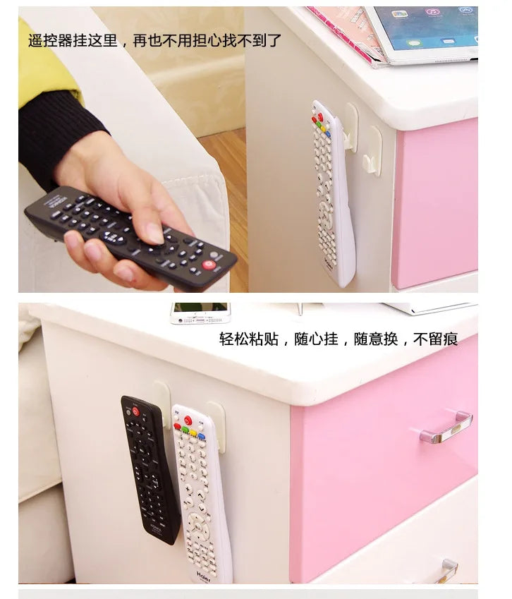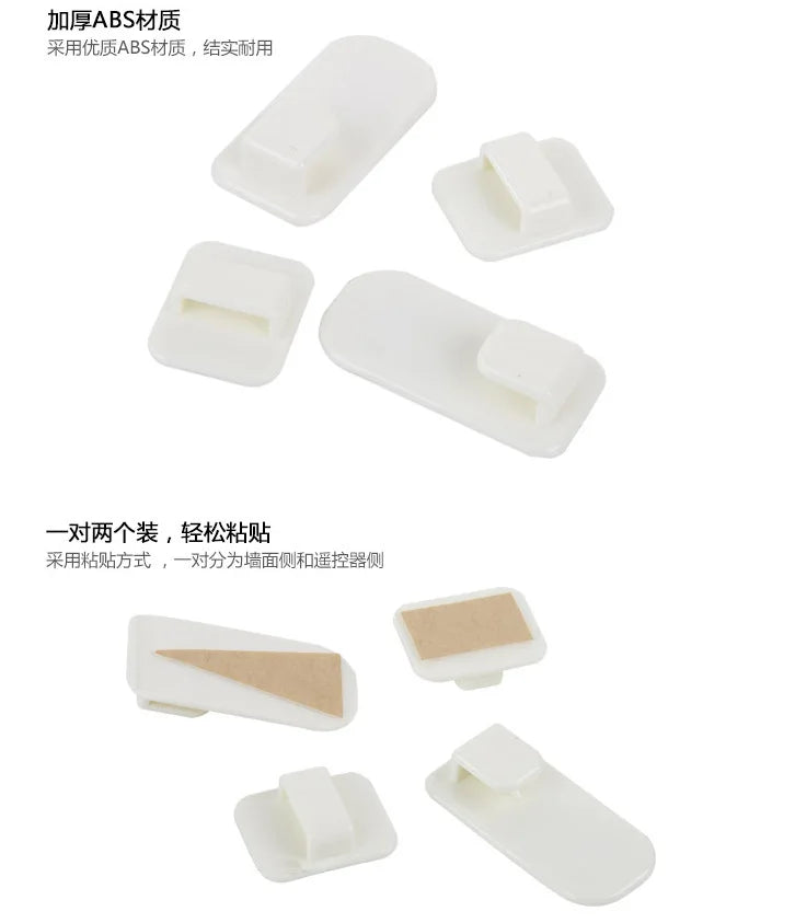 2 Pairs Sticky Hook Set for Air Conditioner TV Remote Control Strong Hanger Plastic Key Wall Racks Holder Home Organization