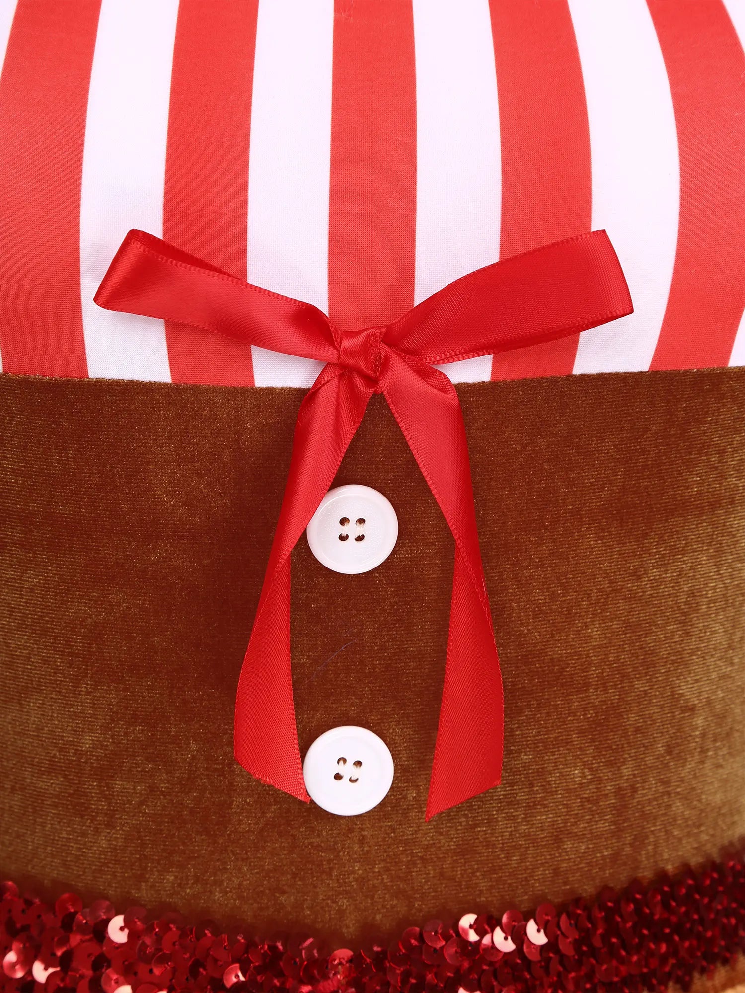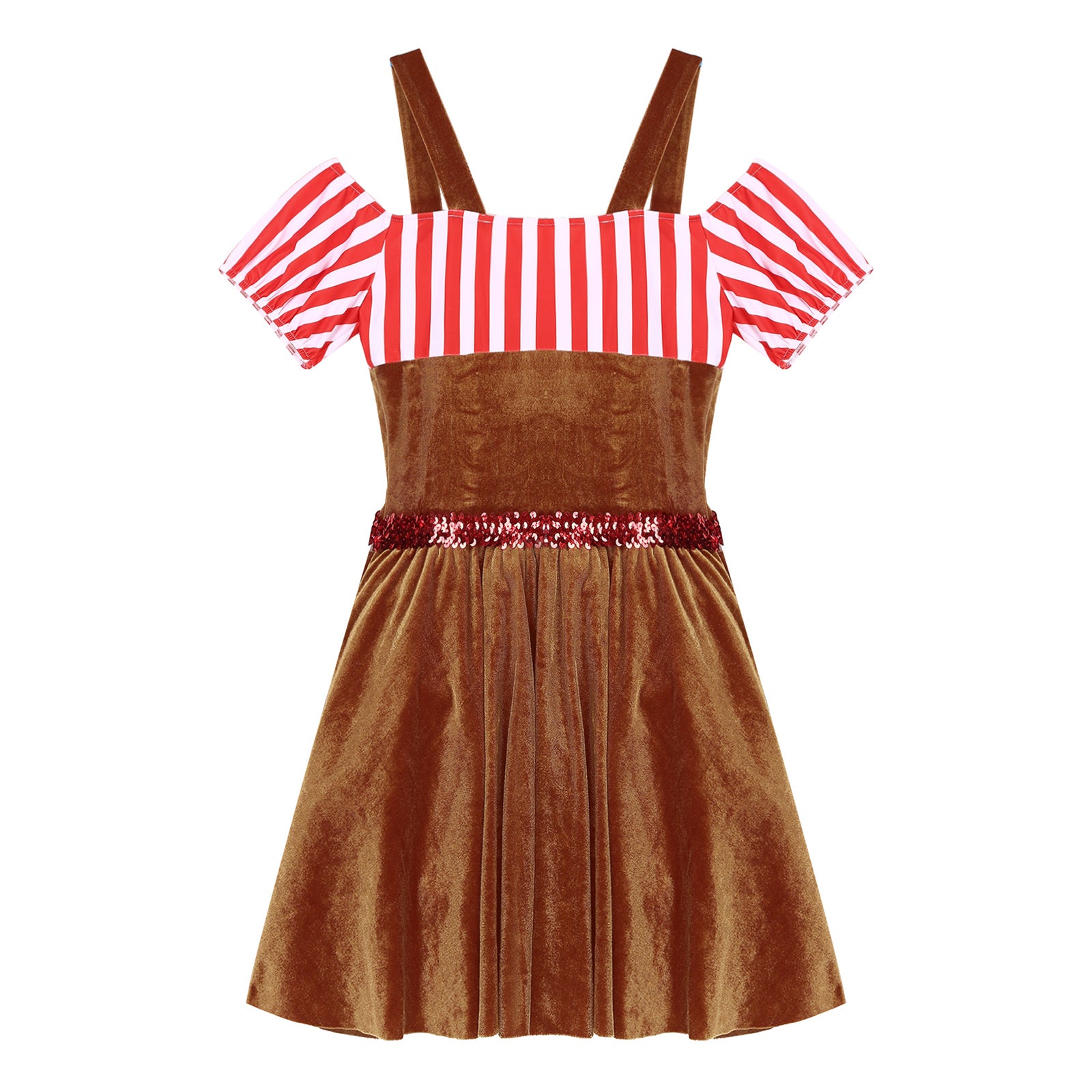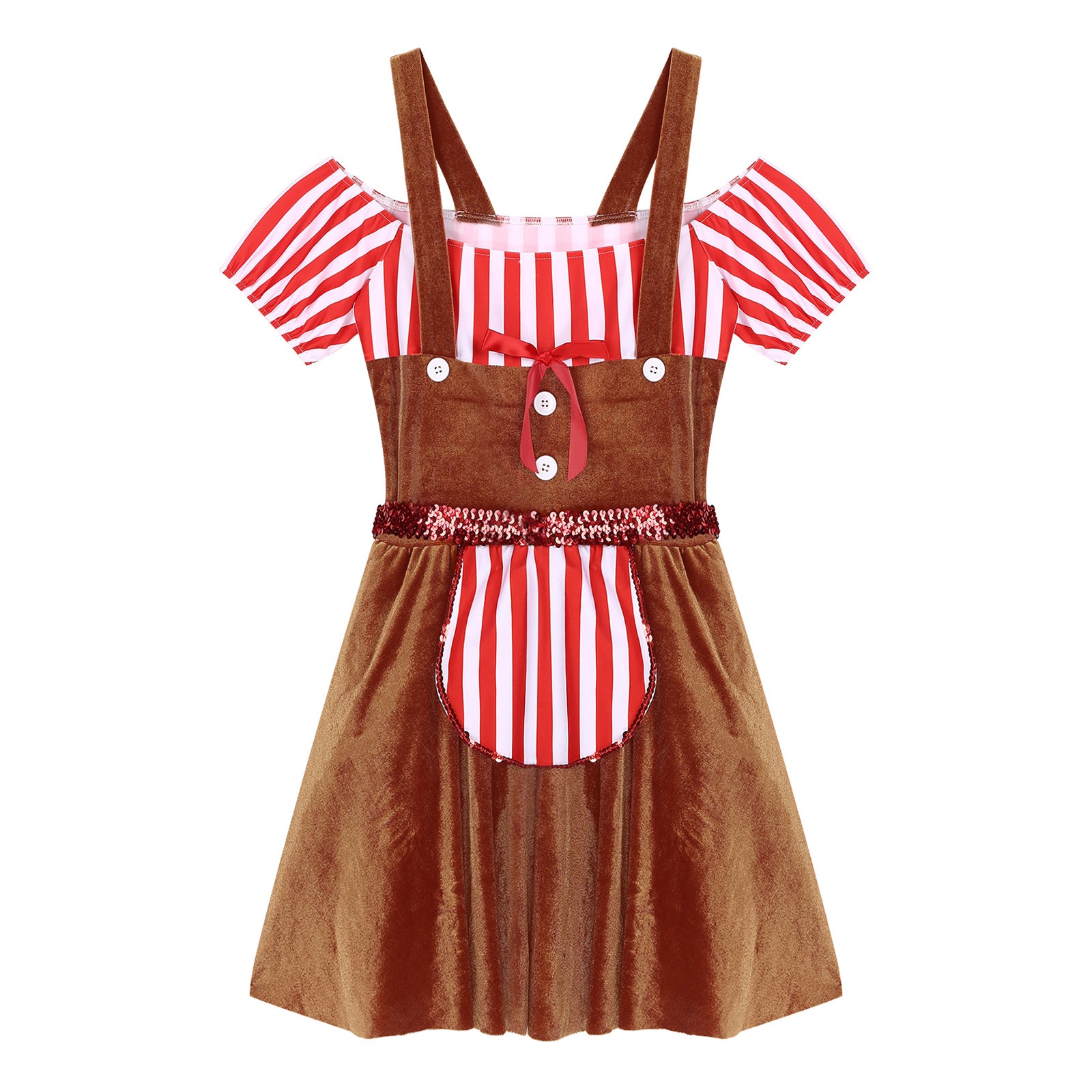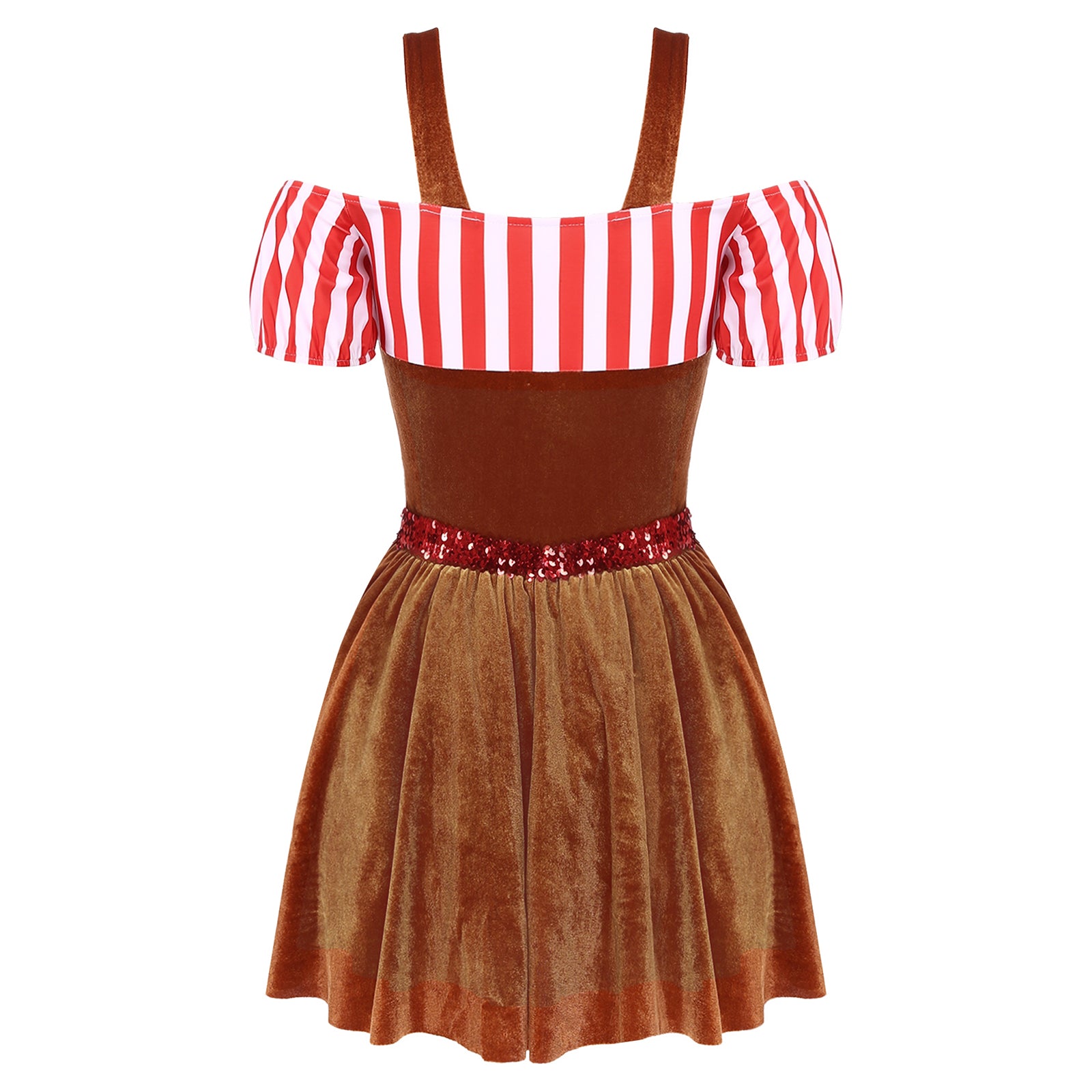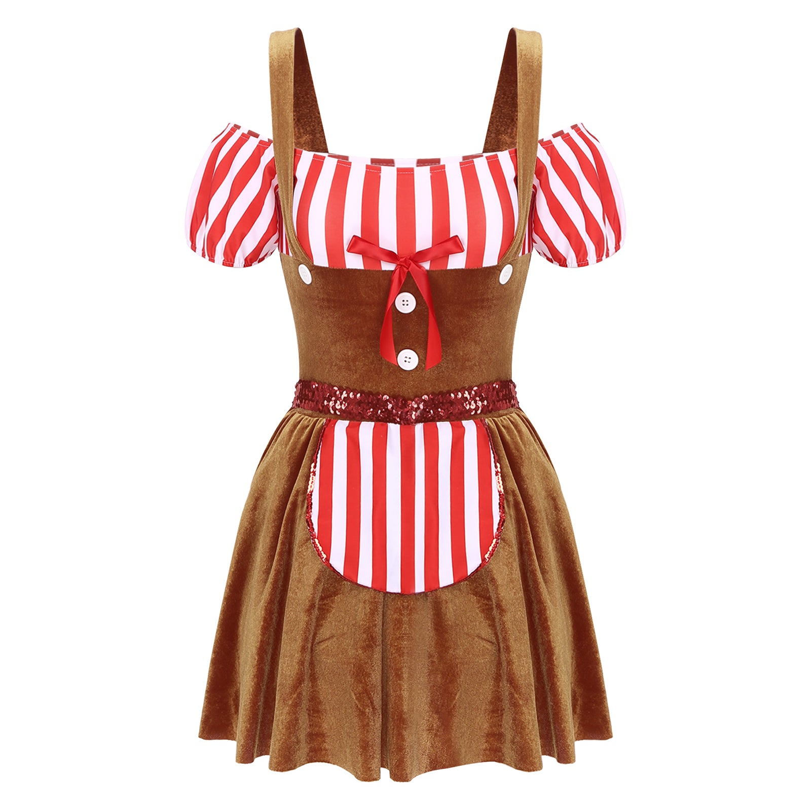 Womens Gingerbread Man Dress for Adult Christmas Halloween Costume Cookie Cosplay Dress for Carnival Party Dress Up Clothes