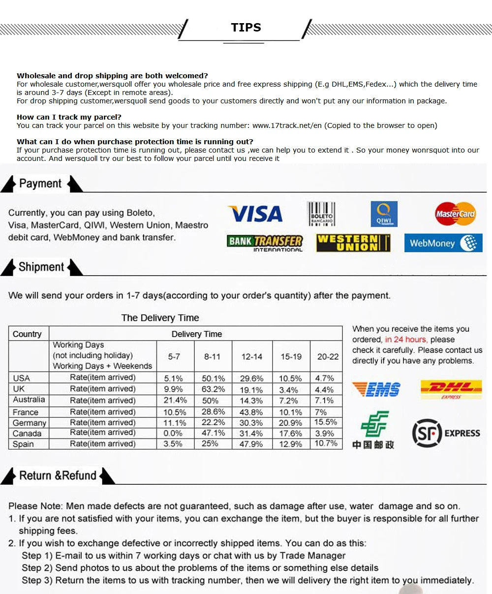 7 days for exchanges and returns