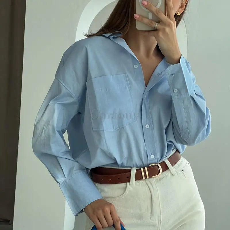 Garaouy Spring Women Single Breasted Blouses Vintage Lapel Collar Long Sleeve Office Lady Female Shirt Chic Pocket Top Blusas
