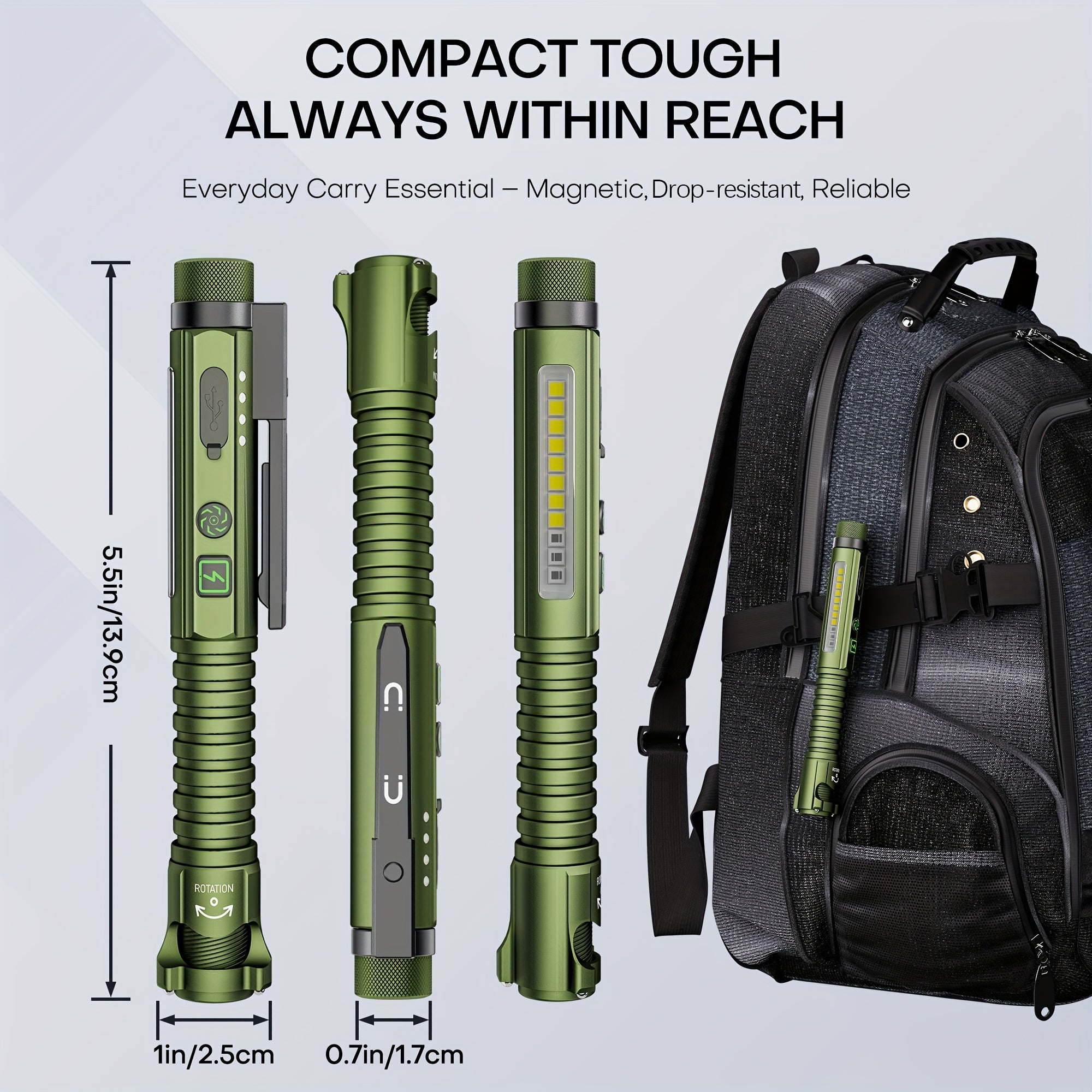 Red Ray Penlight EDC 600LUMEN Rechargeable Portable Flashlight, Ultra-bright Flashlight with Side Light, UV Function, Magnetic Clip And Base, Hidden Bottle Opener, Window Breaker, Suitable for Home, Camping, And Emergency Sit