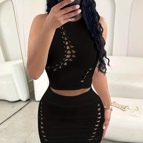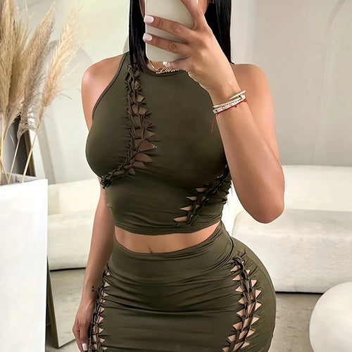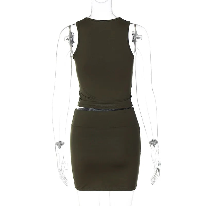 Dulzura Women 2024 Autumn Tank Tops Mini Skirts Party Club Streetwear Two Piece Matching Sets Wholesale Items For Business S3211