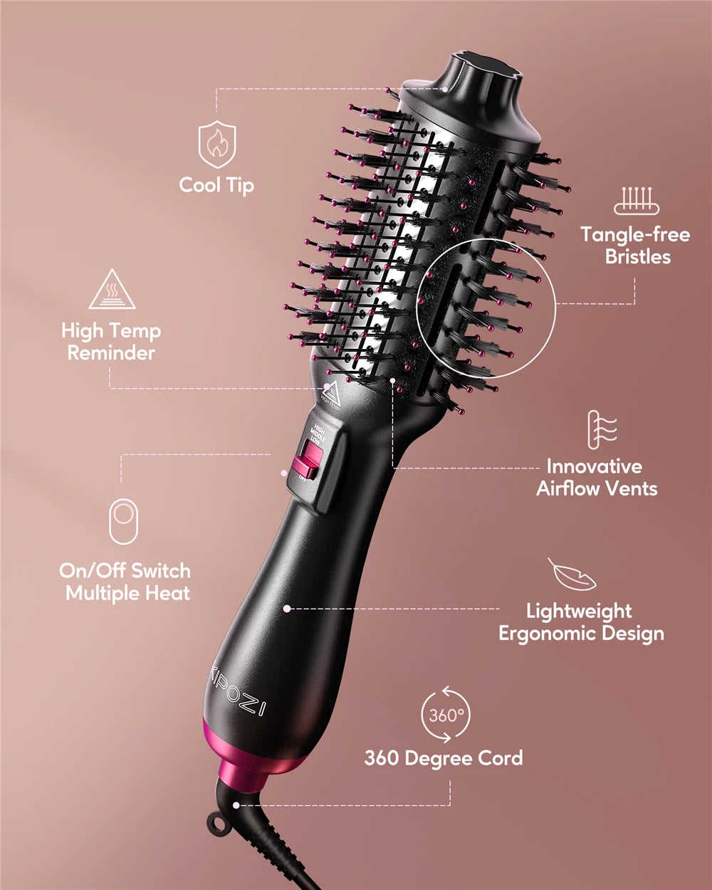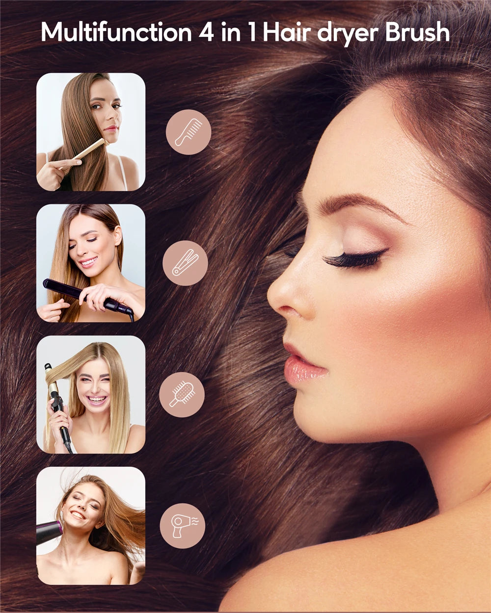 KIPOZI Hot Air Brush 4 in 1 Hot Air Comb Reduces Frizz Static Electricity Hair Dryer Blow Dryer Brush Create Voluminous Curls