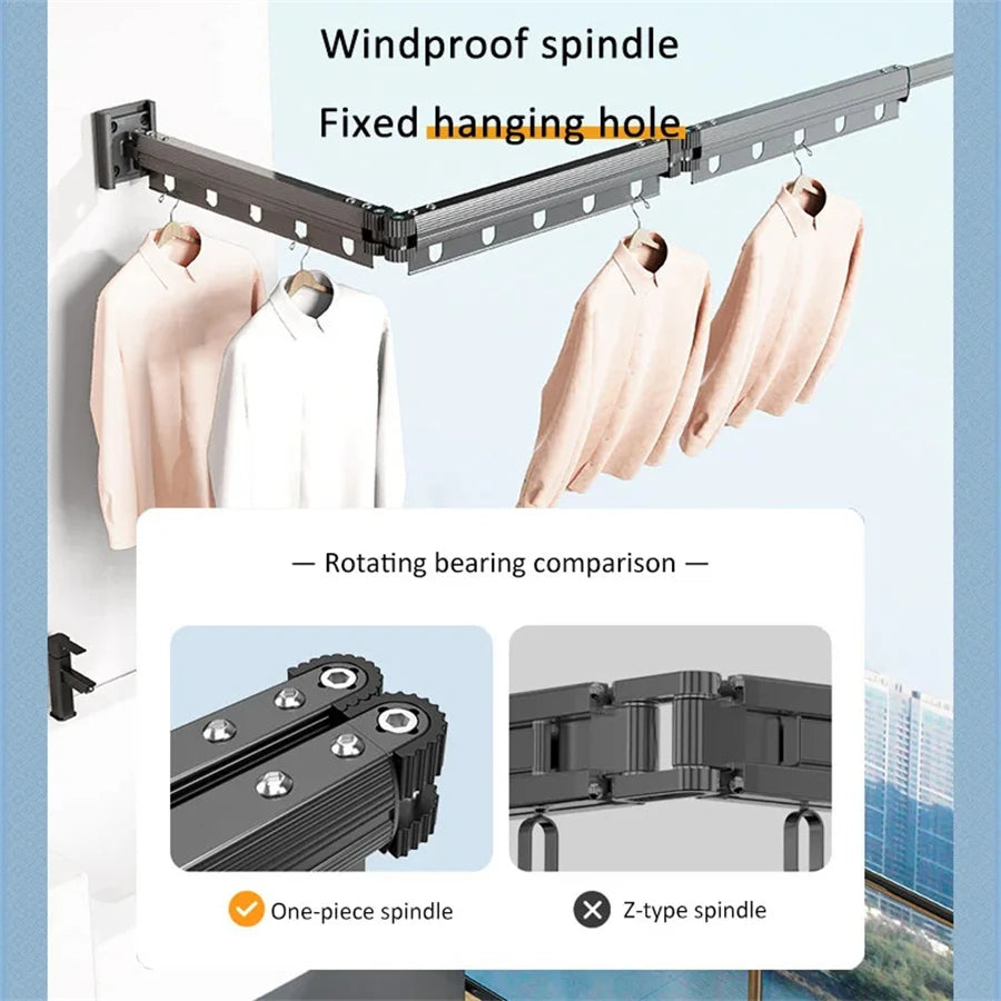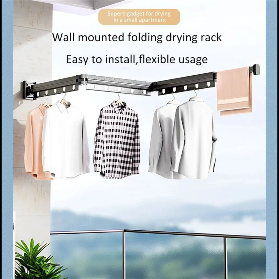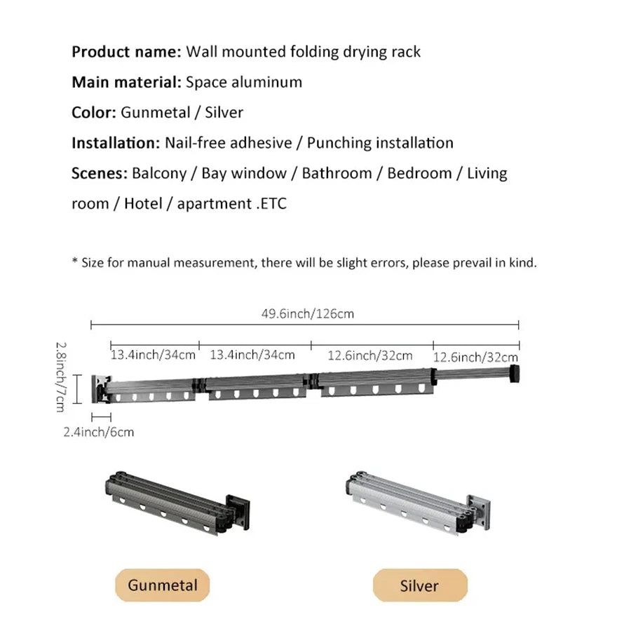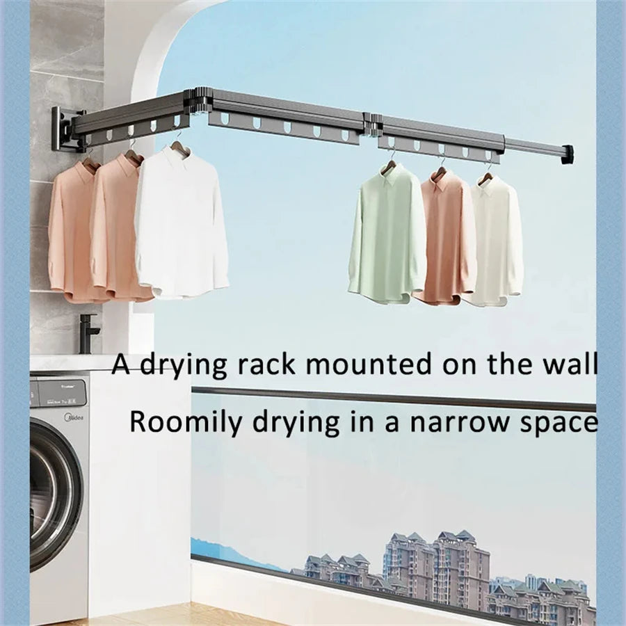 Aluminum Alloy Folding Drying Rack Space Saver Clothes Dryer Wall-mounted Collapsible Drying Rack No Balcony Clothes Hanger