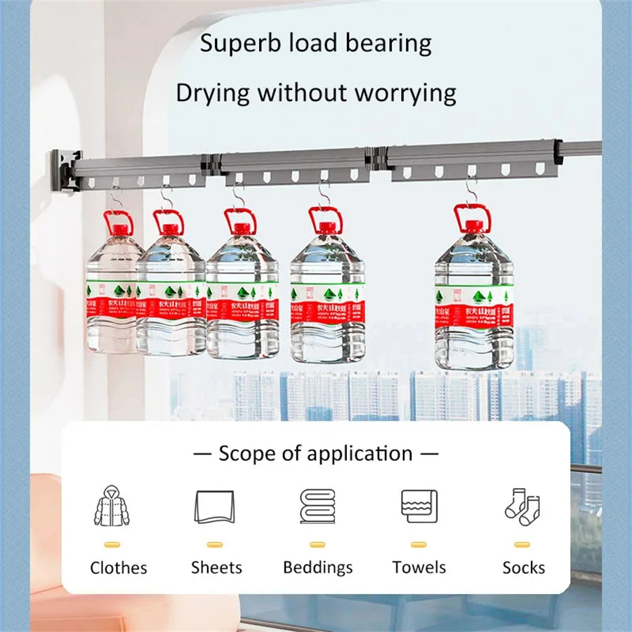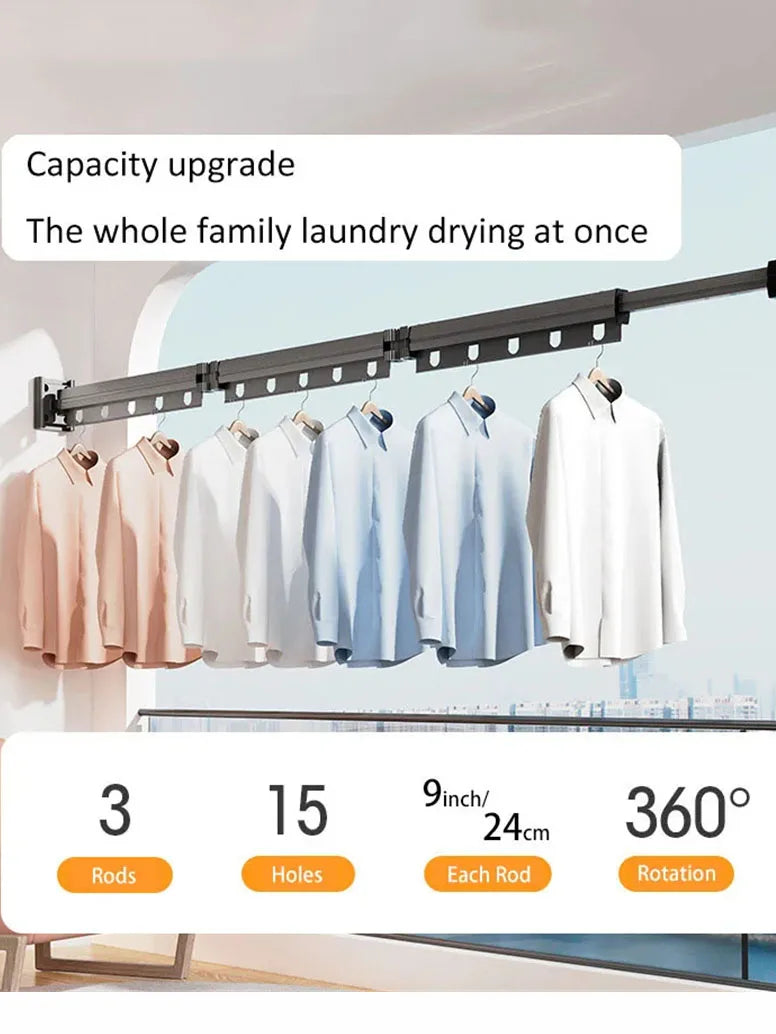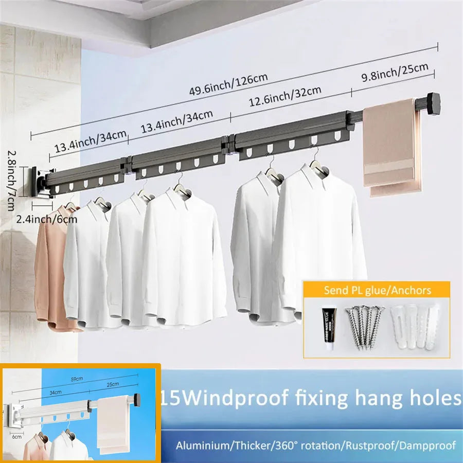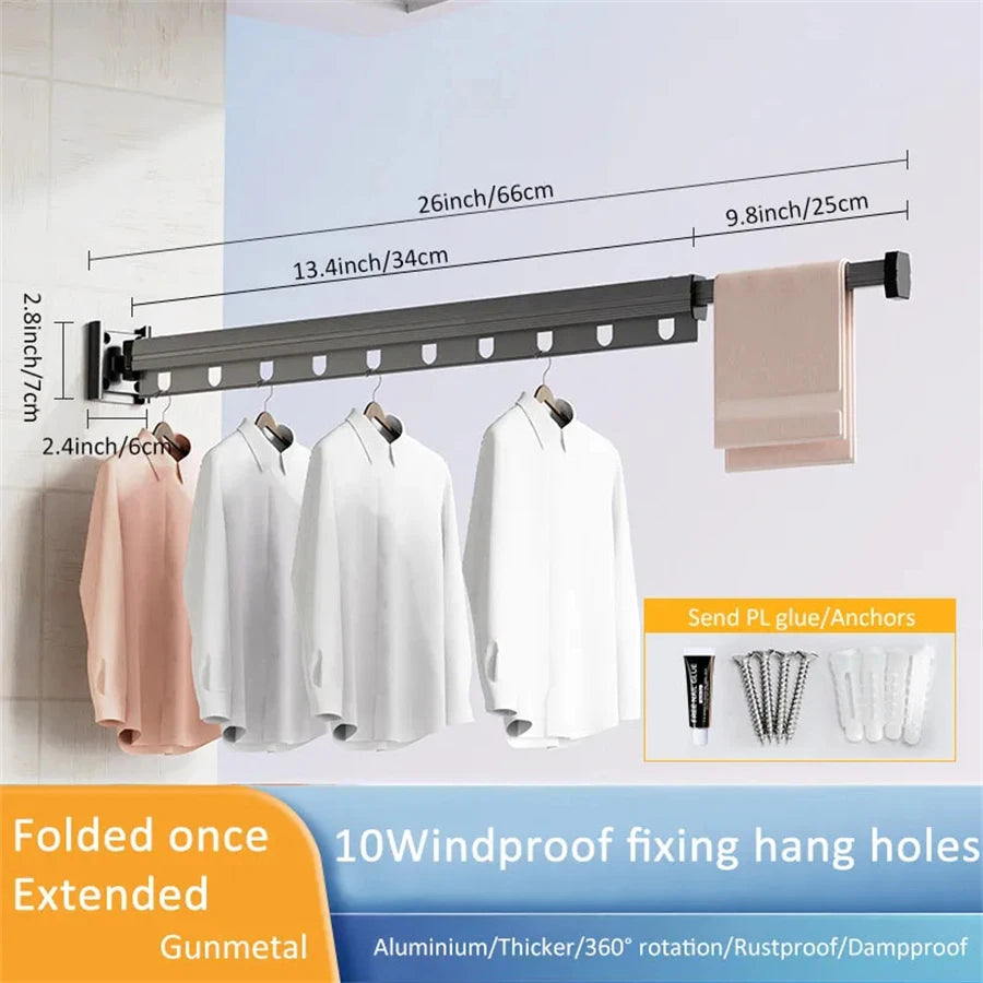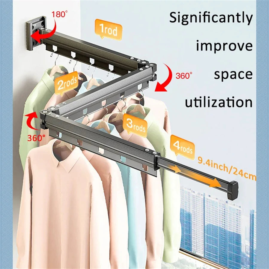 Aluminum Alloy Folding Drying Rack Space Saver Clothes Dryer Wall-mounted Collapsible Drying Rack No Balcony Clothes Hanger