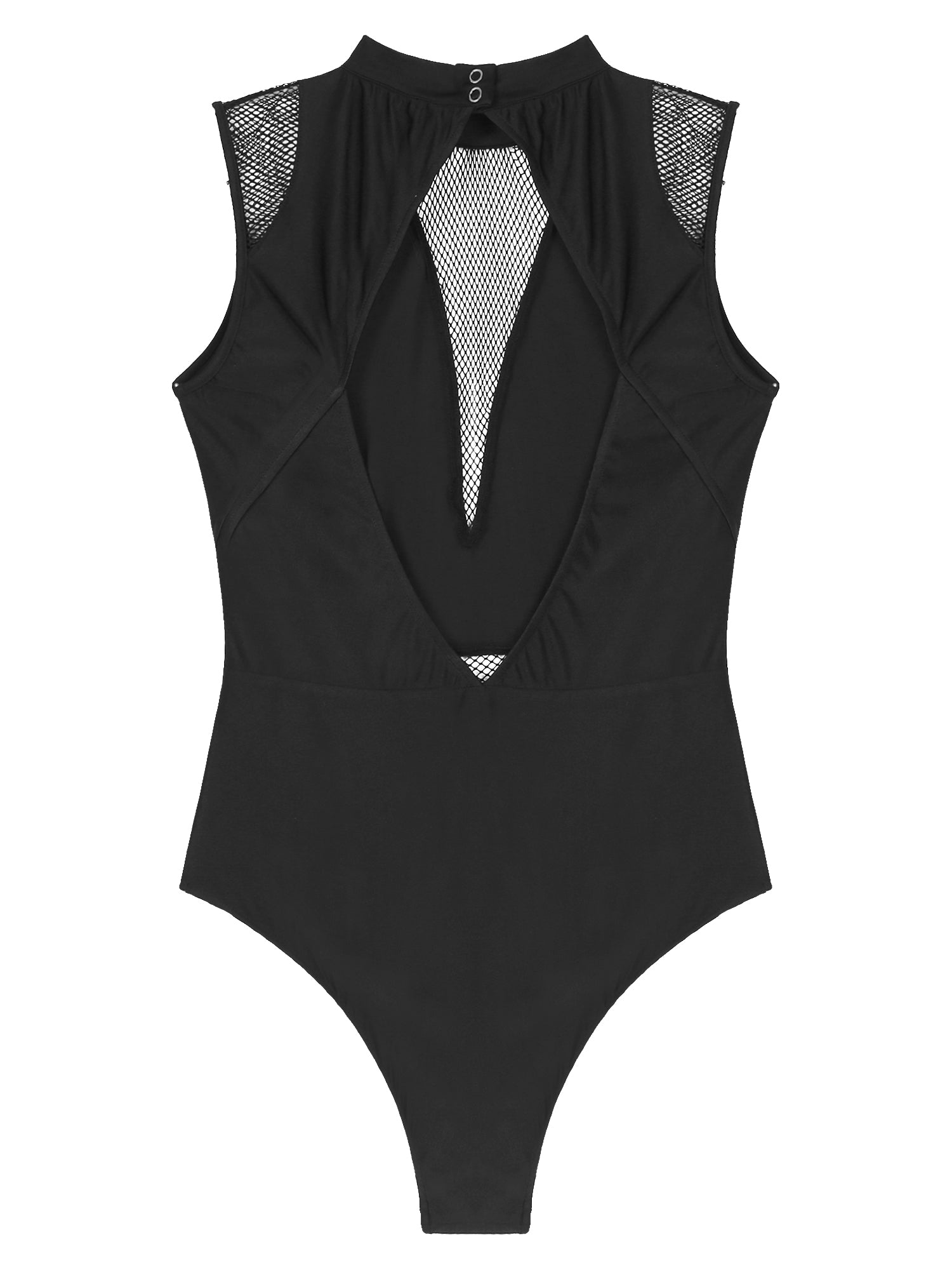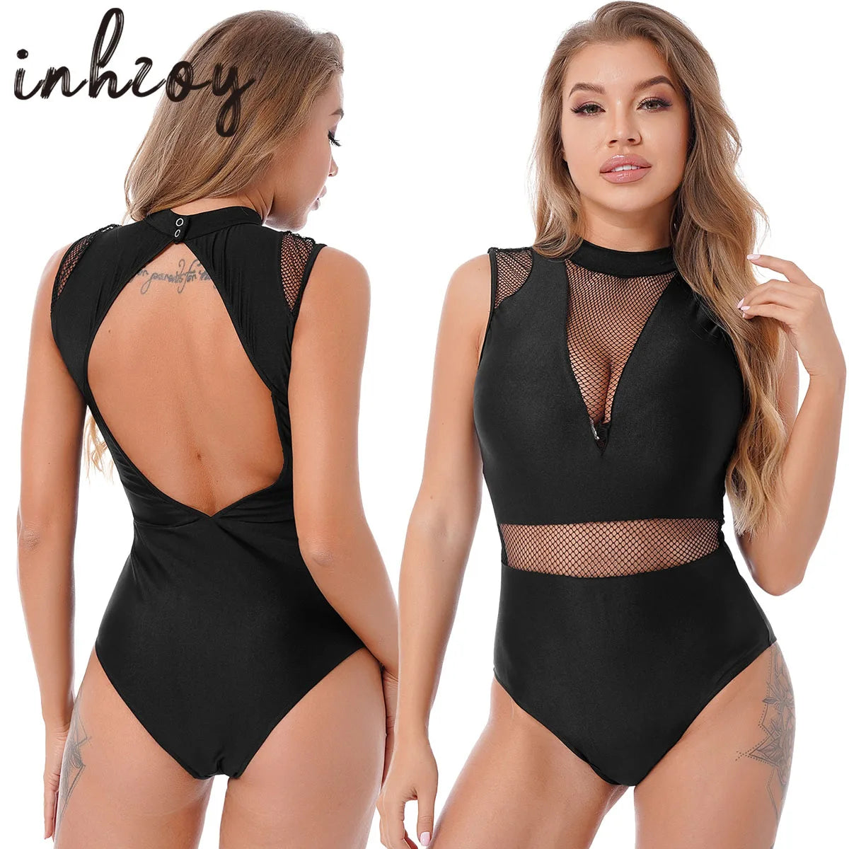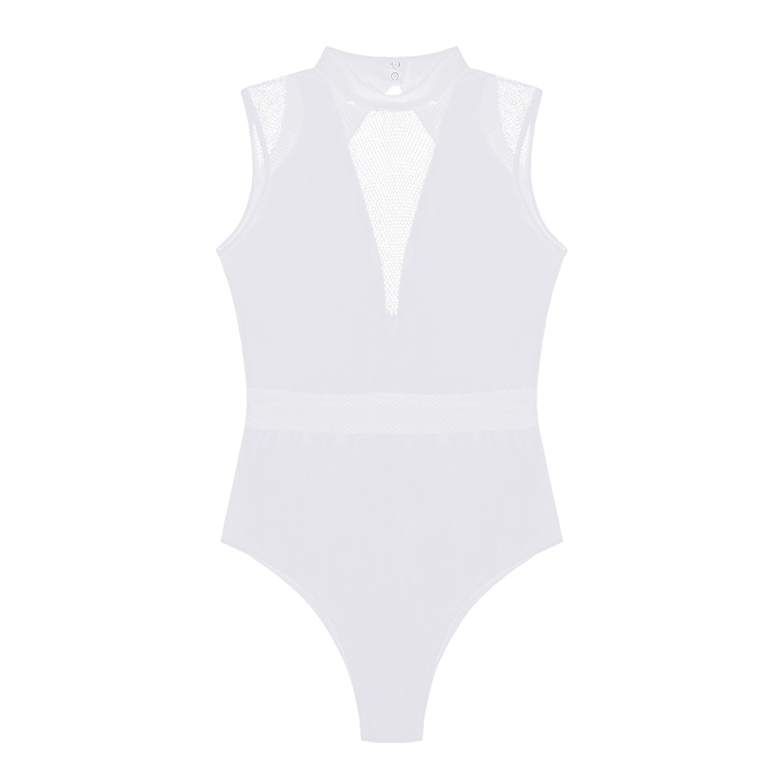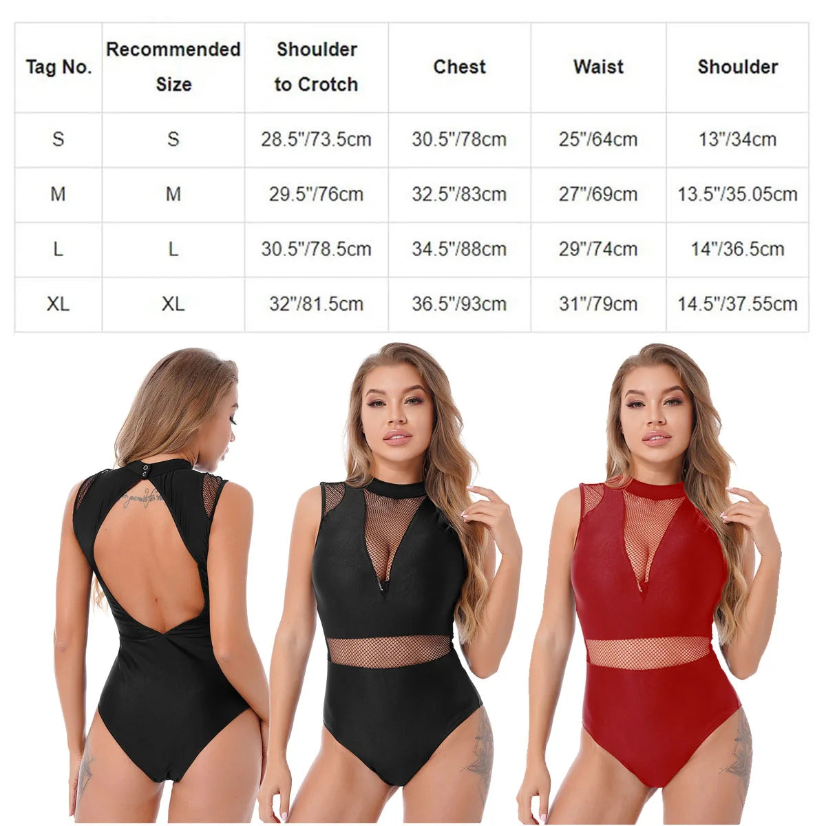 Ballet Dance Leotard Womens Adult Mesh Splice Gymnastics Bodysuit Dancewear One-Piece Backless Training Costume
