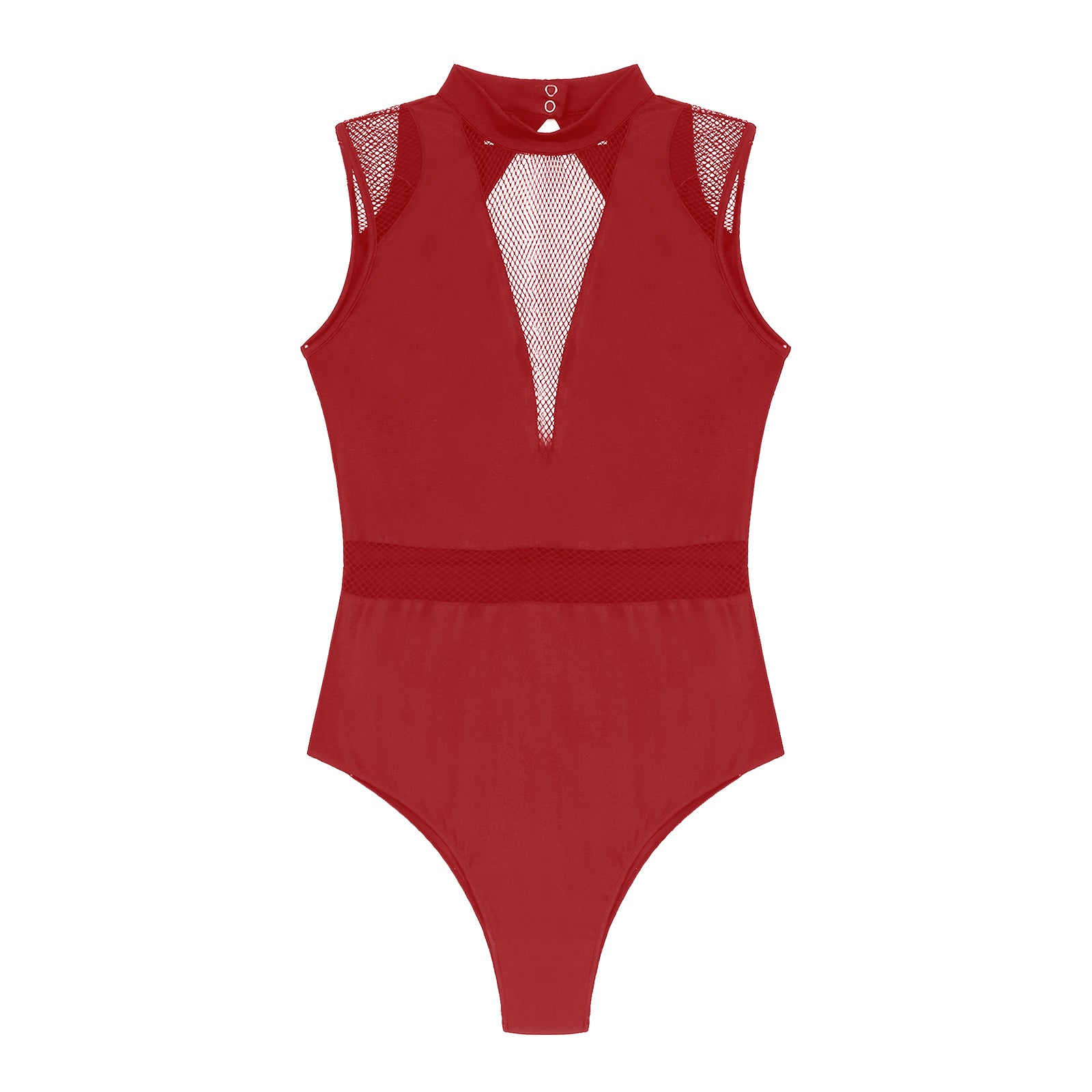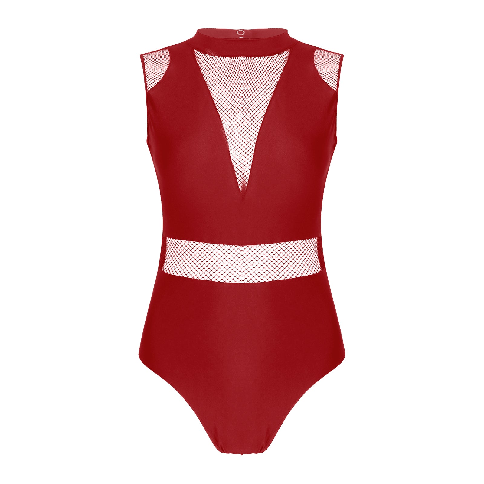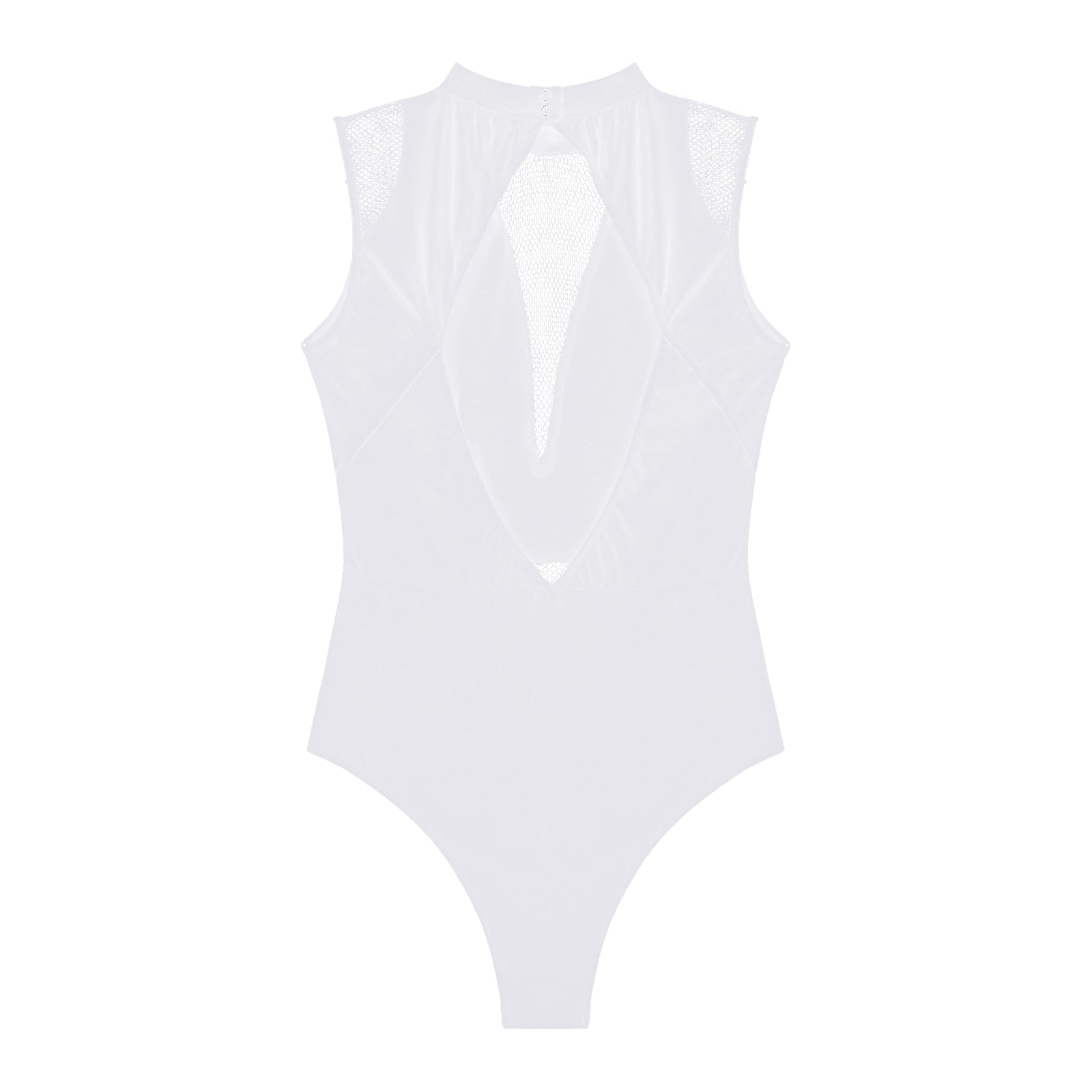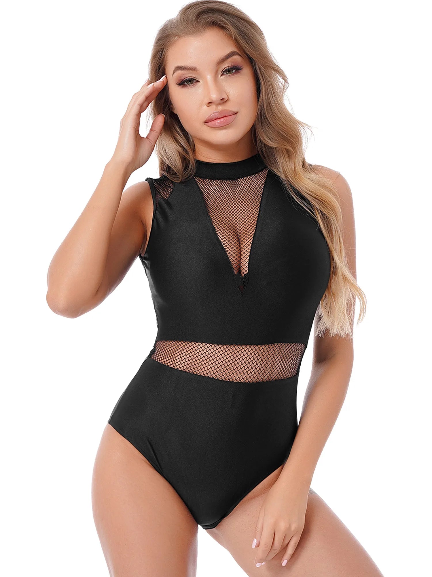 Ballet Dance Leotard Womens Adult Mesh Splice Gymnastics Bodysuit Dancewear One-Piece Backless Training Costume