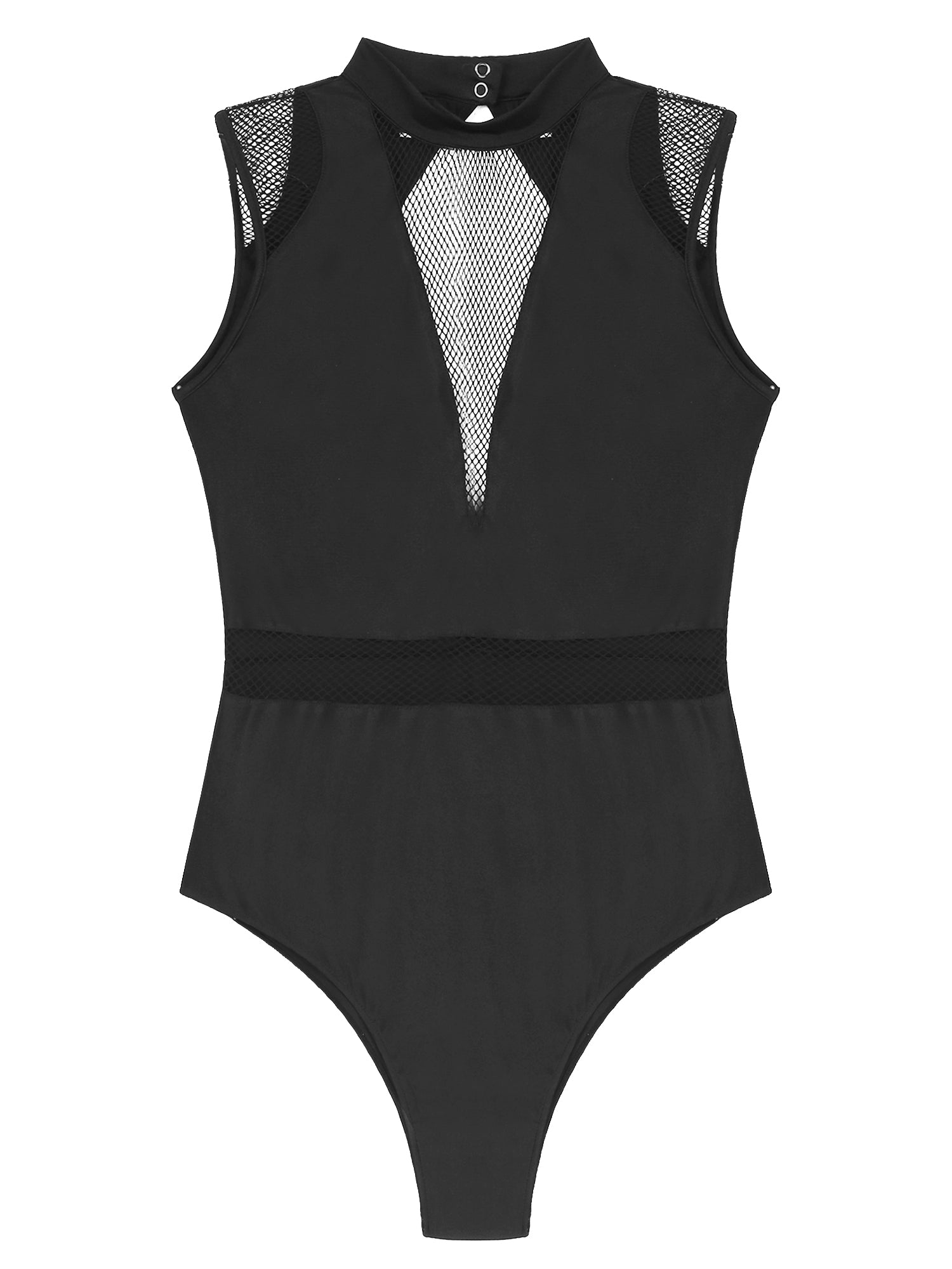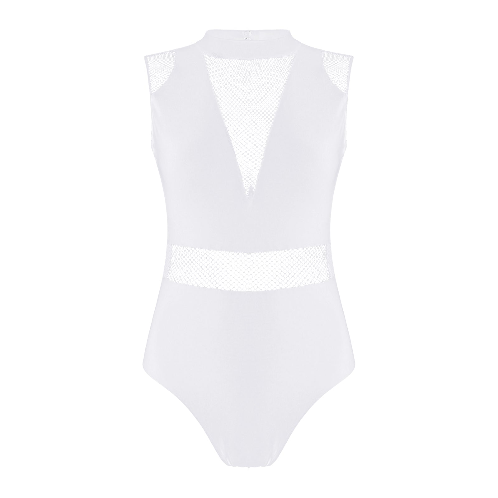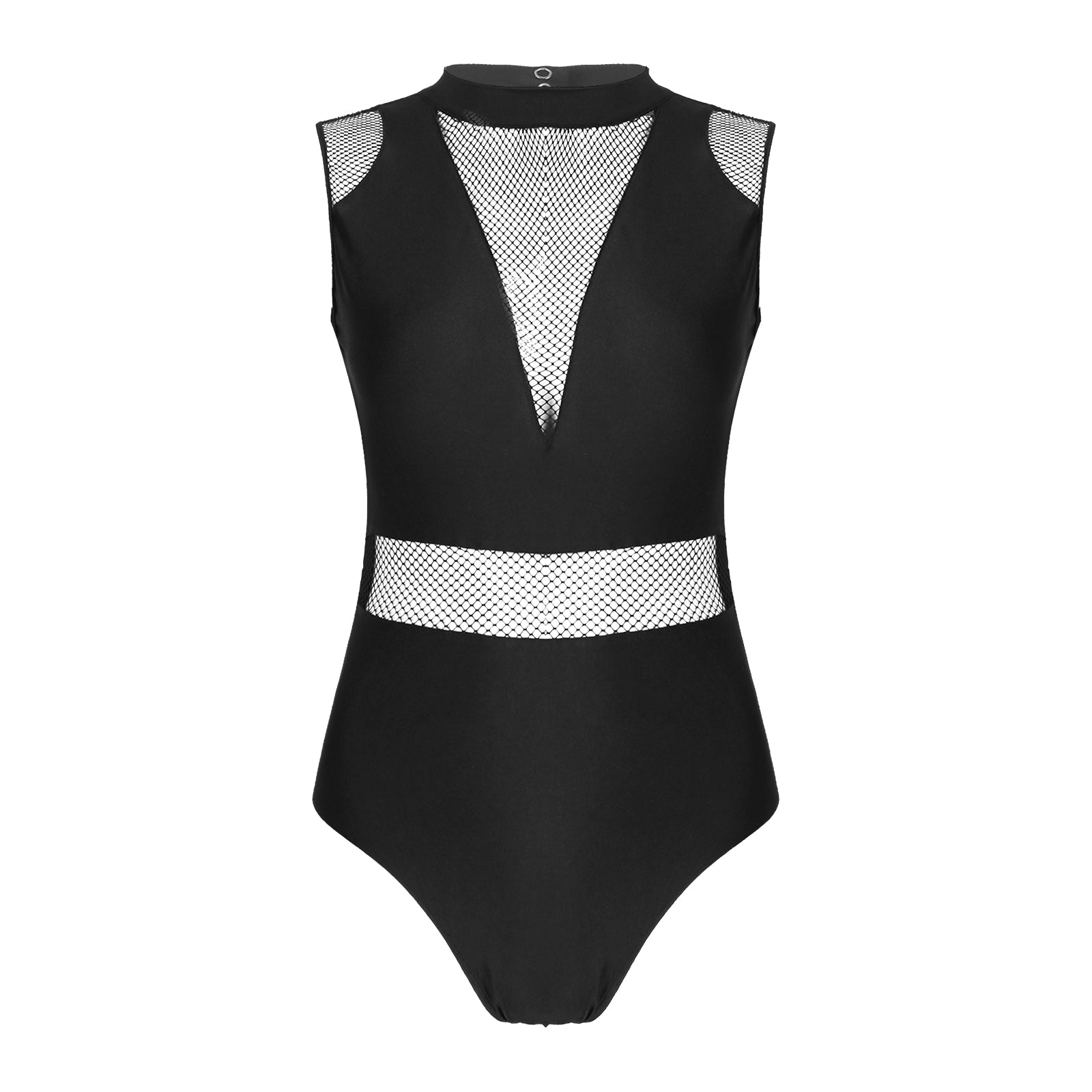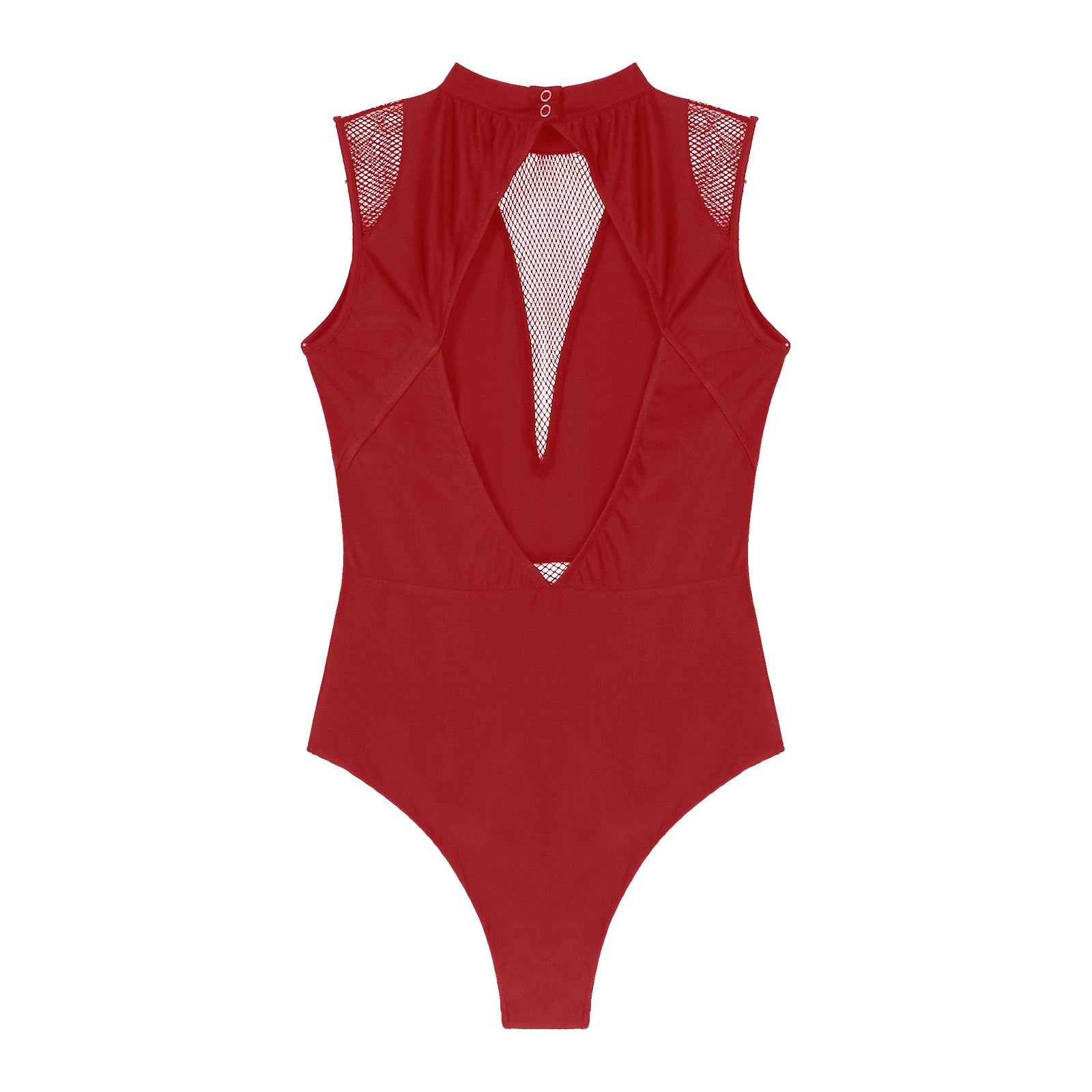 Ballet Dance Leotard Womens Adult Mesh Splice Gymnastics Bodysuit Dancewear One-Piece Backless Training Costume