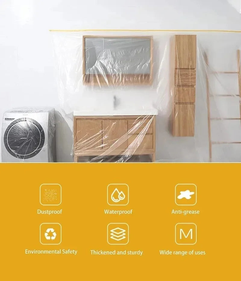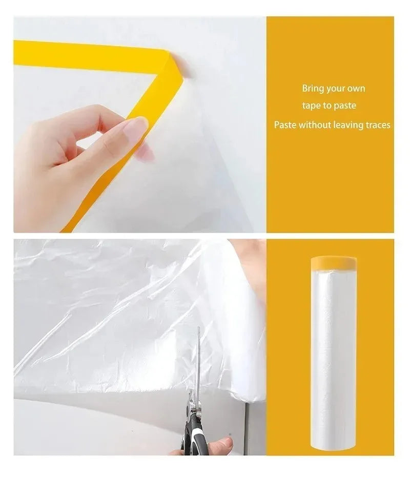 Pre-Taped Masking Films Self-adhesive Cabinet Dust Cover Disposable Cut Dust Film Paint Protection Film Plastic Cloth Sheet Roll