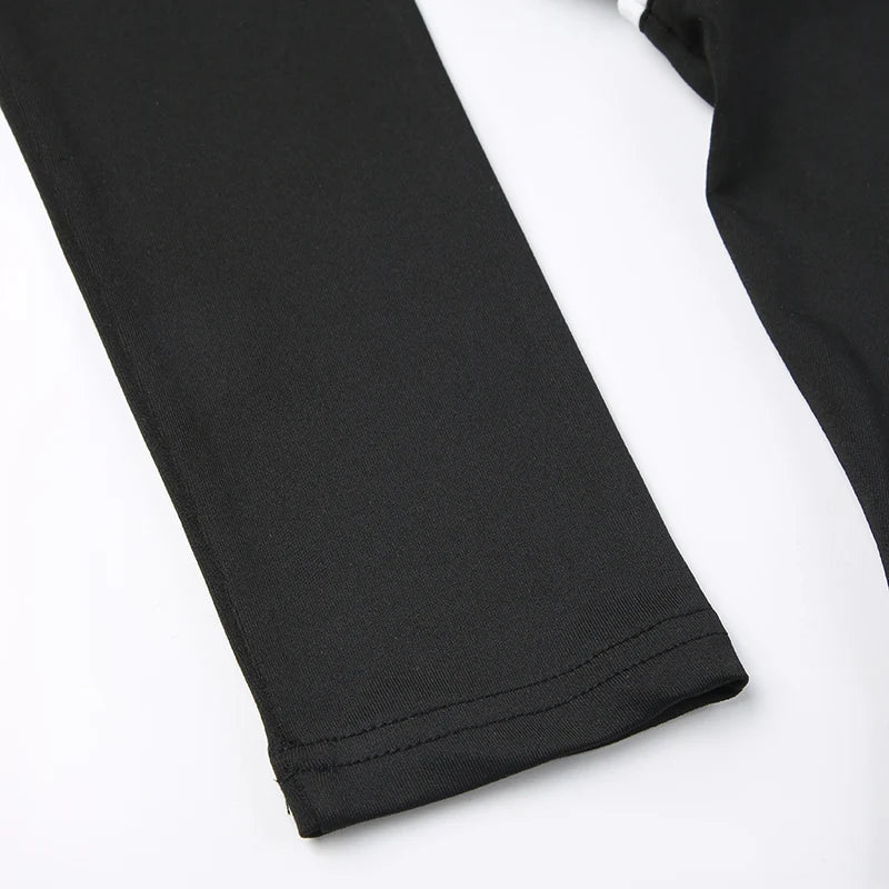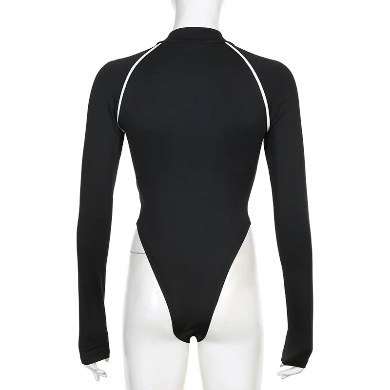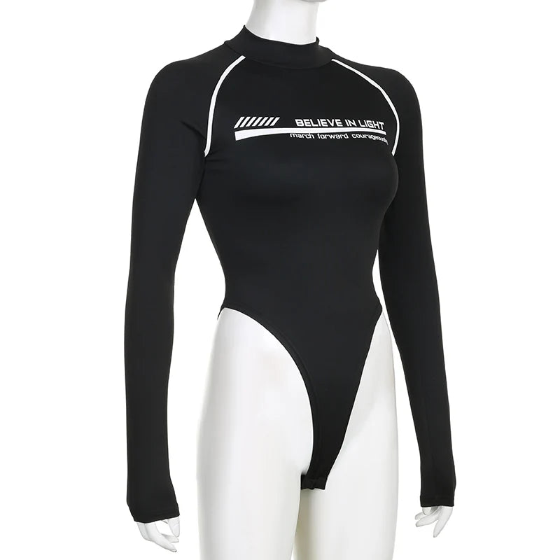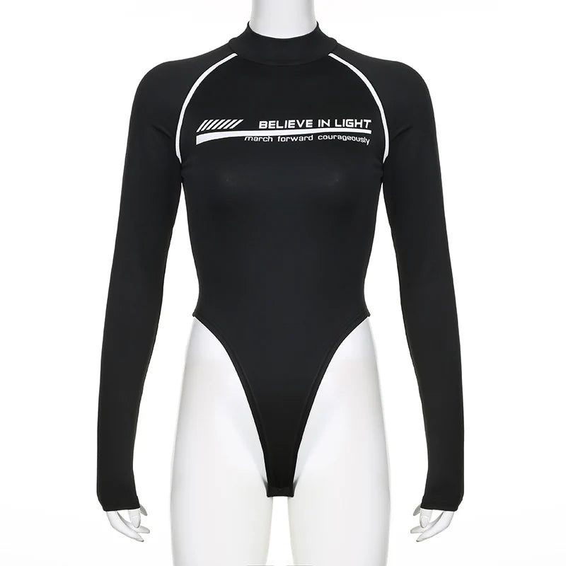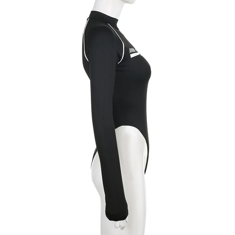 Rockmore Fashion Bodysuits Women Streetwear Print Jumpsuit Female Moto Biker Workout Long Sleeve Body Tops Casual Rompers Mujer