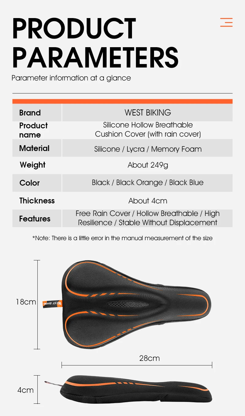 WEST BIKING Bicycle Saddle Cover Silicone Shockproof Bike Cushion Cover Breathable Rebound Bike Seat Cover Cycling Accessories