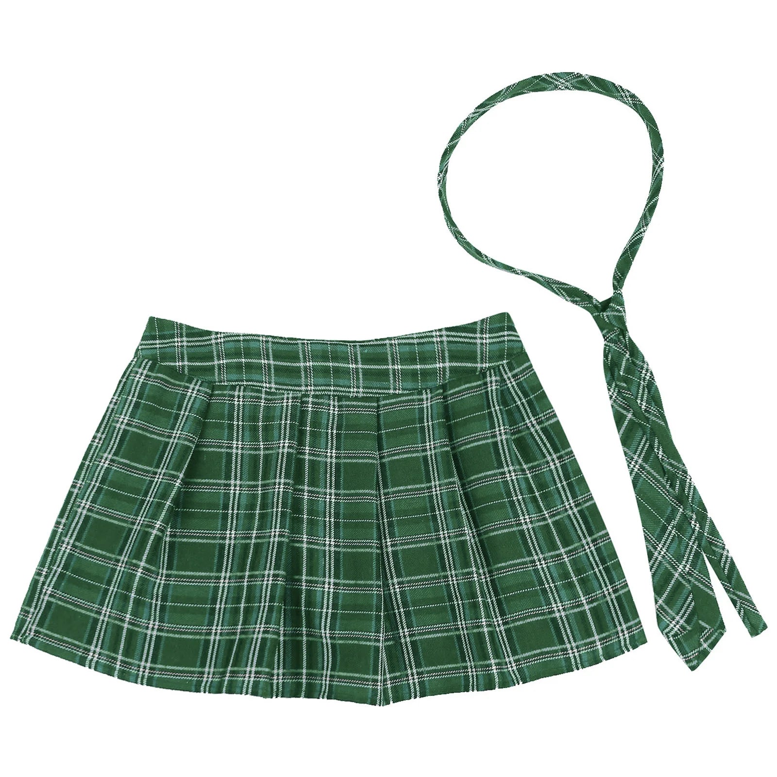 Women Schoolgirls Role Play Costume: High Waisted Kawaii Plaid Mini Pleated Skirts with Necktie