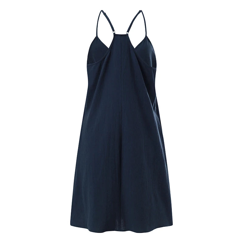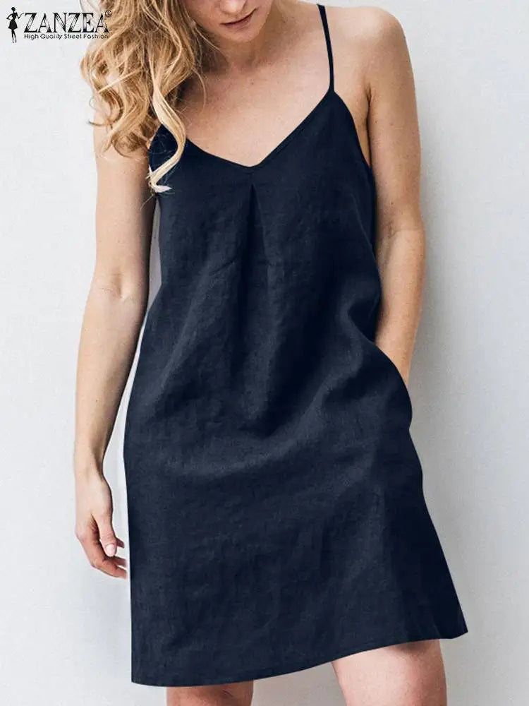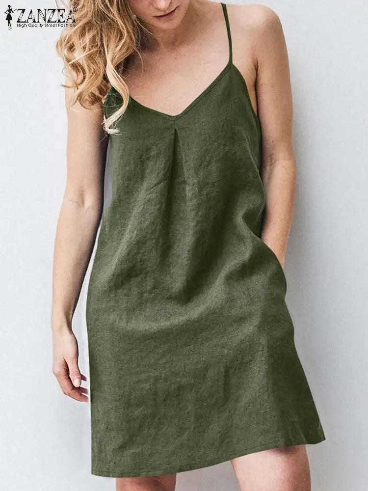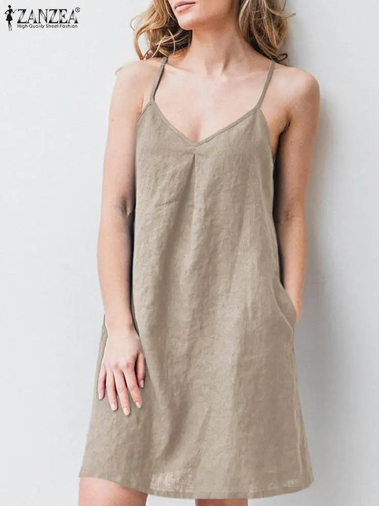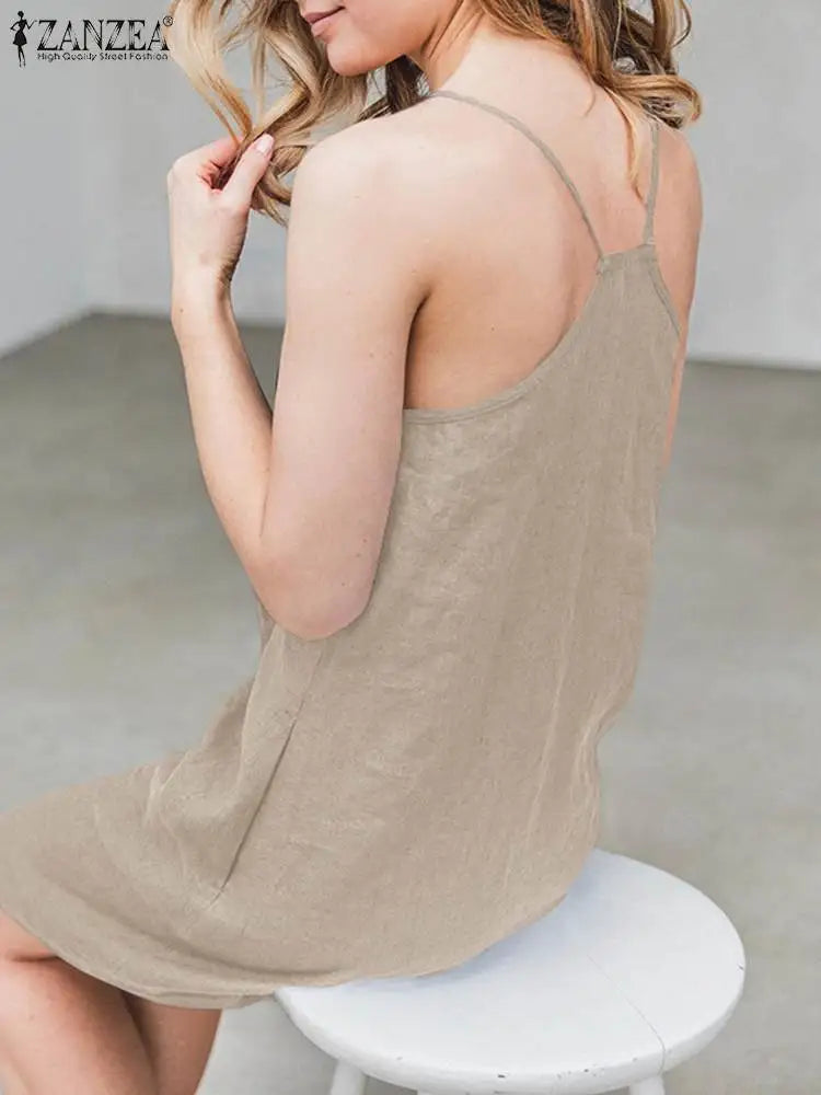 2023 ZANZEA Women Summer Backless Straps Dress Solid Sleeveless V-Neck Sundress Female Casual Robe Party Beach Vestidos Oversize