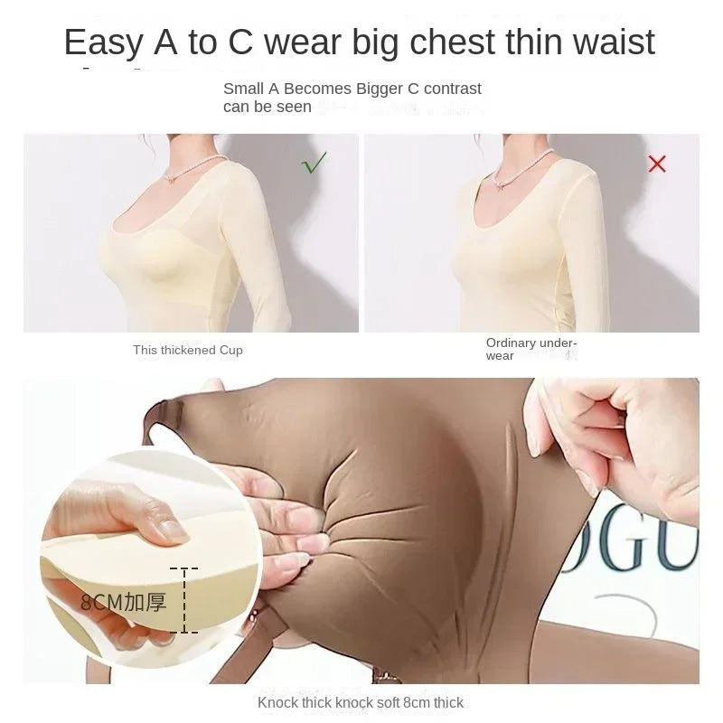8cm Ultra ThickSeamless Lingerie for Women with Small Breasts Gathered Together, Flat Chest, Large Upper Support Push Up