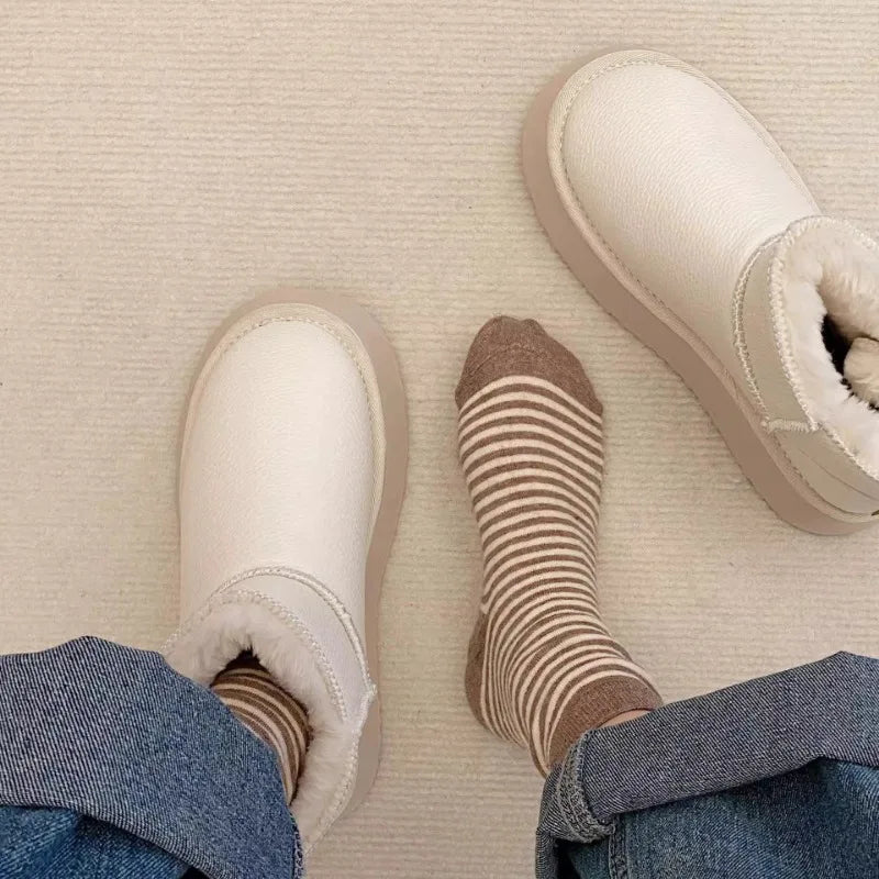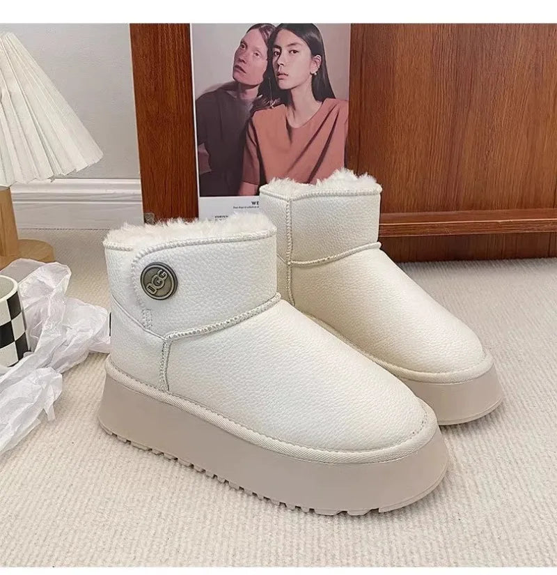 AJGS Women's Snow Boots High Quality Leather Thickened Plush Waterproof Anti-slip Warm and Cold Resistant Women's Boots
