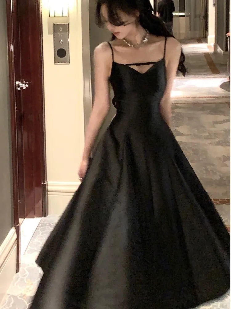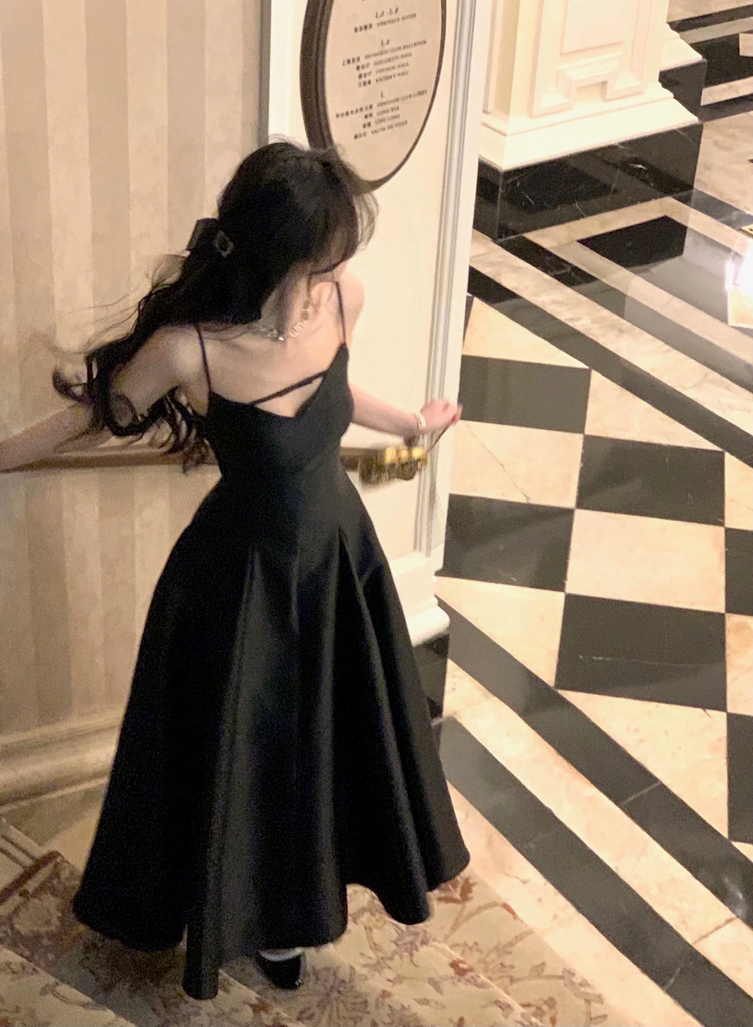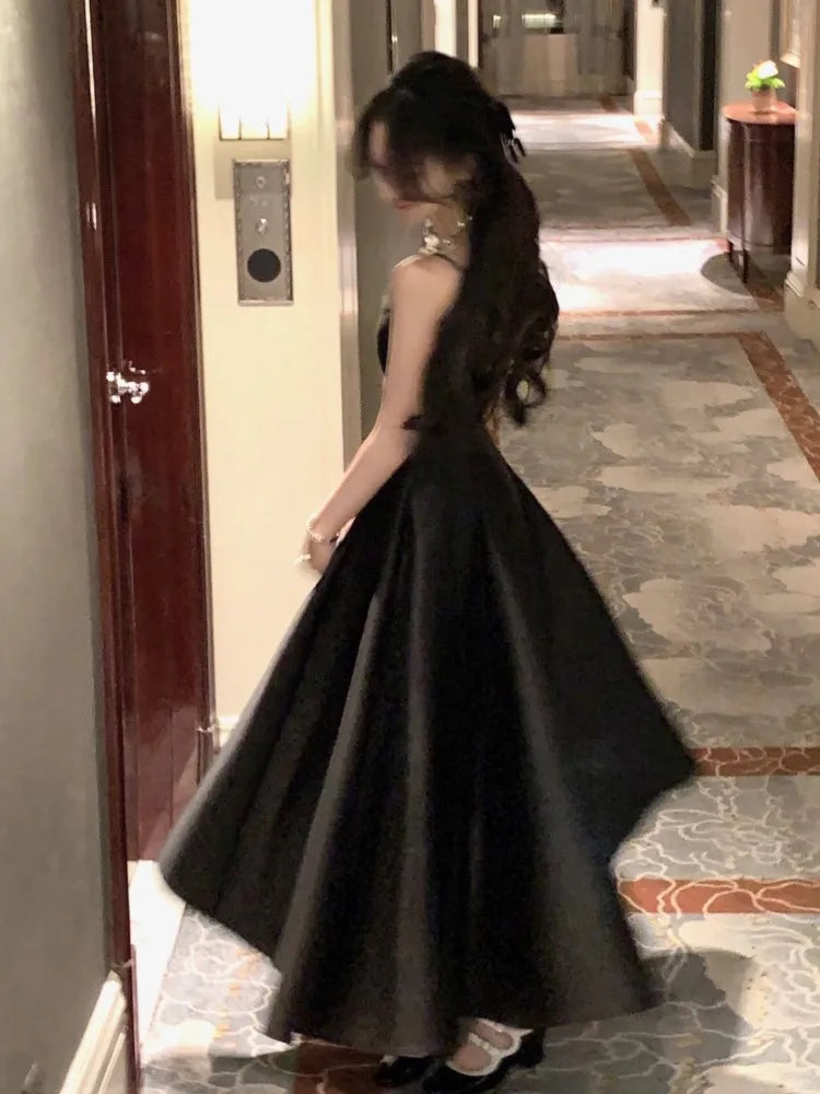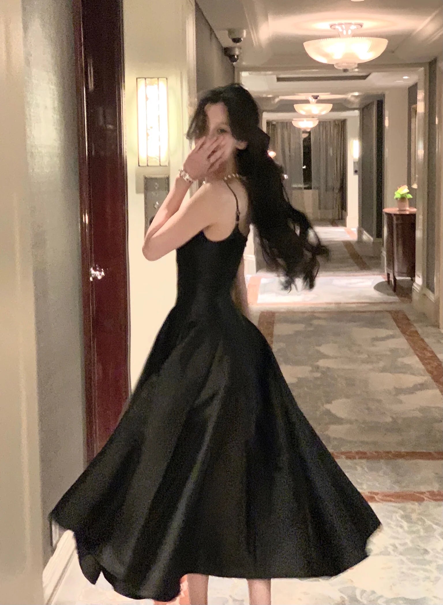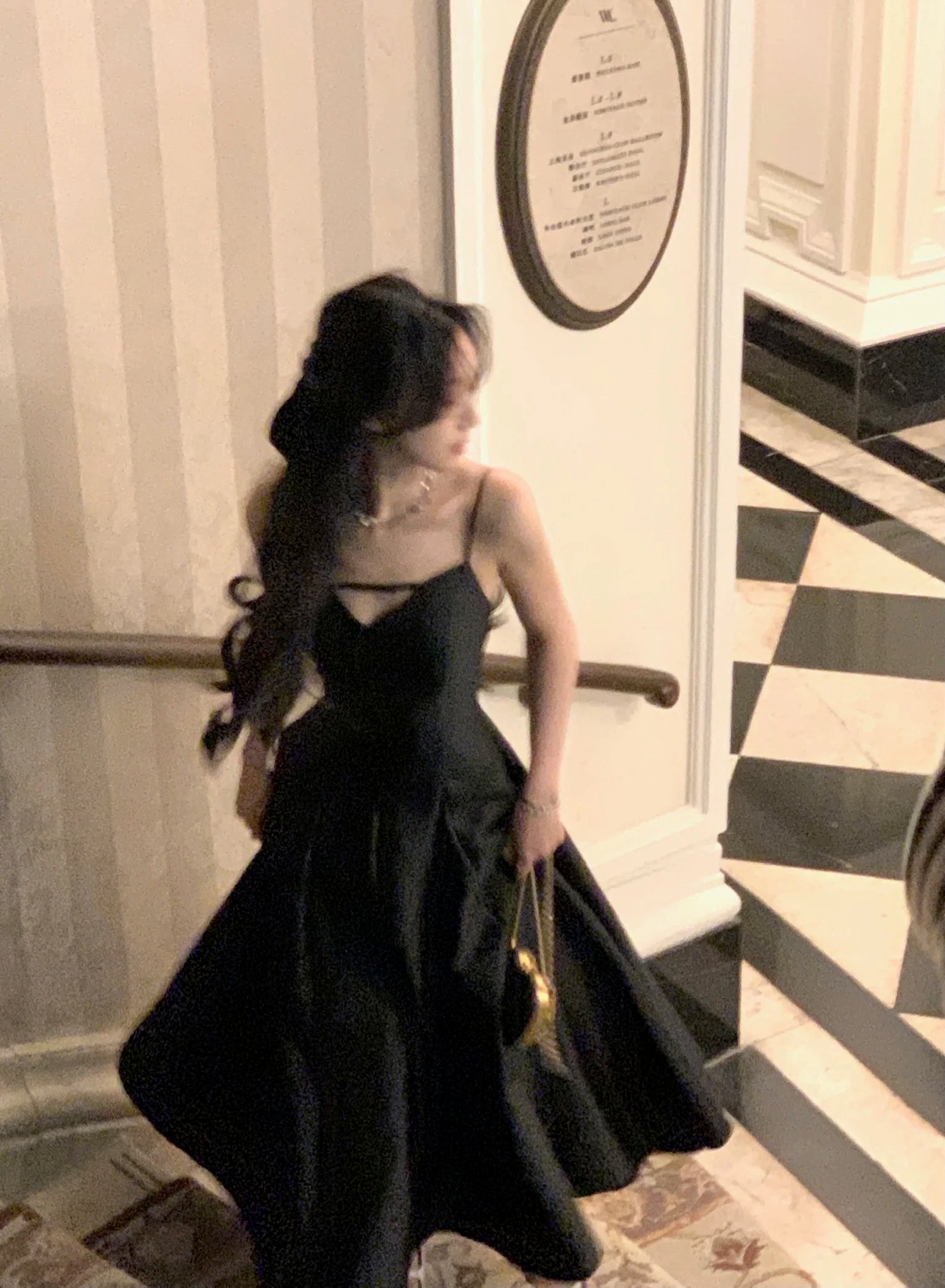Elegant Solid Princess Evening Party Dress French Romantic Black Big Hem Graduation Dresses Korean Summer Strap Wedding Vestidos