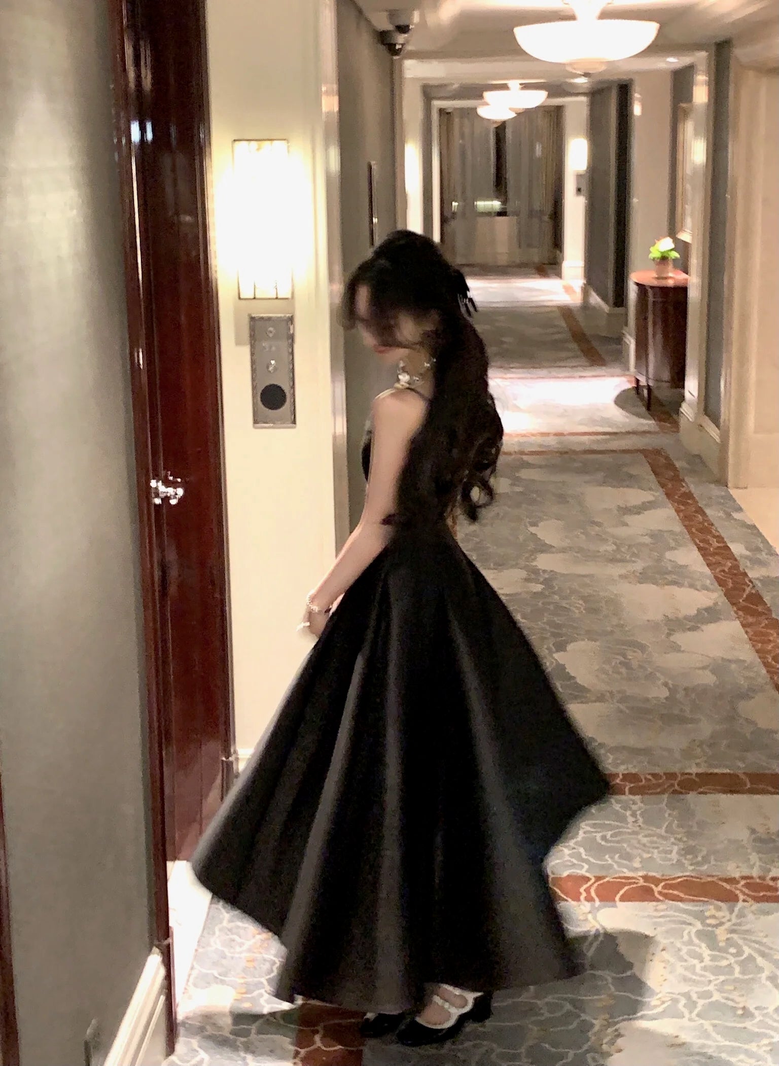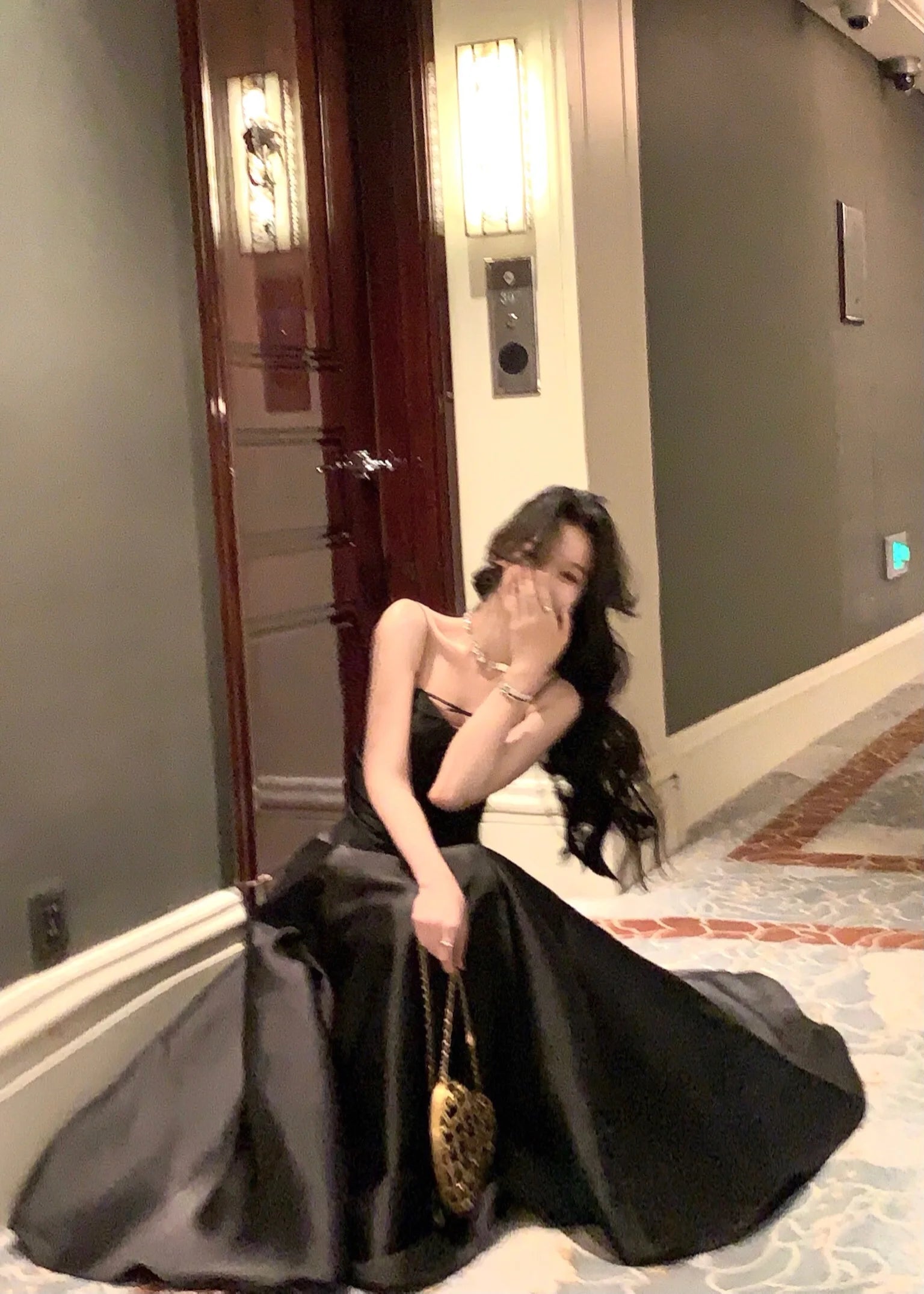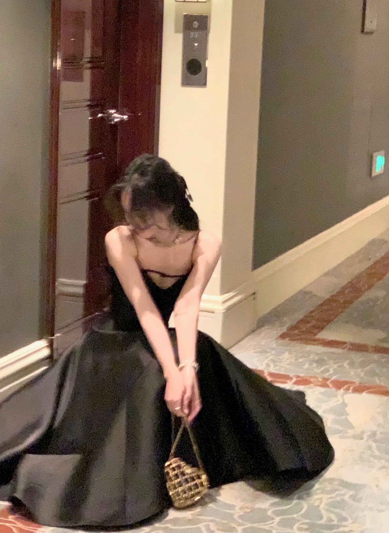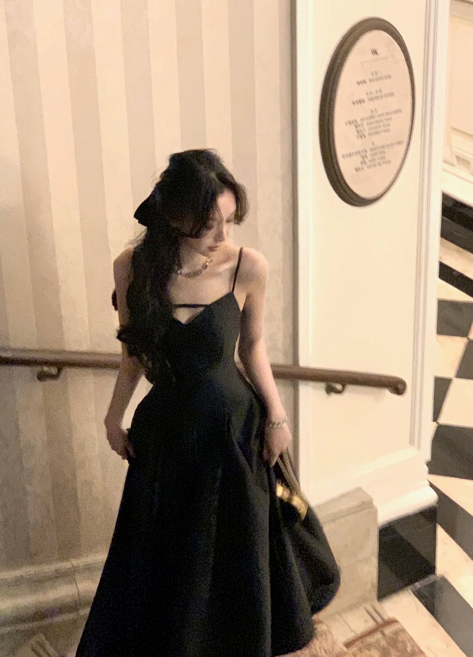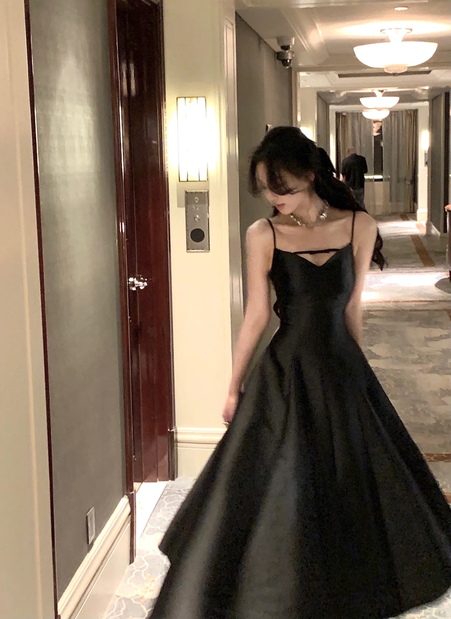 Elegant Solid Princess Evening Party Dress French Romantic Black Big Hem Graduation Dresses Korean Summer Strap Wedding Vestidos