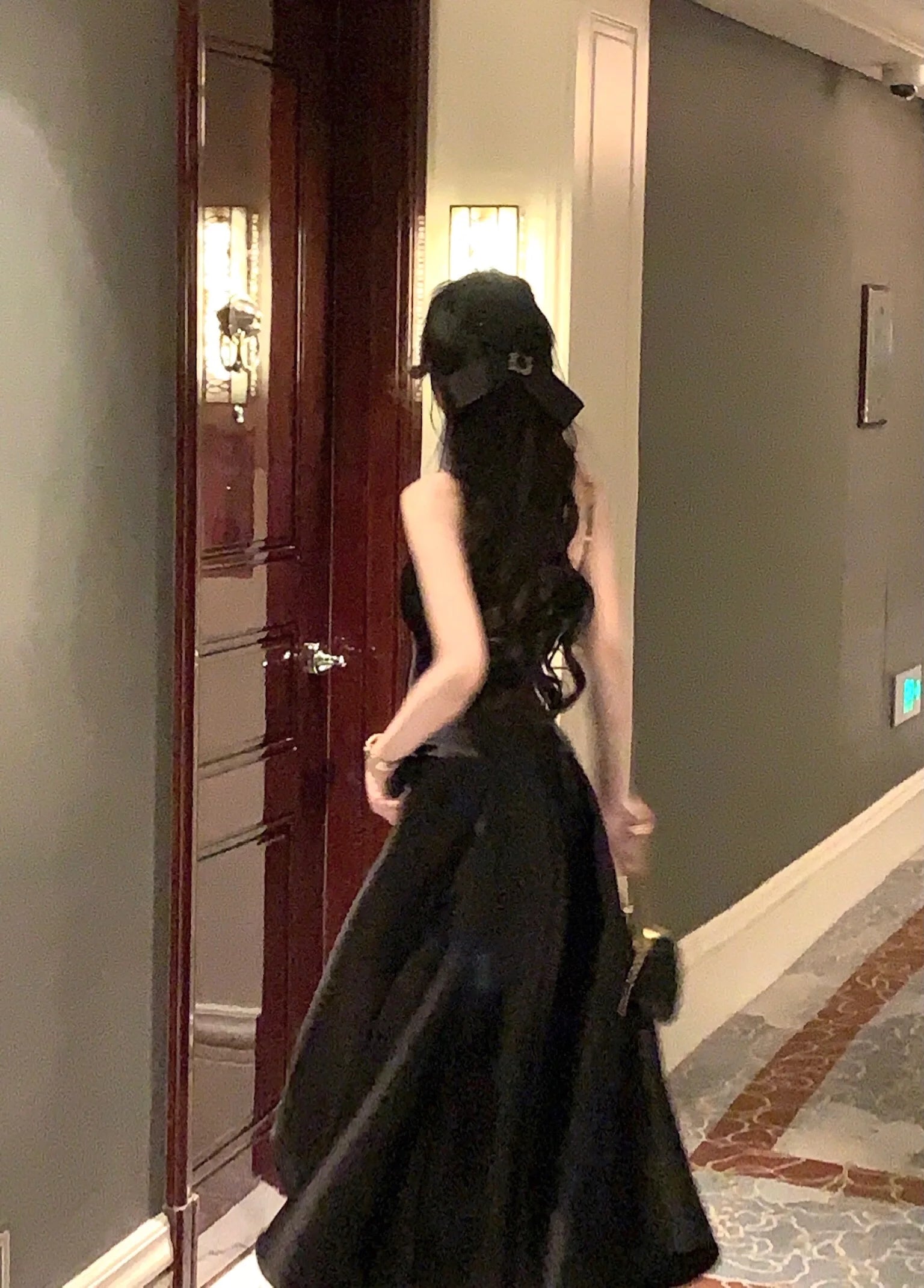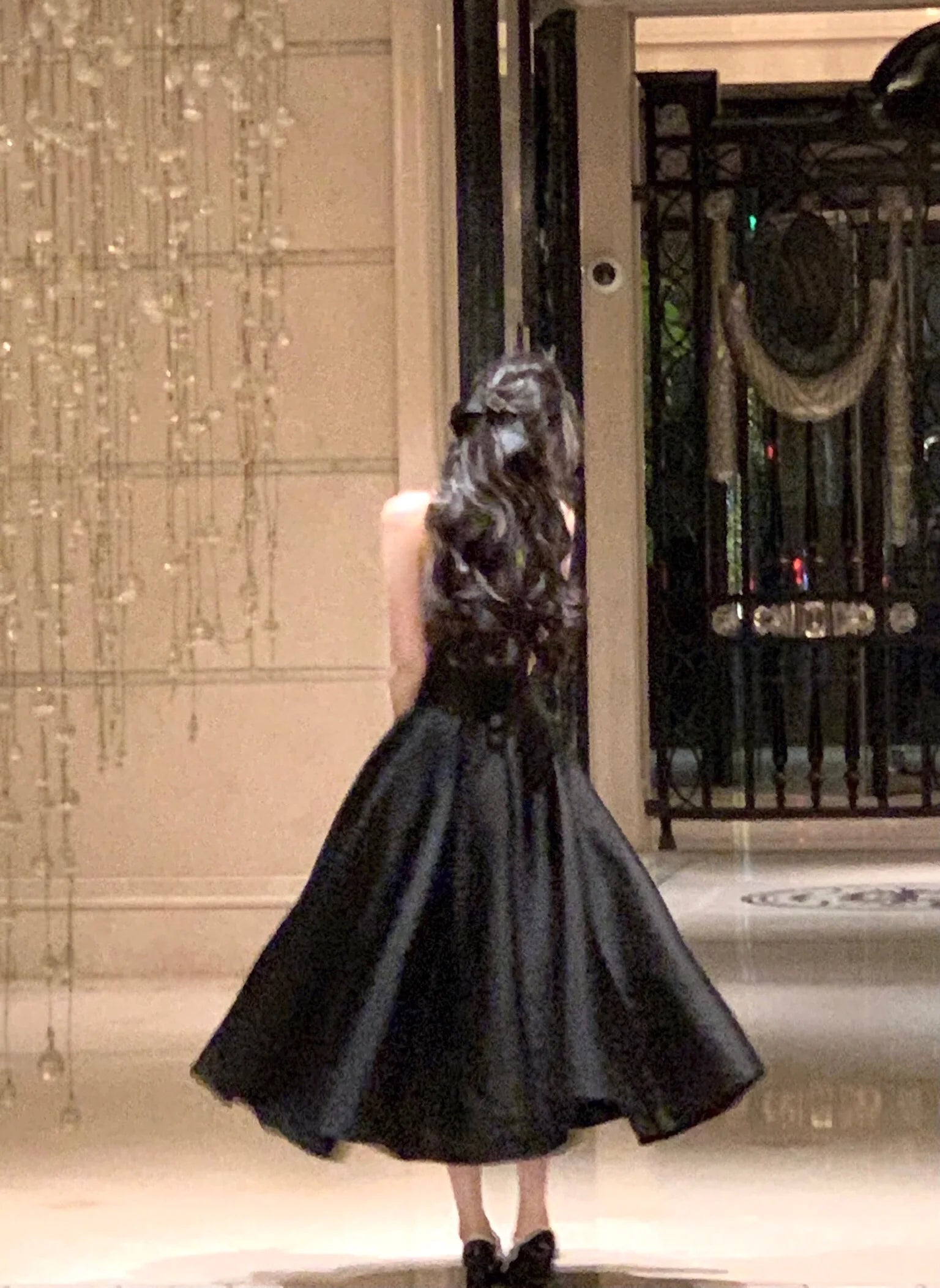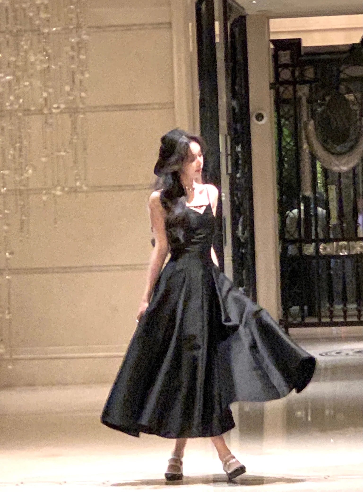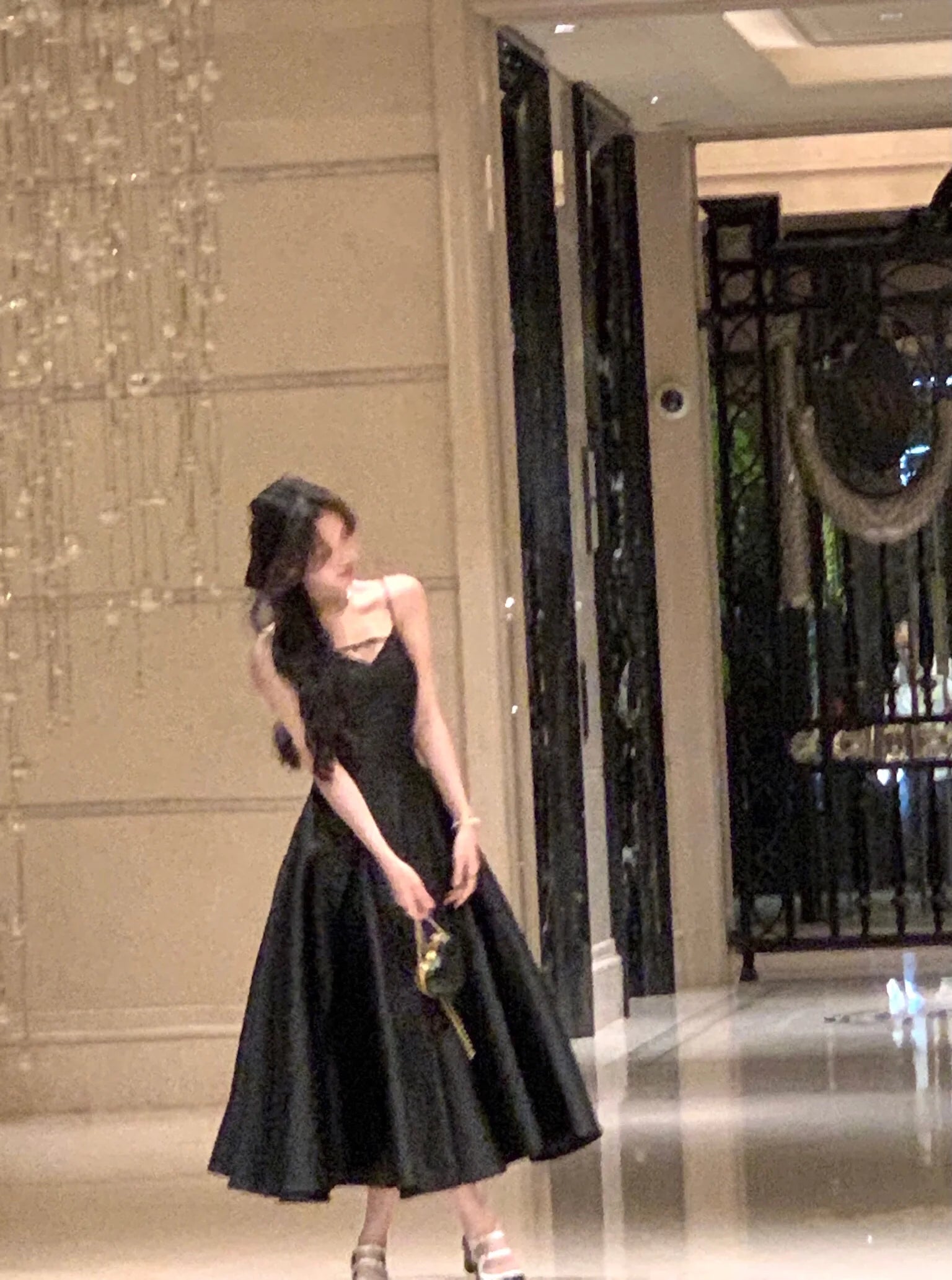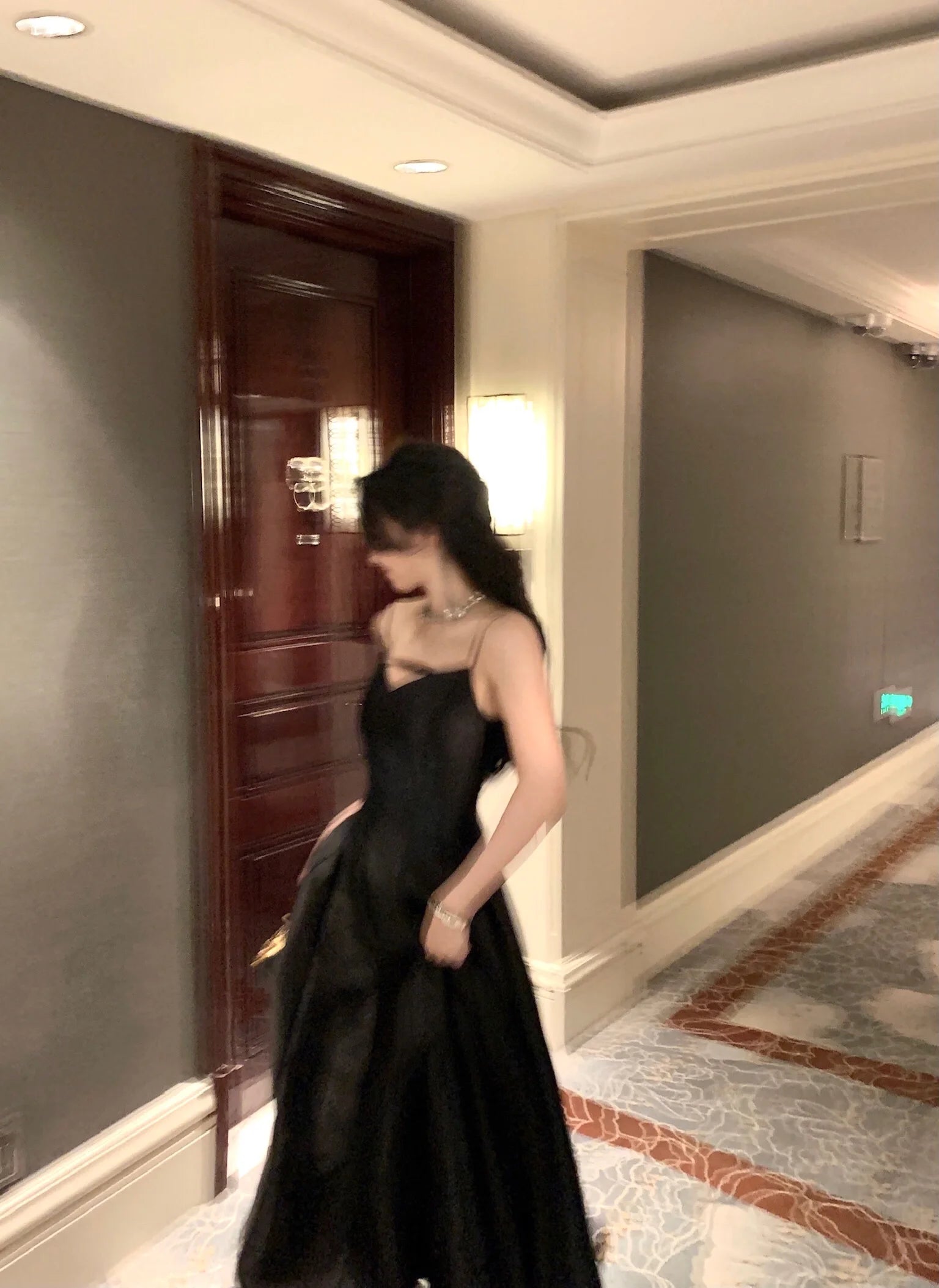 Elegant Solid Princess Evening Party Dress French Romantic Black Big Hem Graduation Dresses Korean Summer Strap Wedding Vestidos