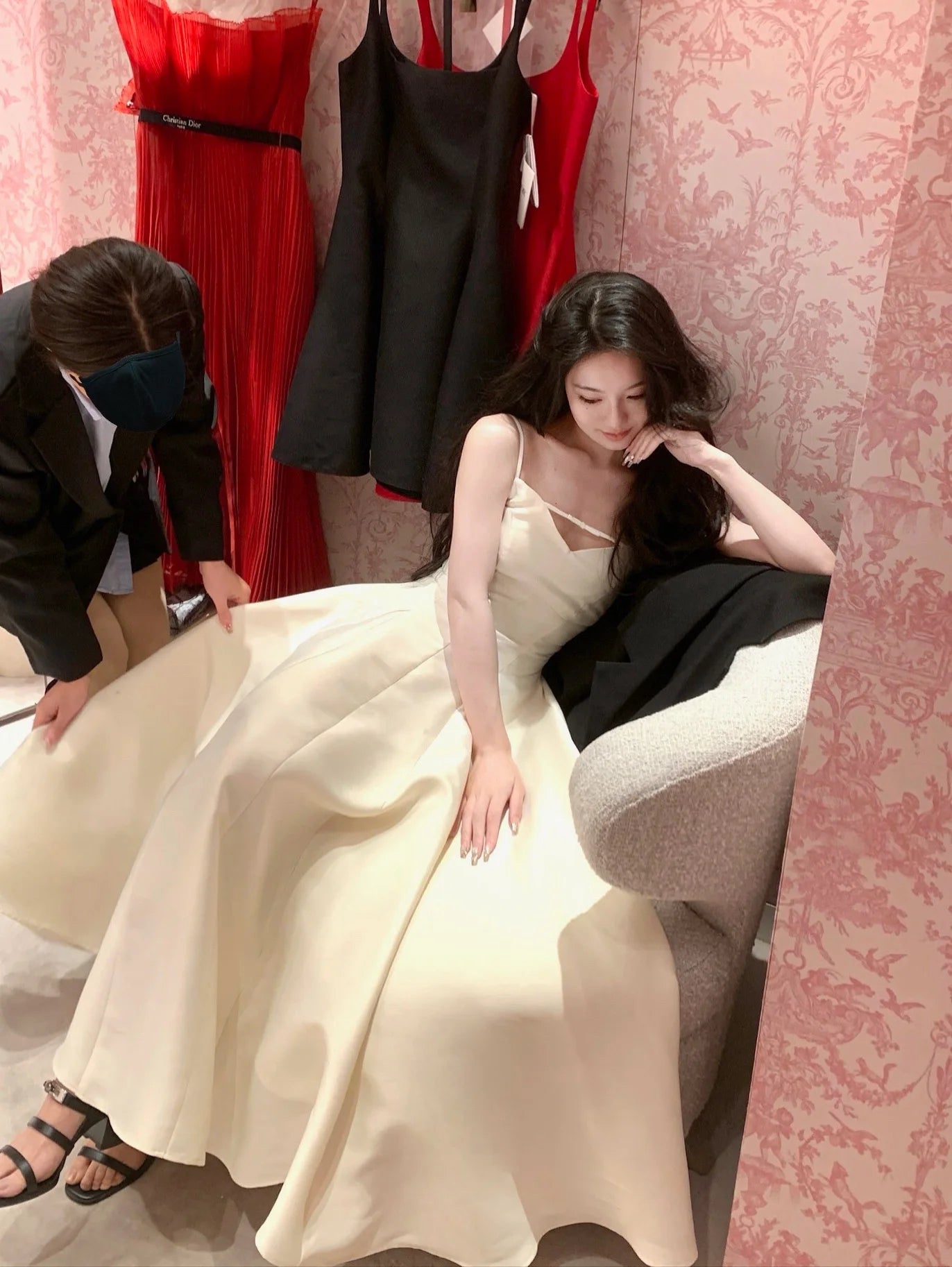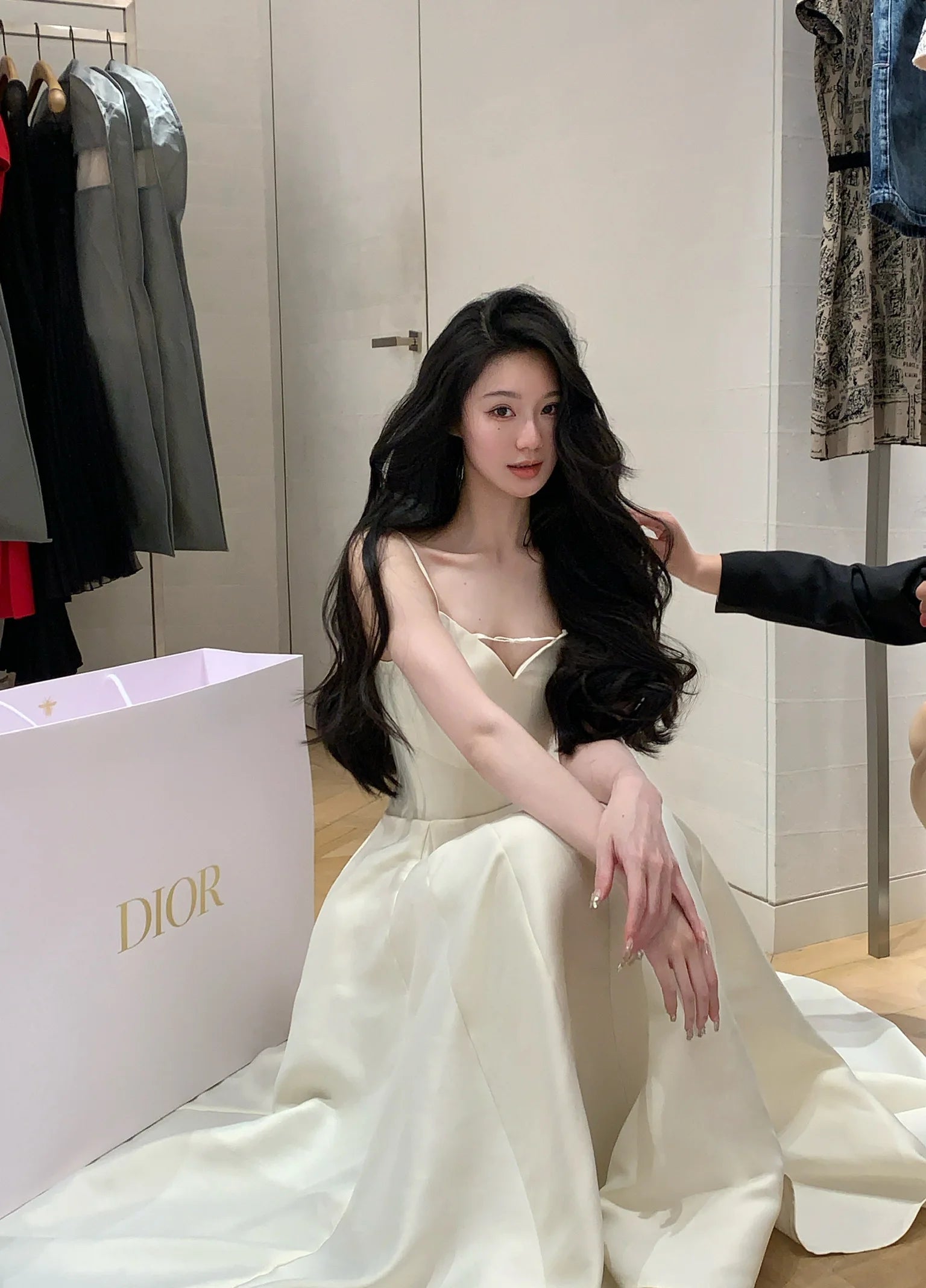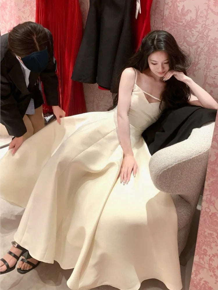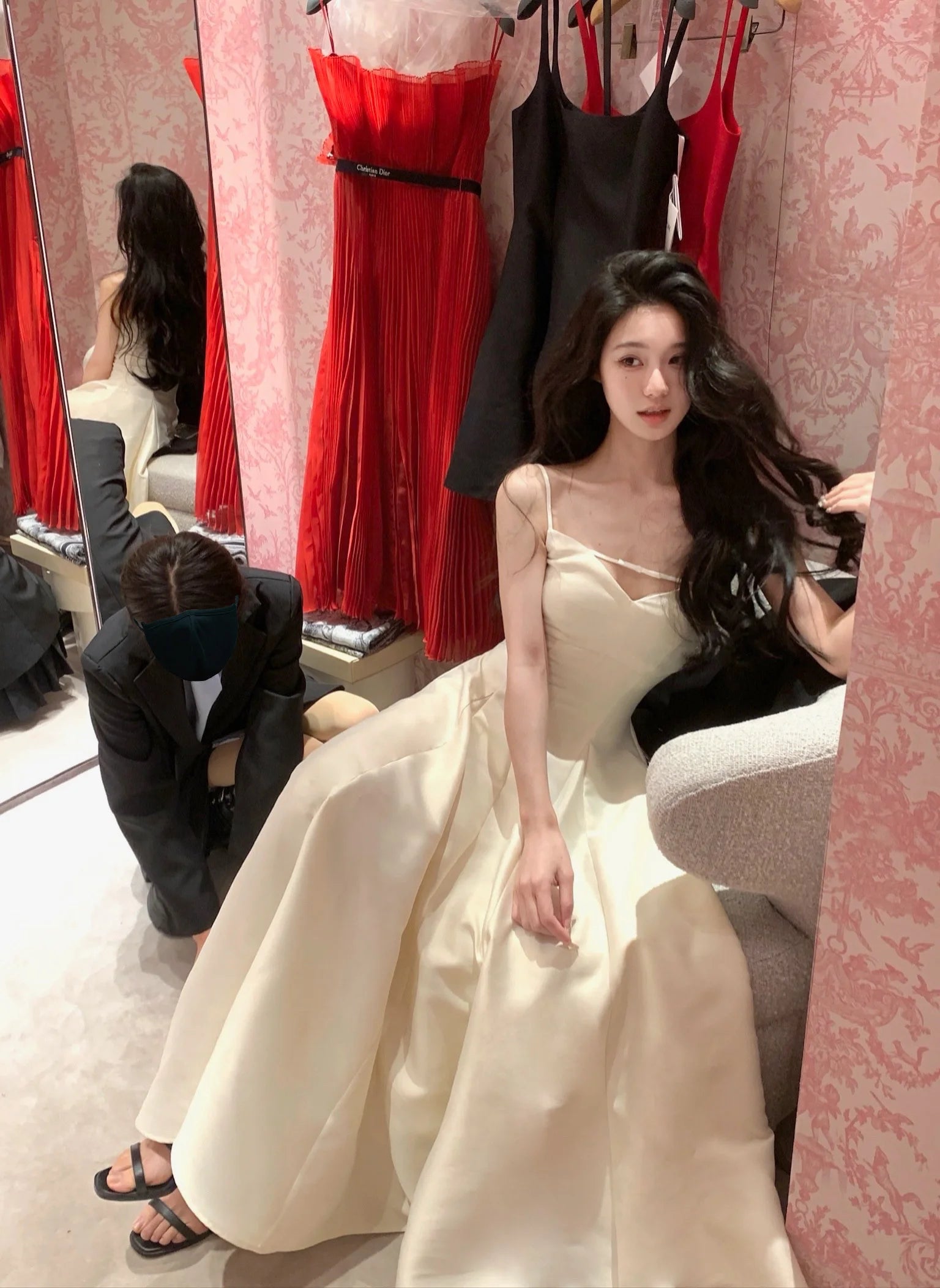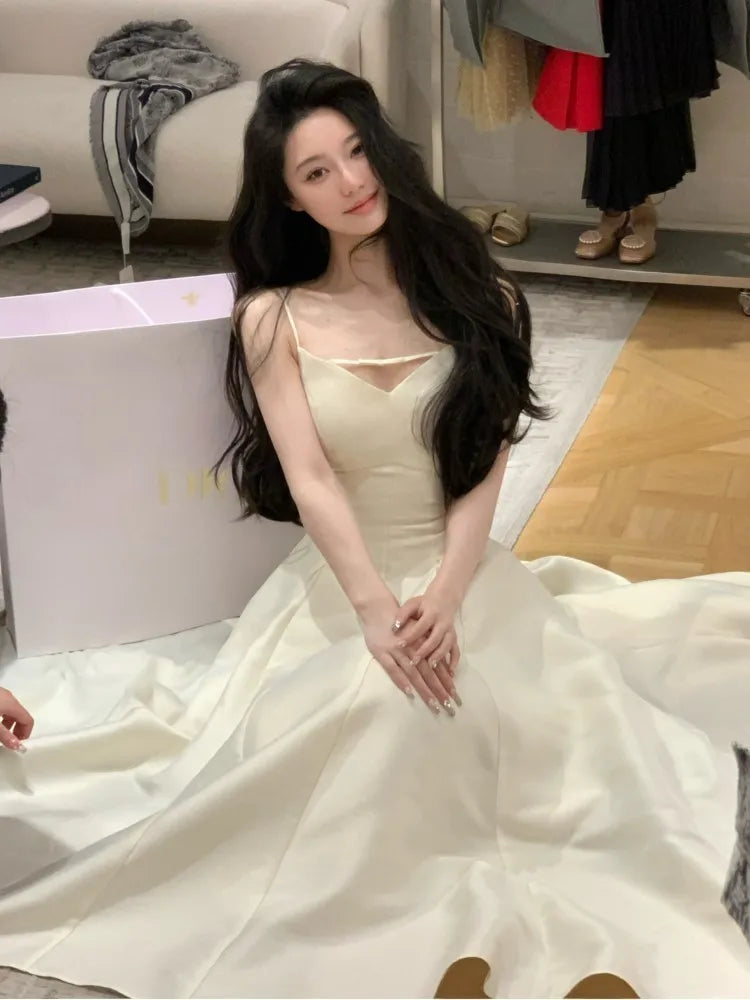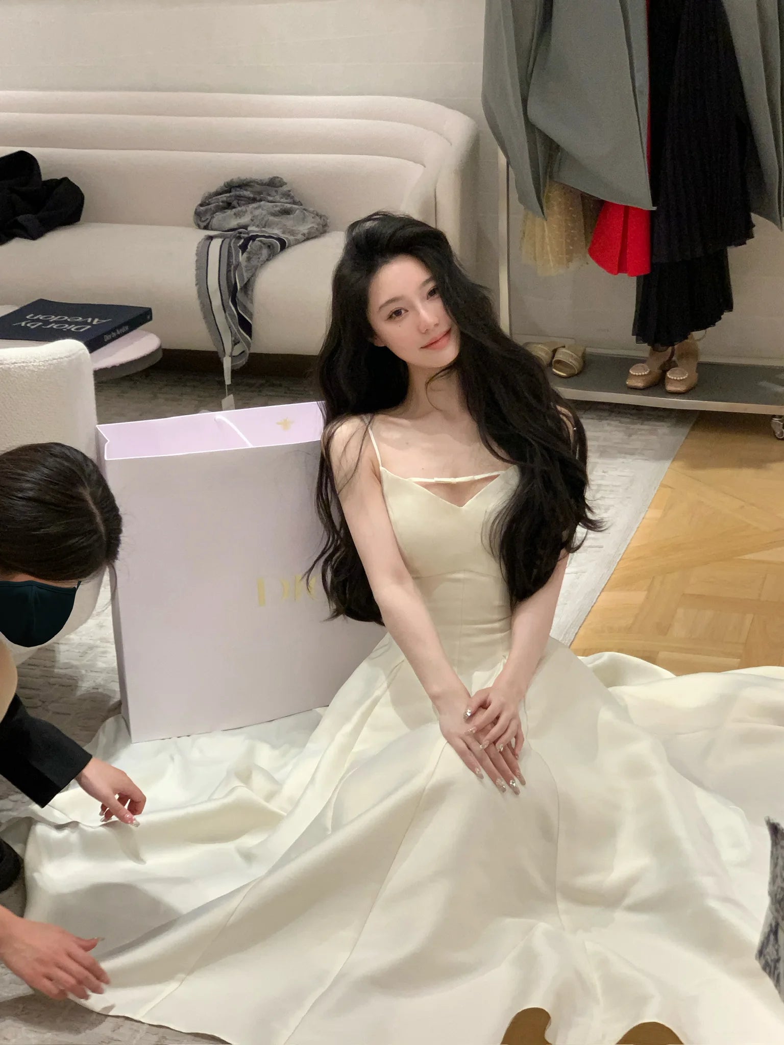 Elegant Solid Princess Evening Party Dress French Romantic Black Big Hem Graduation Dresses Korean Summer Strap Wedding Vestidos