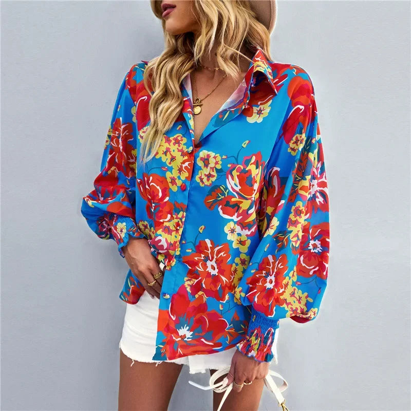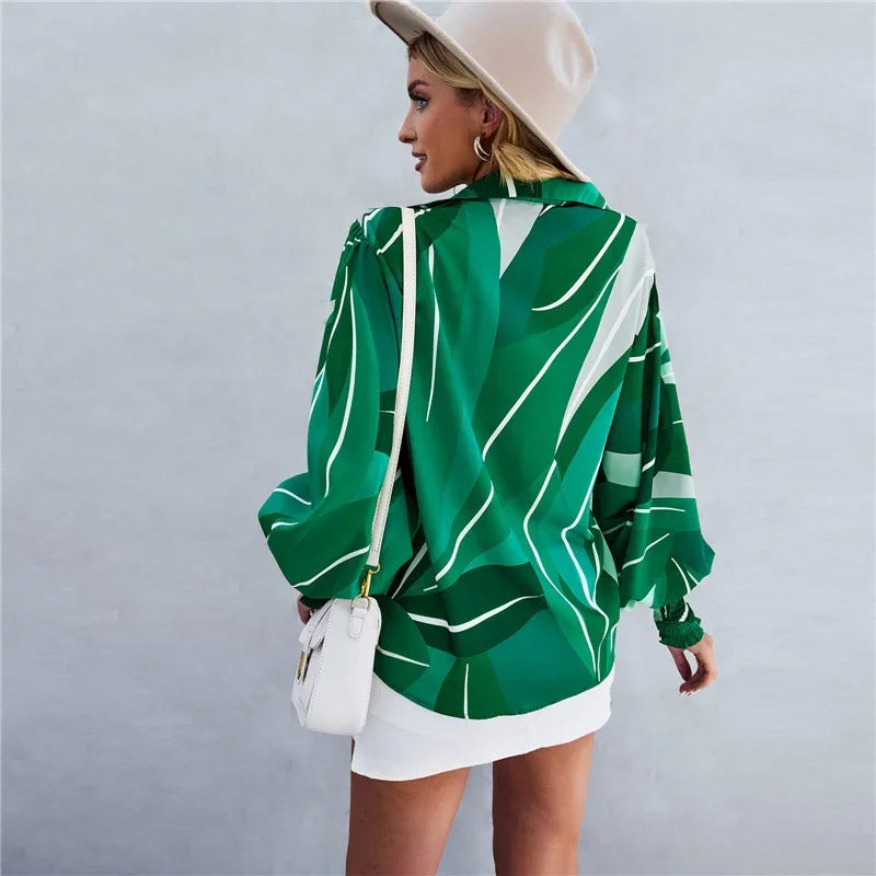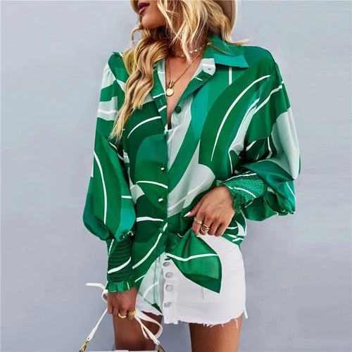 Fashionable Long Sleeve Printed Versatile Shirt For Women Autumn European And American Style Commuting Top With Button