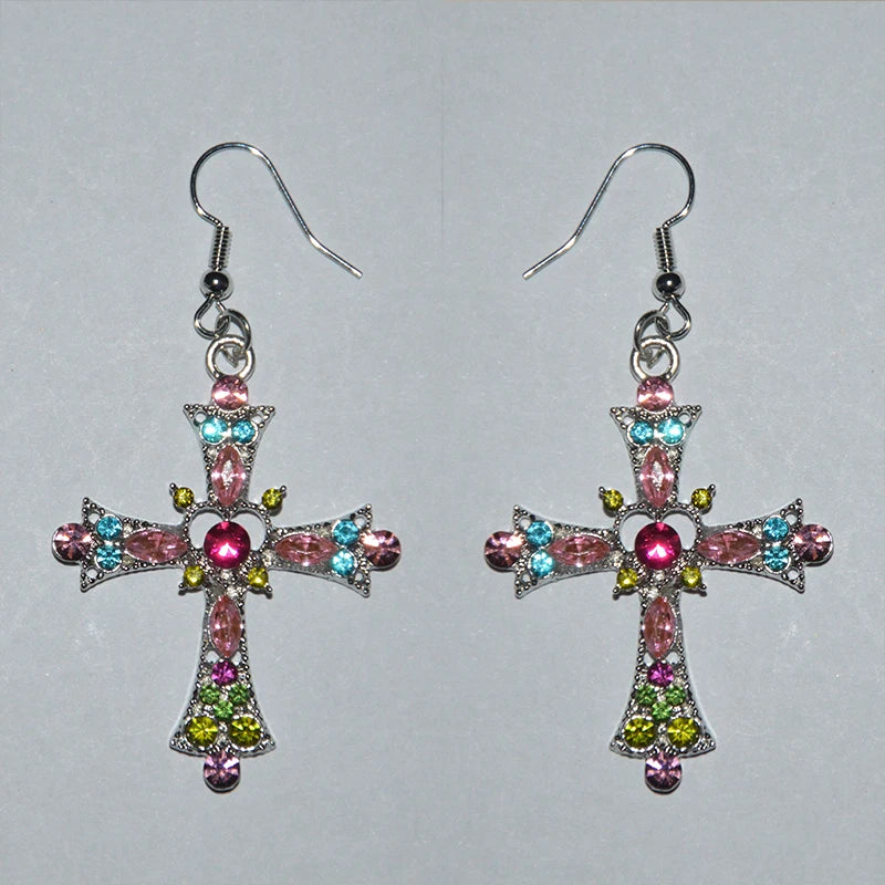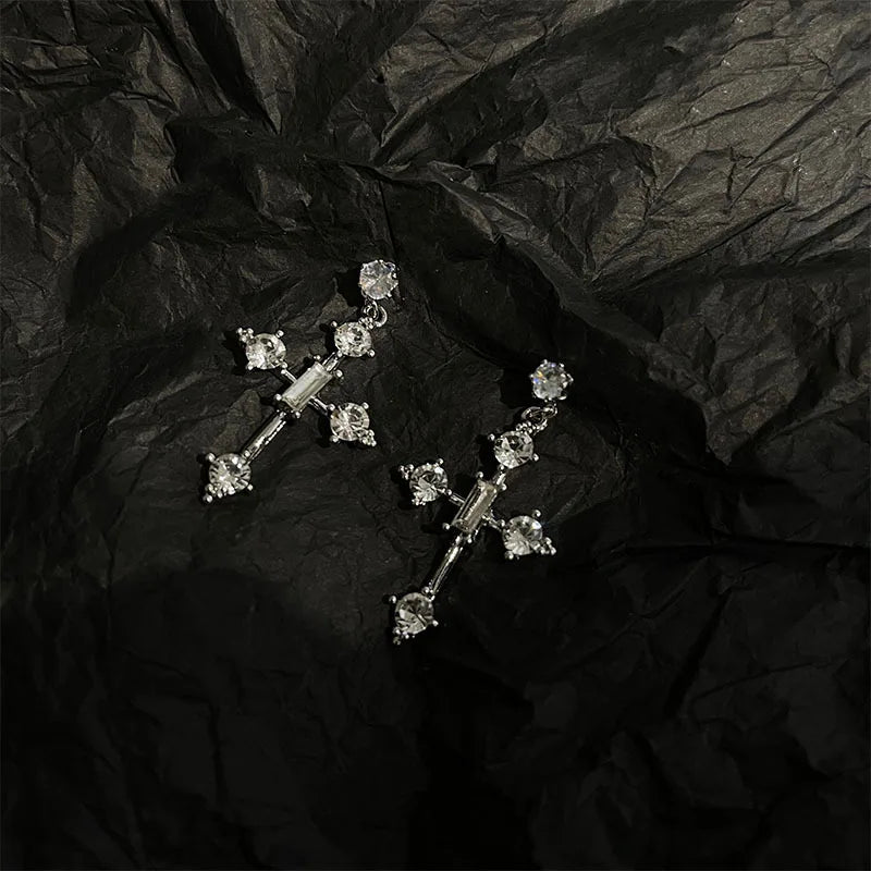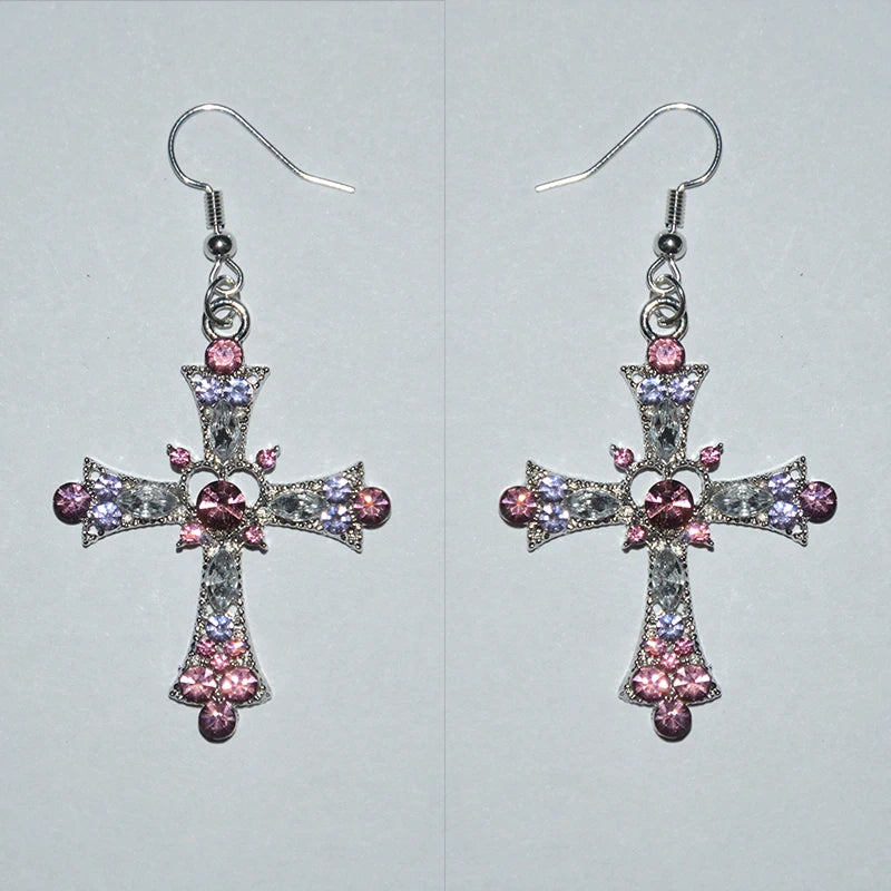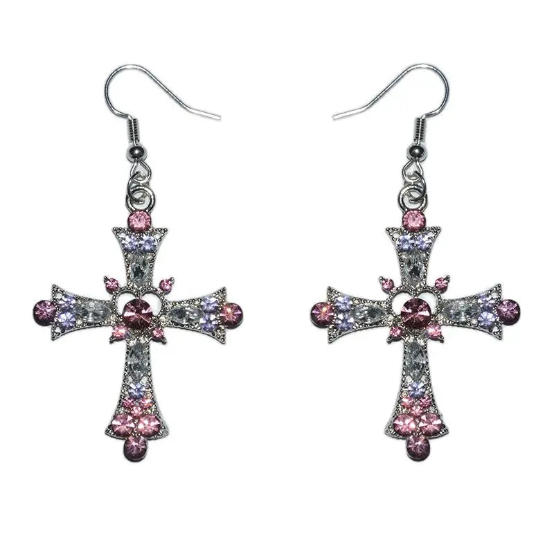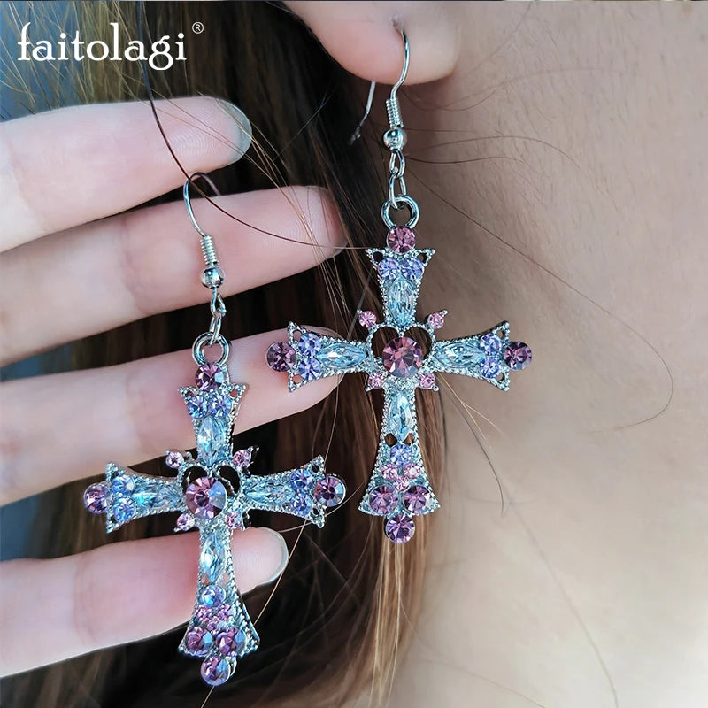 Gothic Pink Heart Cross Earrings Y2K Kpop Purple Zircon Cross Drop Earring for Women Grunge Egirl Earrings Jewelry Accessories