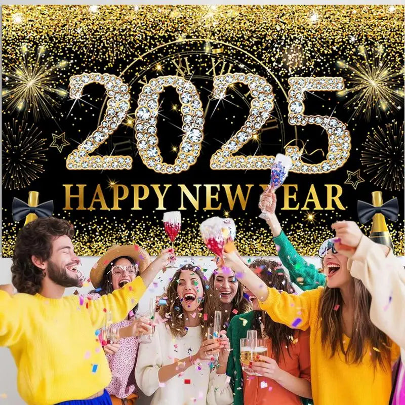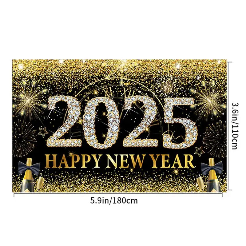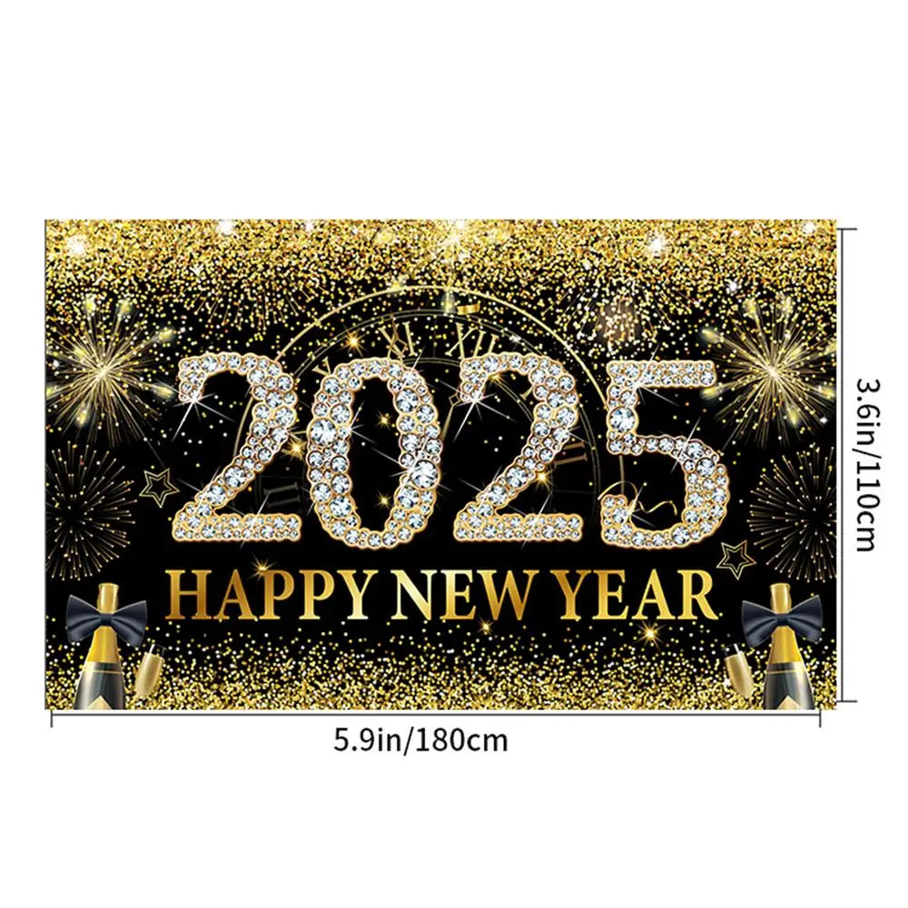 Happy New Year Background Cloth 71 X 43in New Year Home Photo Booth Black Gold Background Elegant New Year Photo Backdrop