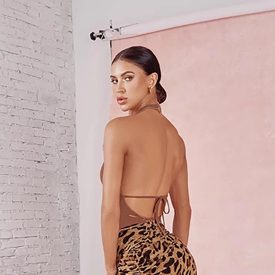 Hollow Sleeveless Bare Back Bodysuit Latin dance Dress Female Latino dancing Cloth Belly Tango Performance Costume NY60 2436