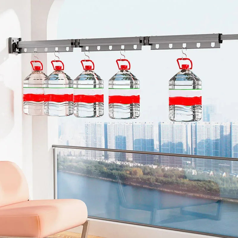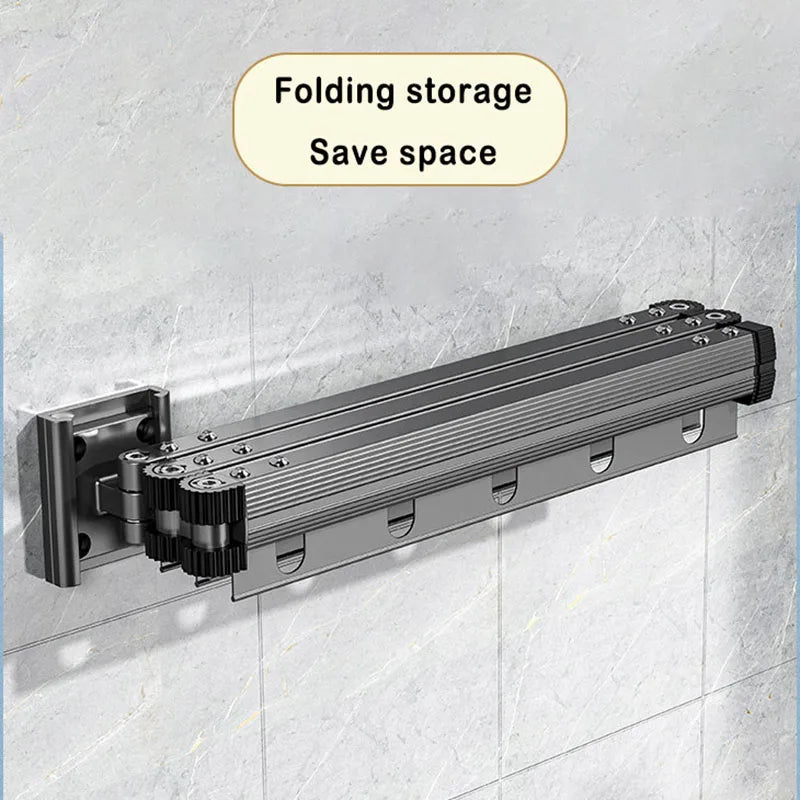 Home Supplies Retractable Folding Clothes Hanger Wall Mounted Stainless Steel Clothes Hanger Gunmetal Grey Multiple Fold Hanger