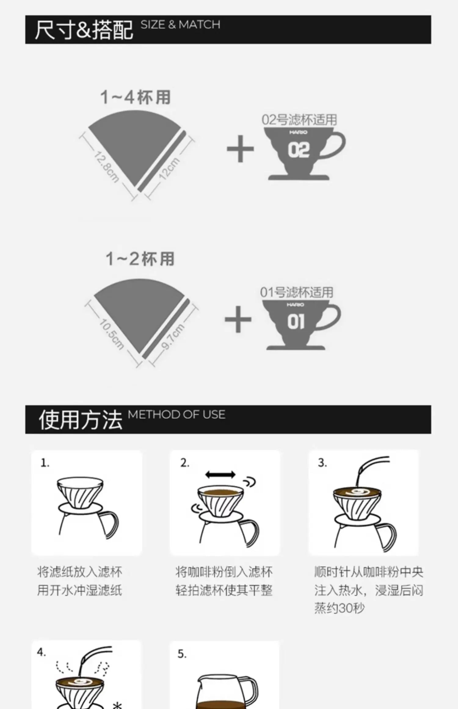 Japanese Coffee Filter Paper Cone Hand-made Coffee Drip Coffee Filter Paper VCF-01/02