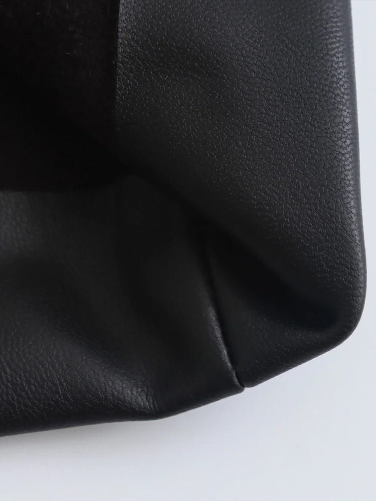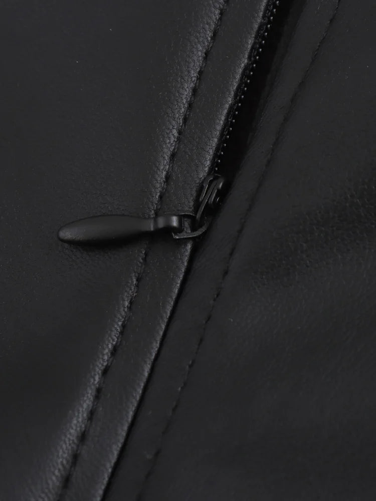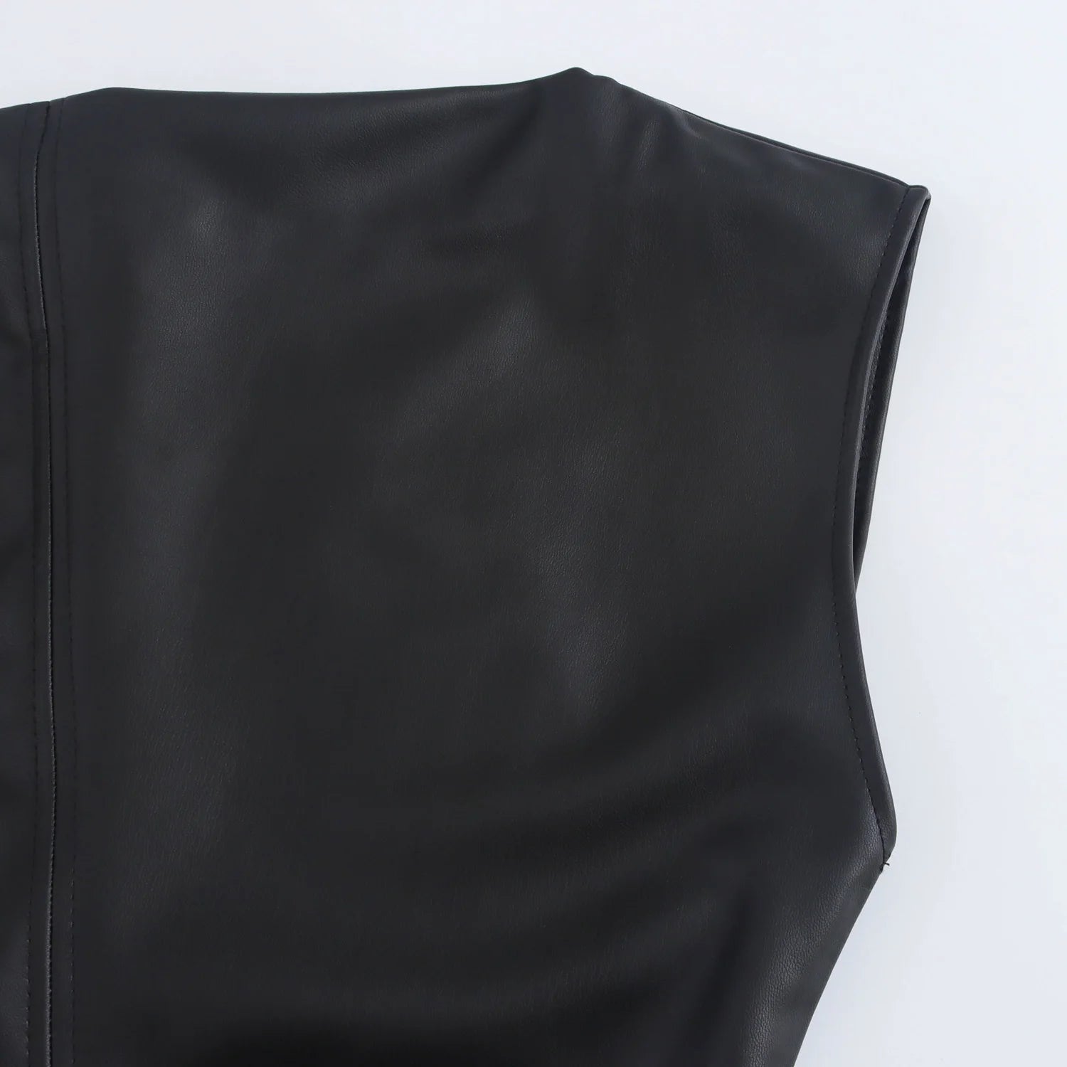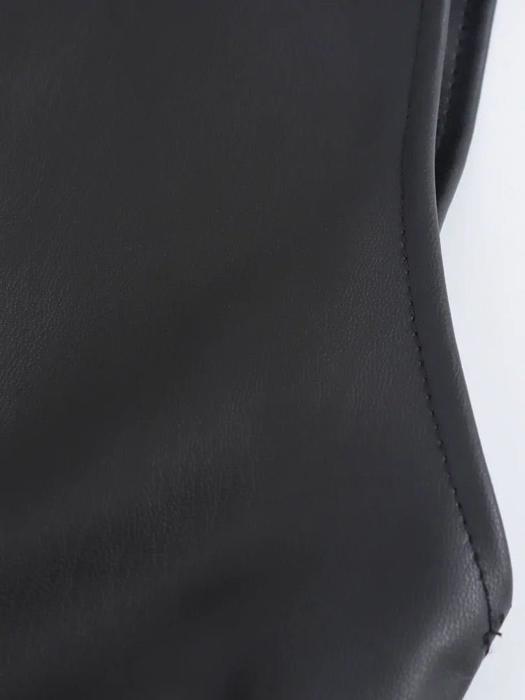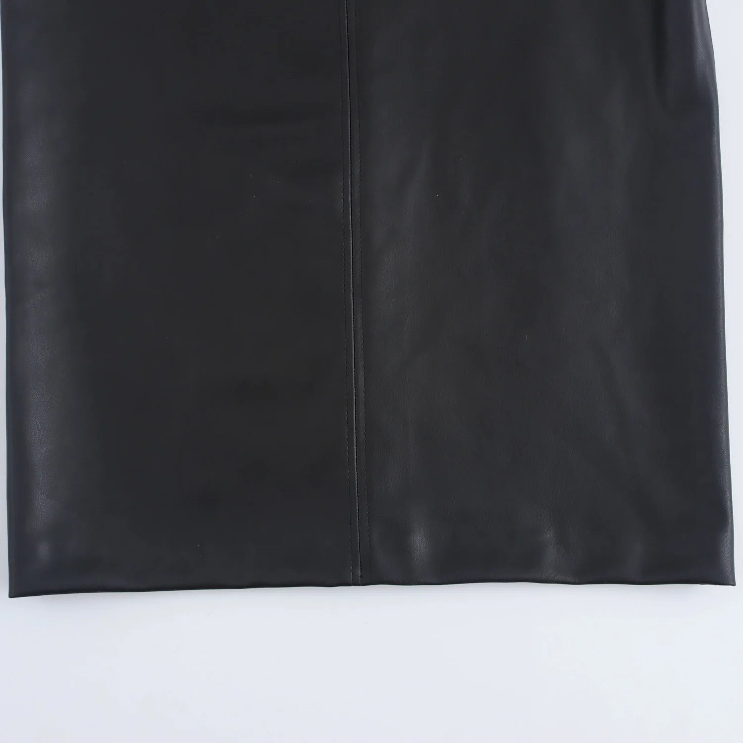 KAOPU ZA Women draped faux leather midi dress vintage flowing neck asymmetric sleeves female dresses mujer