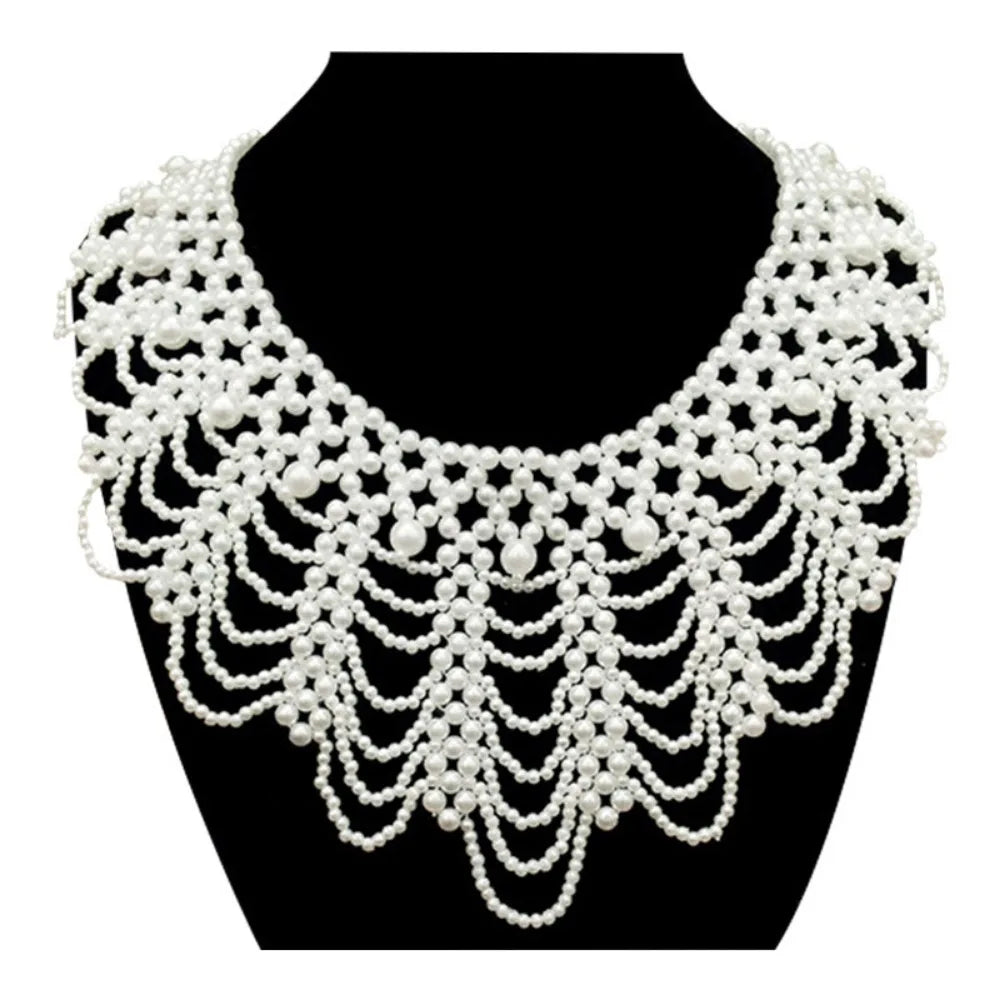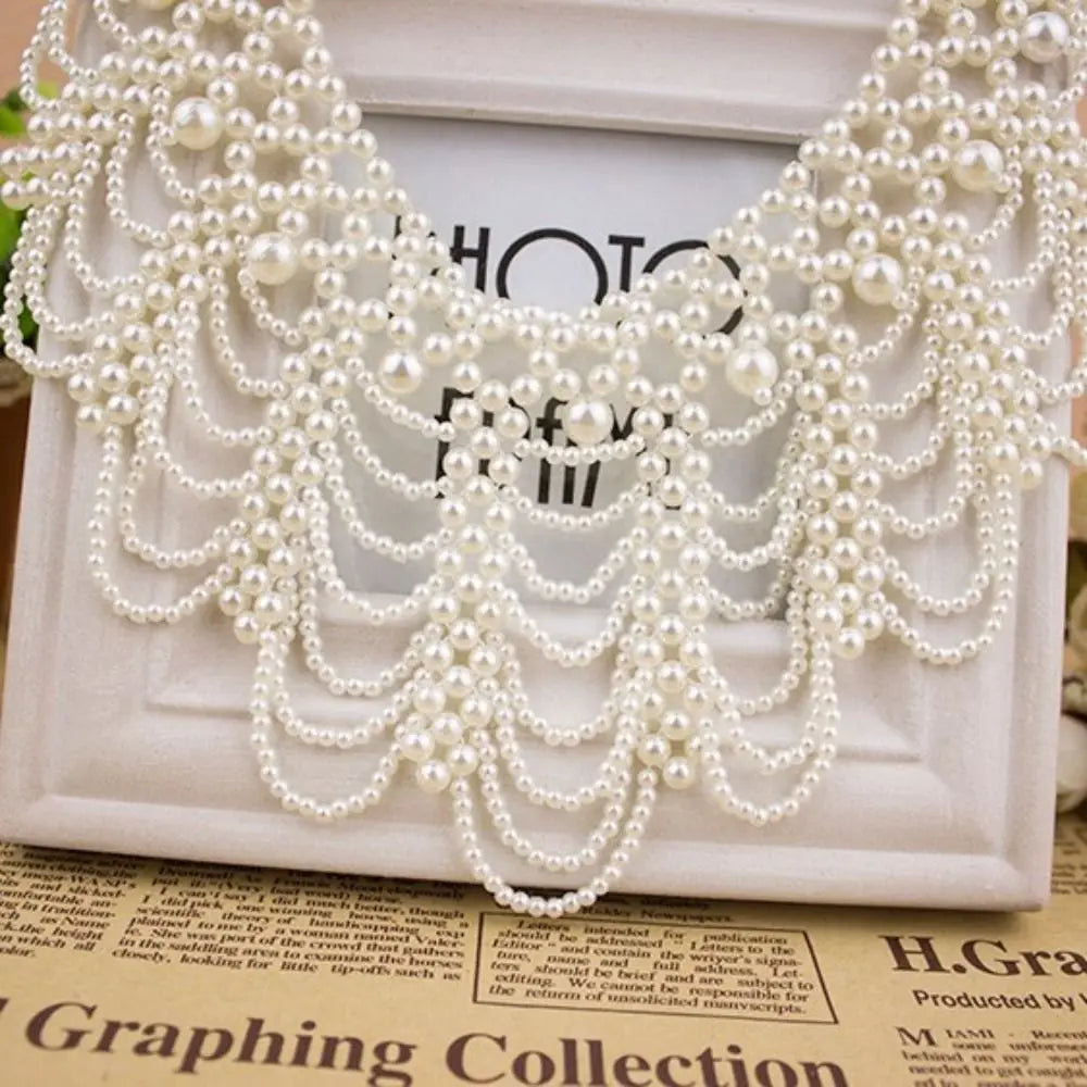 Pearl Beaded Lace Trim Collar Ribbons Women Necklace Jewelry for Clothes Wedding Dress