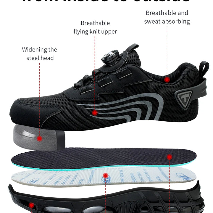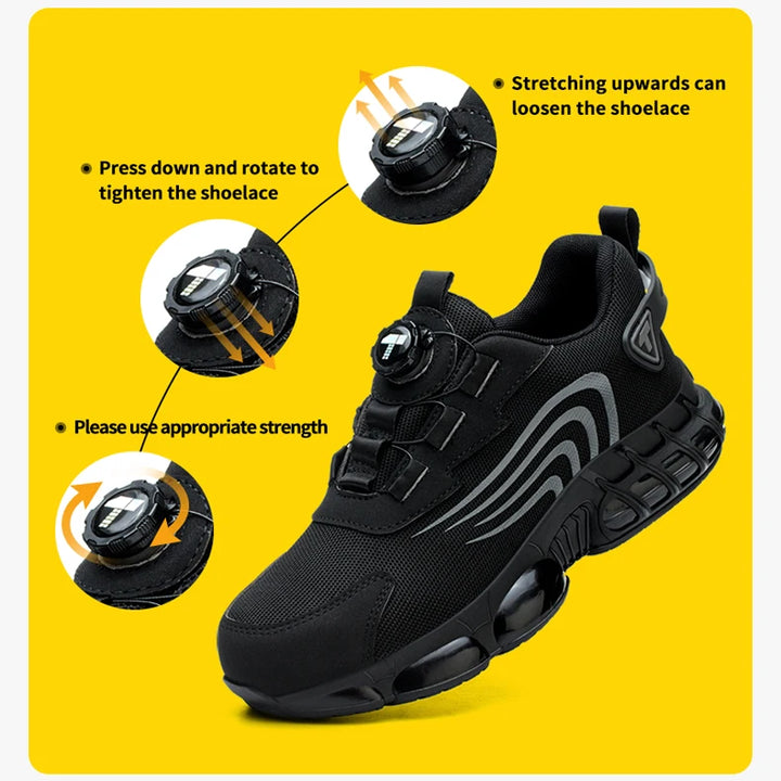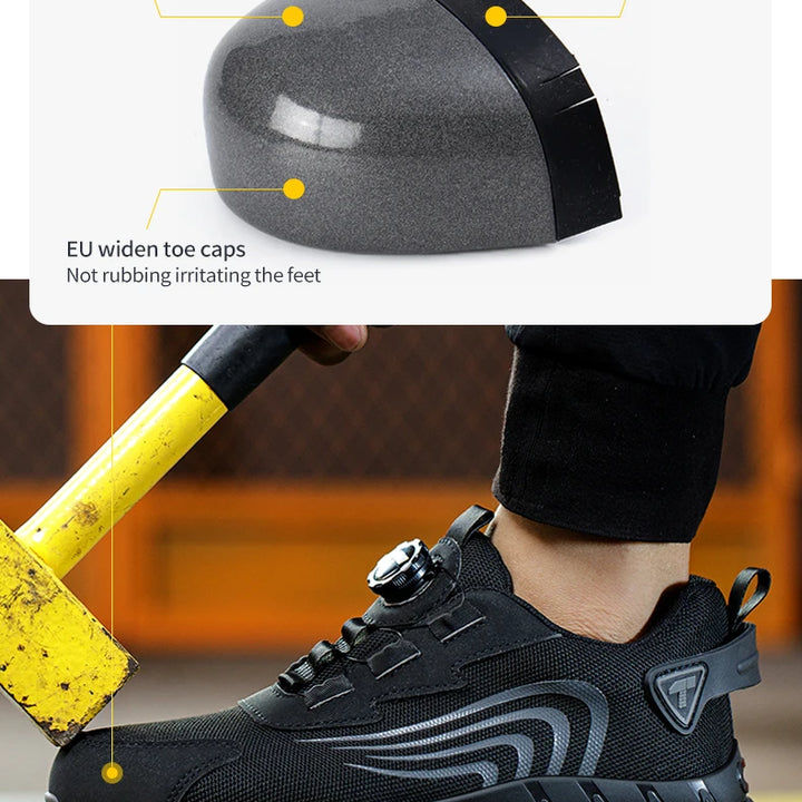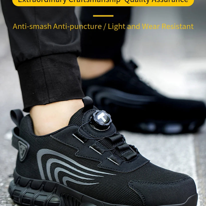 Rotary button new safety shoes for men, anti-impact and anti-piercing work shoes, fashionable men's sports shoes, and safety pro
