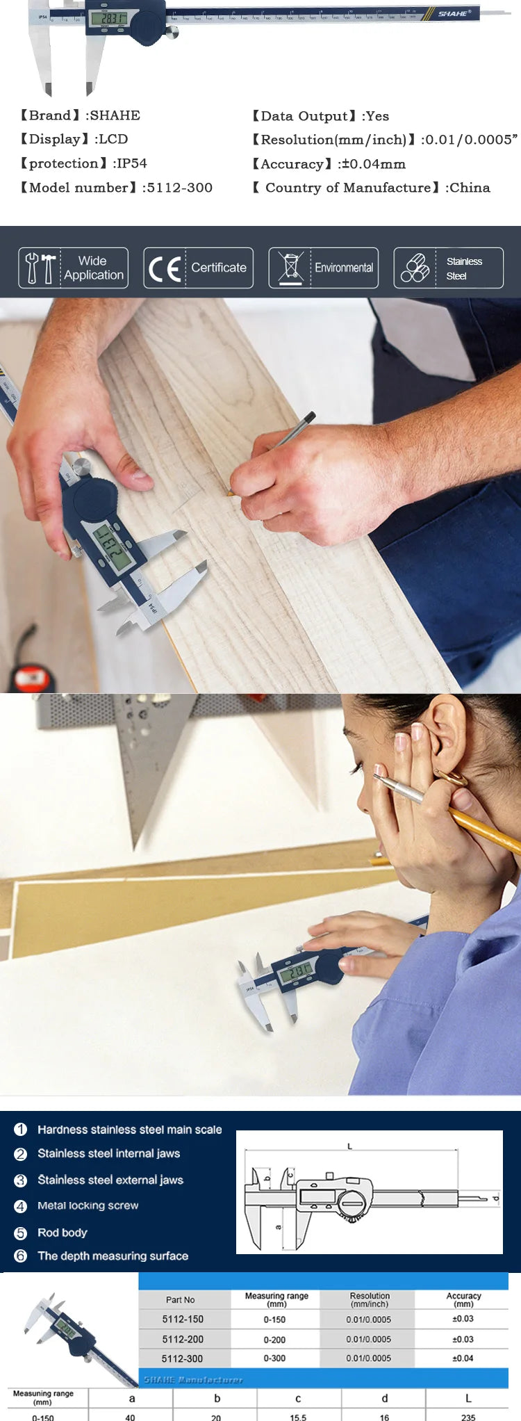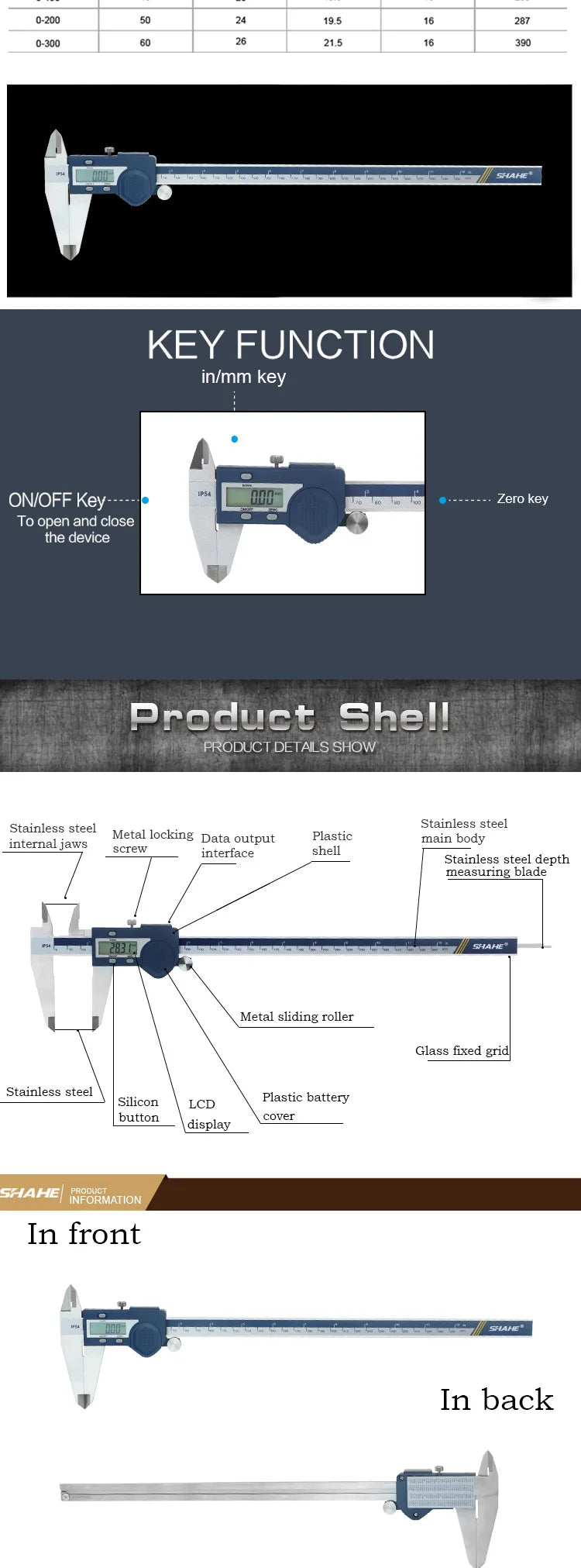 SHAHE 8 Inch Caliper Measuring Tool with Stainless Steel IP54 Protection Electronic Digital Caliper 200mm