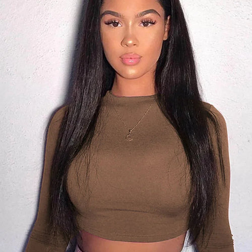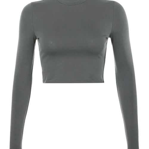 Solid Basic Long Sleeve Womens Tshirt Casual Black White Fashion Crop Top T Shirt Ladies Fashion Korean Tee Shirt