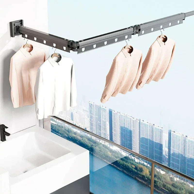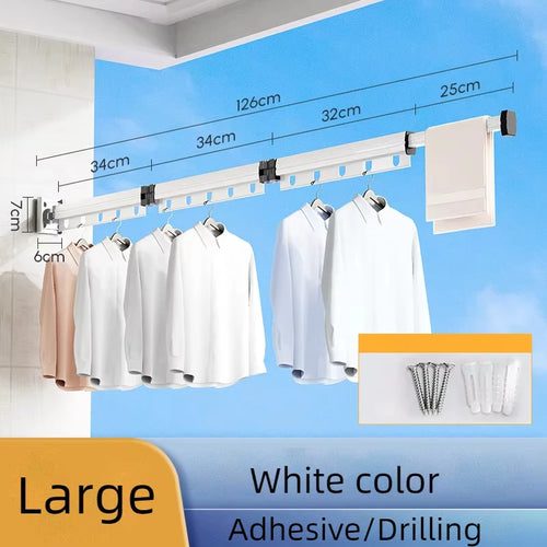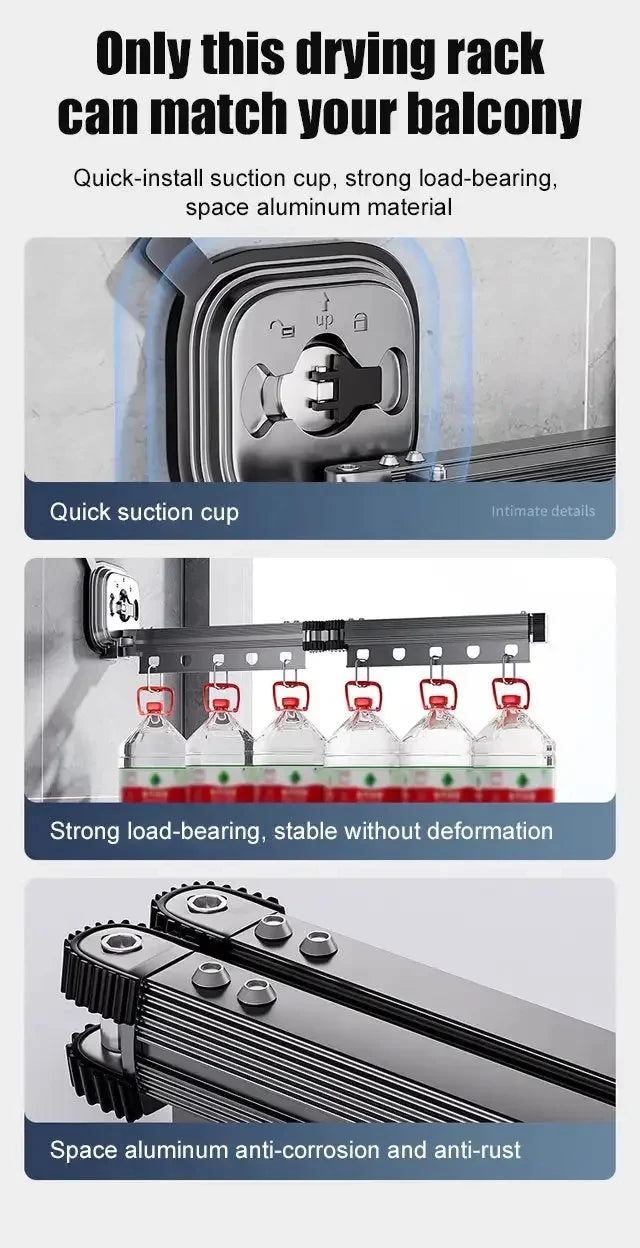 Suction/Drill Wall Mount Folding Clothes Drying Rack With Retractable Suction Cup Extension Pole Reusable 3-Fold Clothes Rack