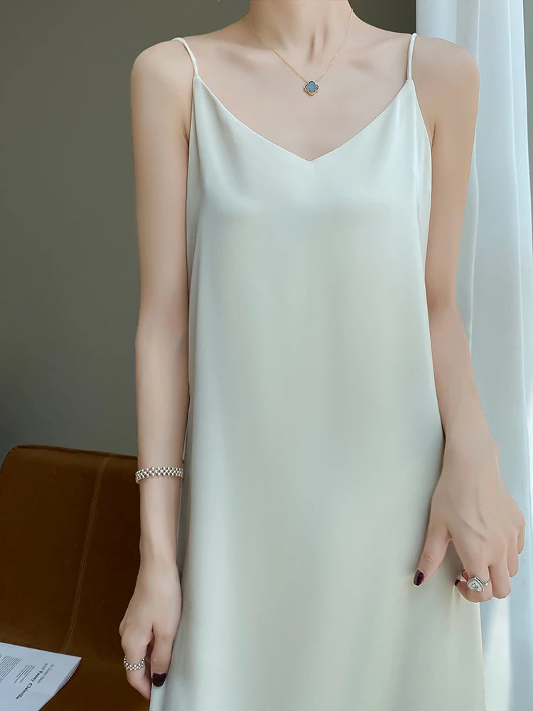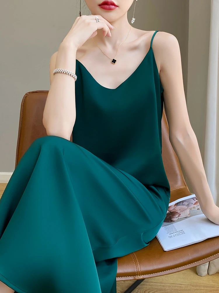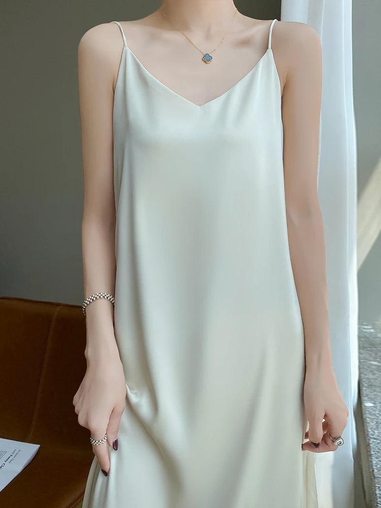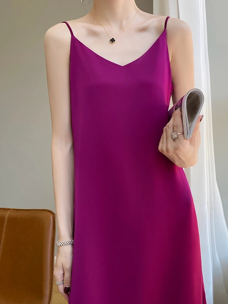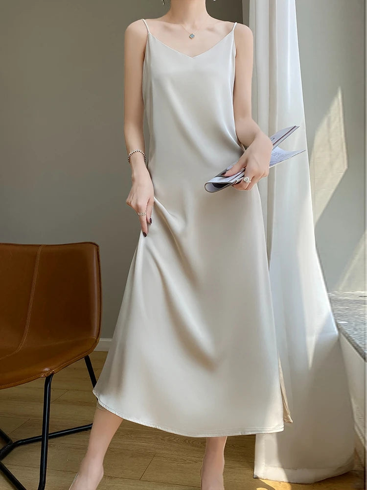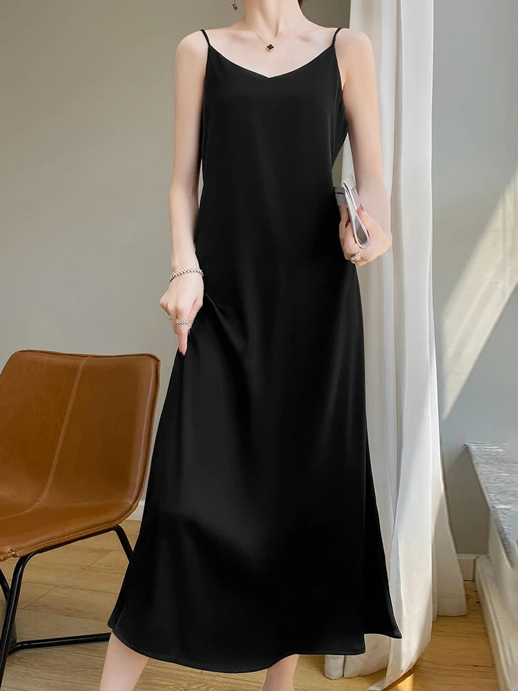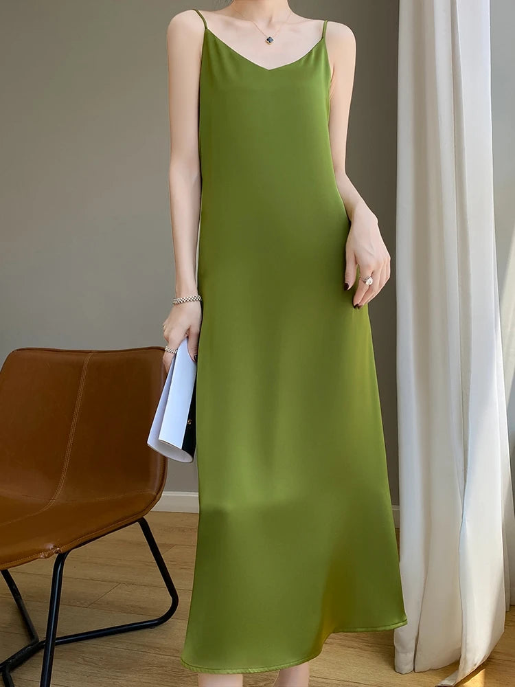 Summer Halter Dress Female Silk Silk Silk High Grade Satin Solid Color Long A-Line Skirt Waist Show Thin Cover Meat RW D13