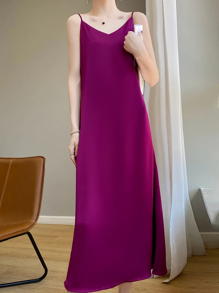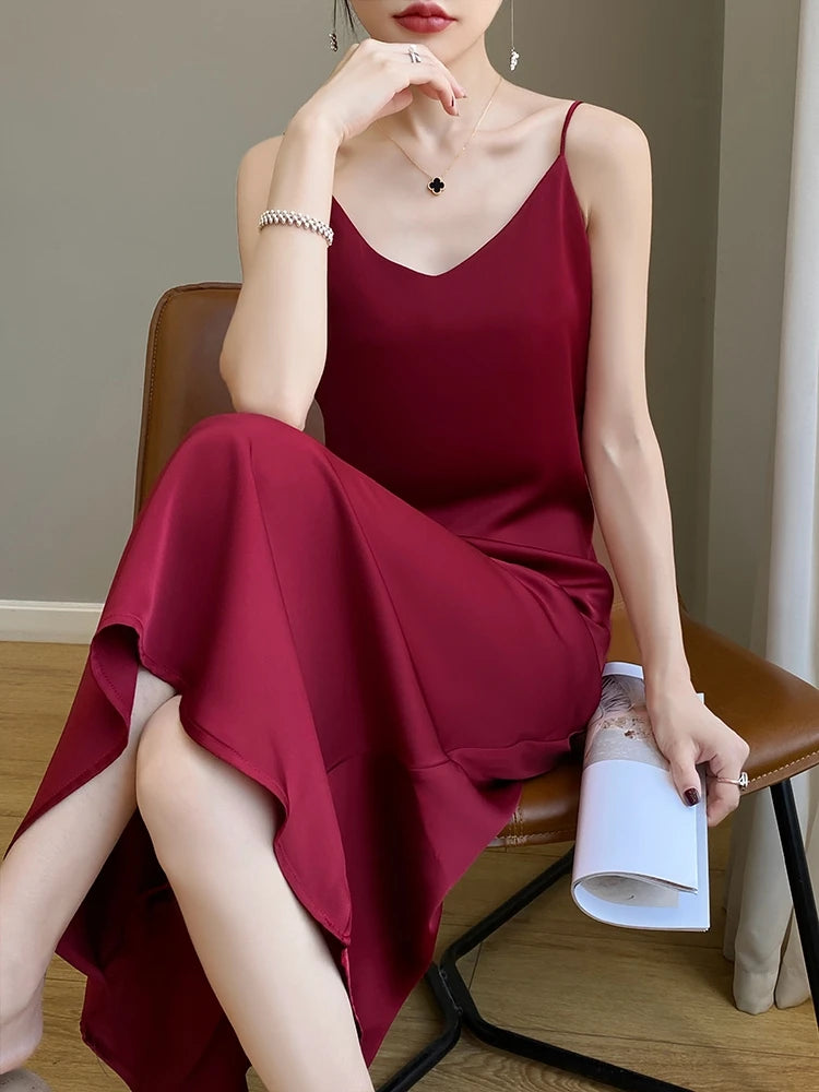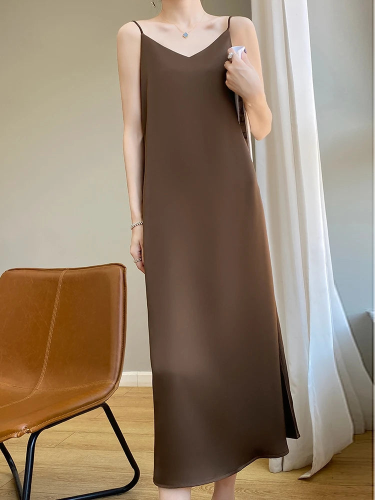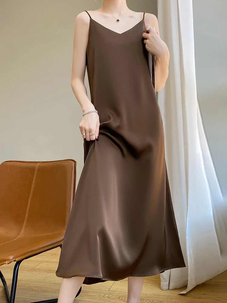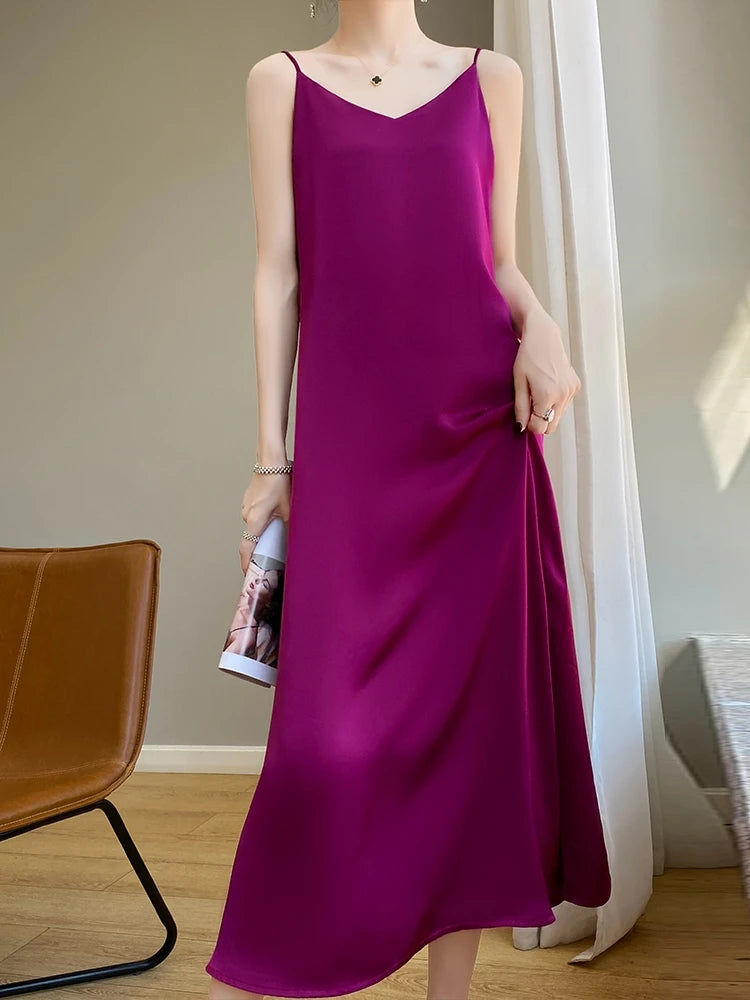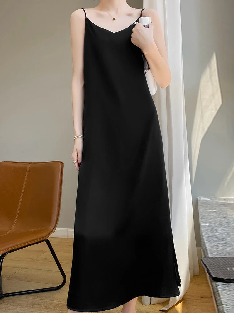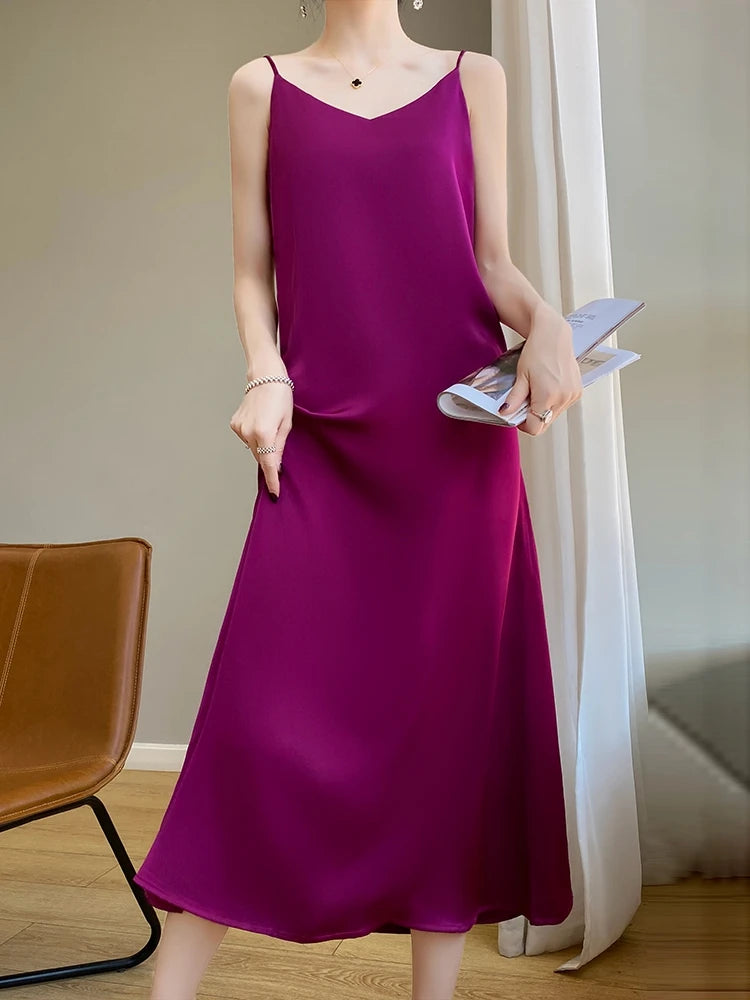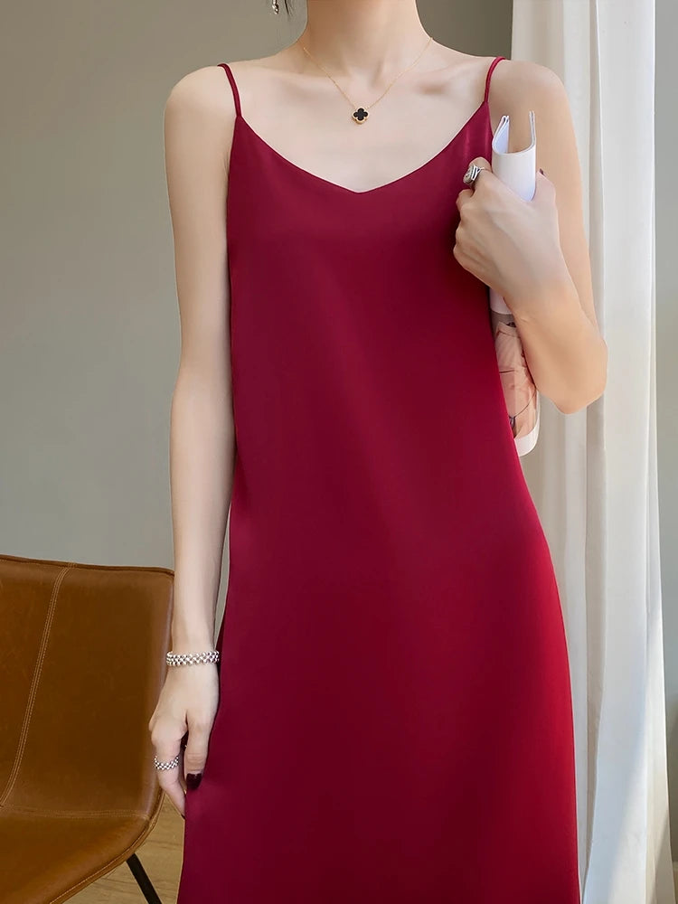 Summer Halter Dress Female Silk Silk Silk High Grade Satin Solid Color Long A-Line Skirt Waist Show Thin Cover Meat RW D13