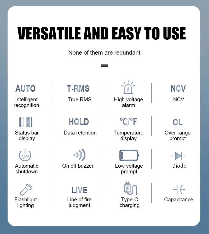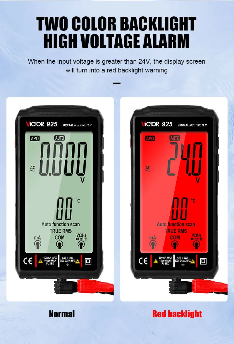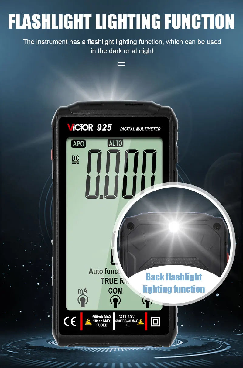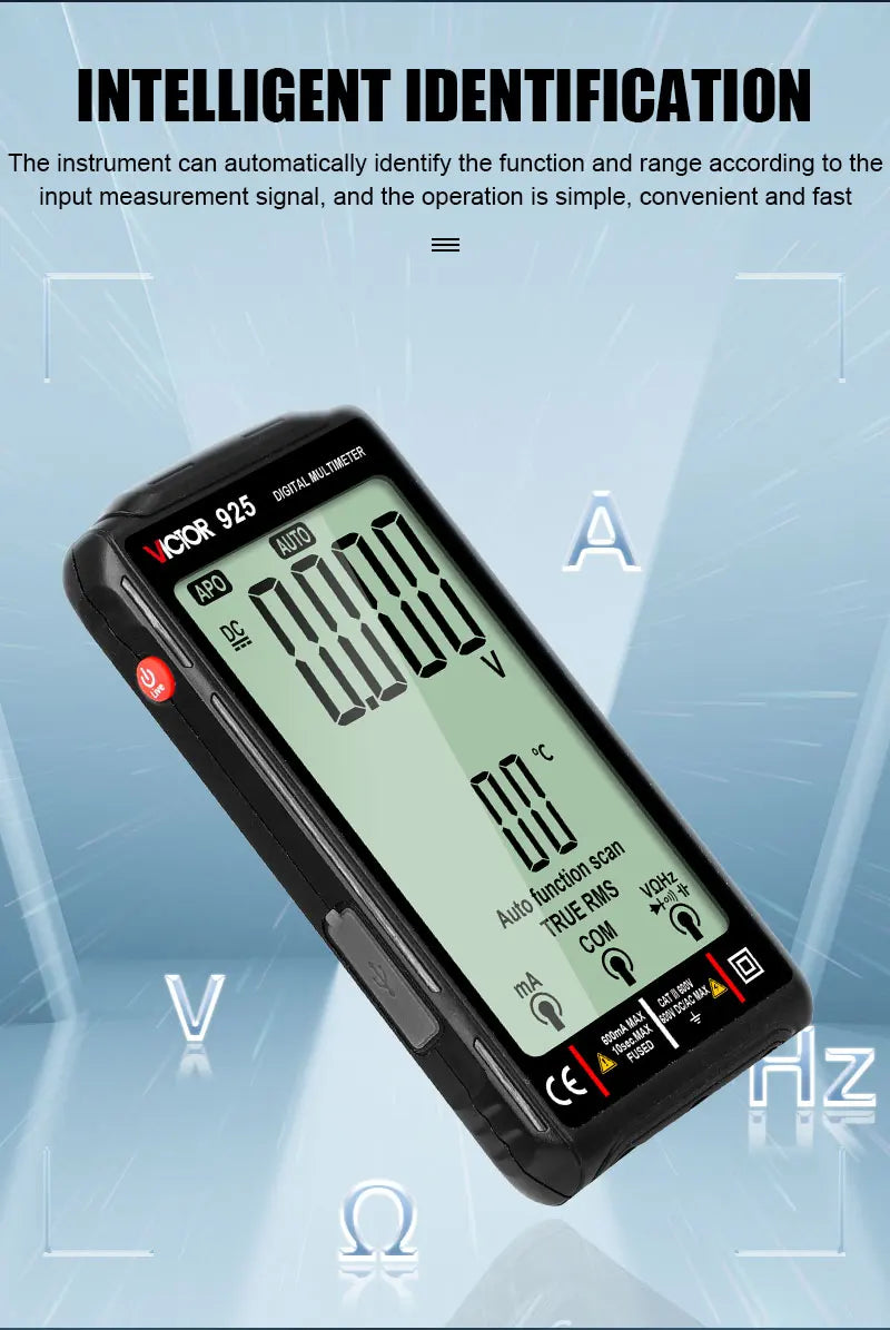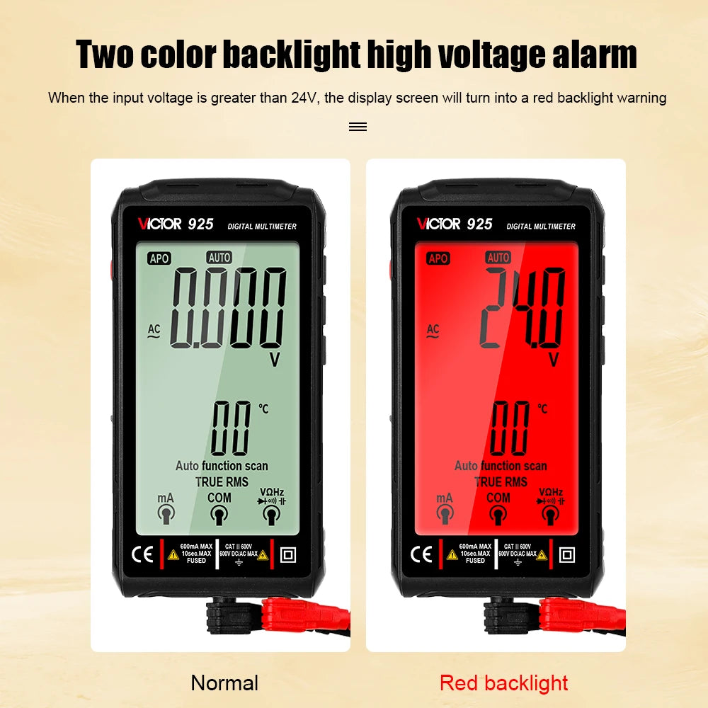 Victor 925 Digital Multimeter Full Screen 10000 Counts LCD Display NCV Diode 500mAh Lithlum Battery Frequence New Smart Tester