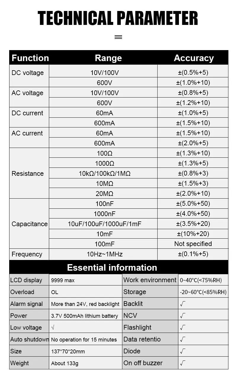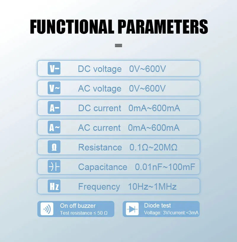 Measuring Capacitance Range: 100nF 1000nF 10uF/100uF/100OuF/1mF 10mF /100mF