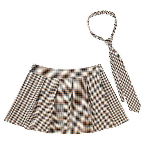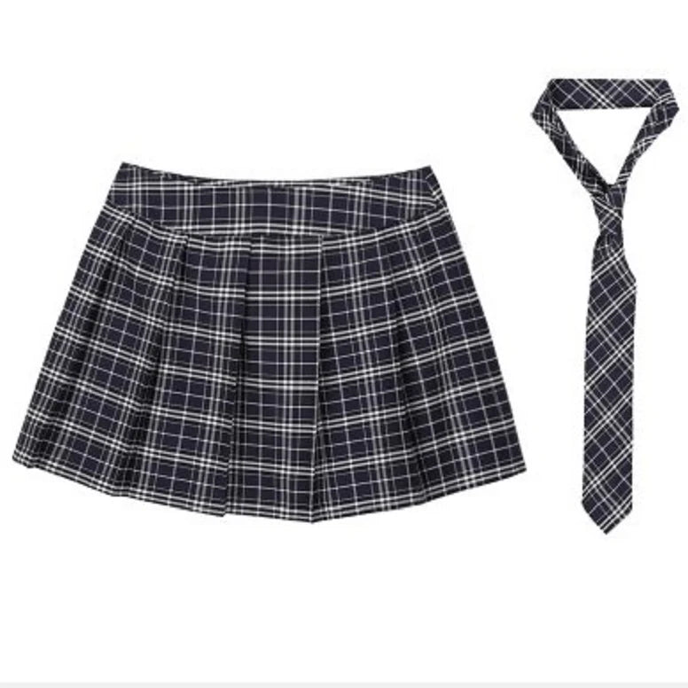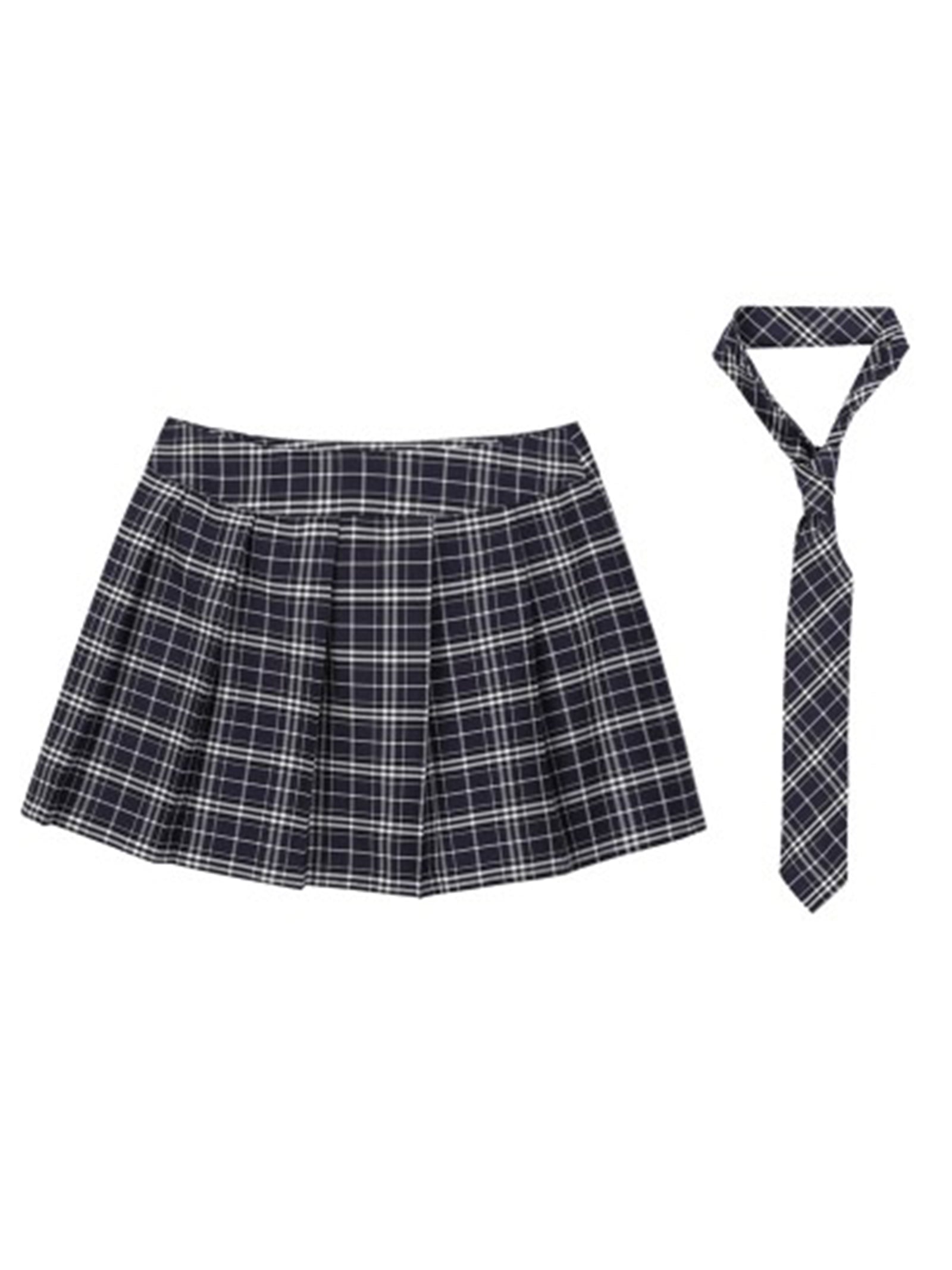 Womens Zipper Plaid Pleated Mini Skirt with Necktie Japanese Schoolgirls Uniform Skirts Cosplay Costume Fancy Dress Ball Outfit