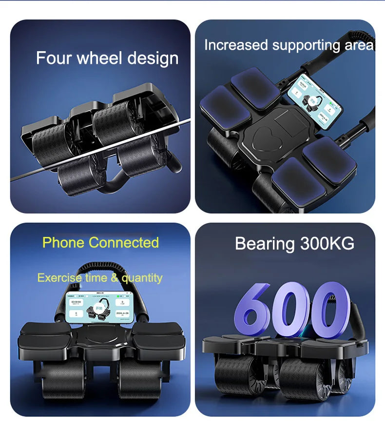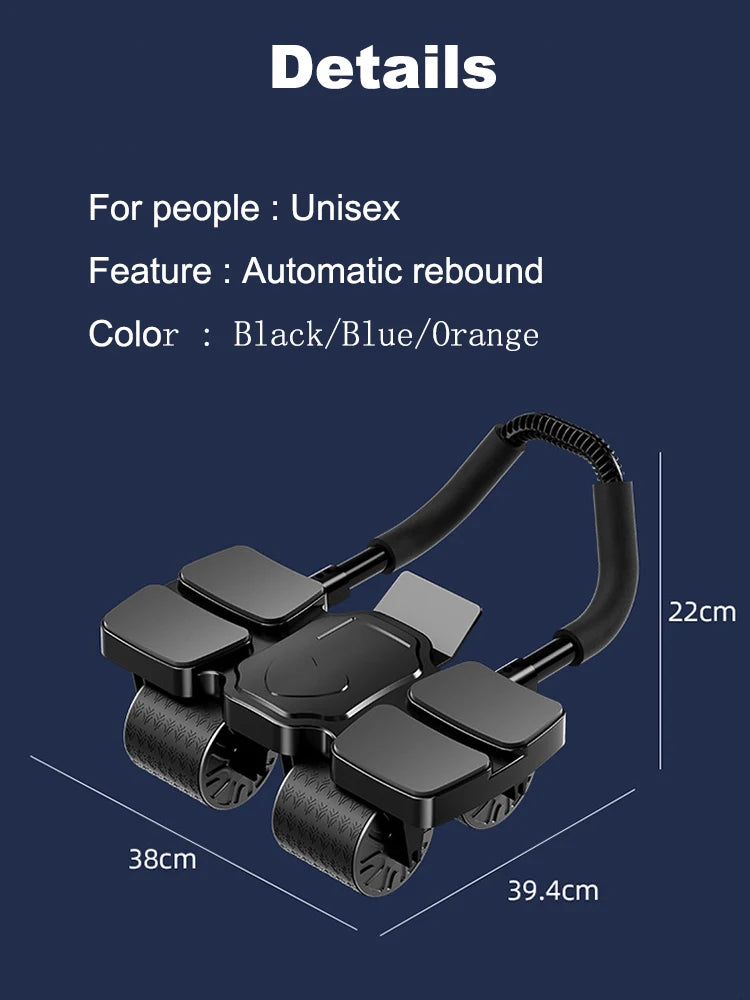 4-Wheel Abdominal Roller with Elbow Support High-Performance Exercise Machine With Automatic Rebound Multi- layered Anti-Slip De