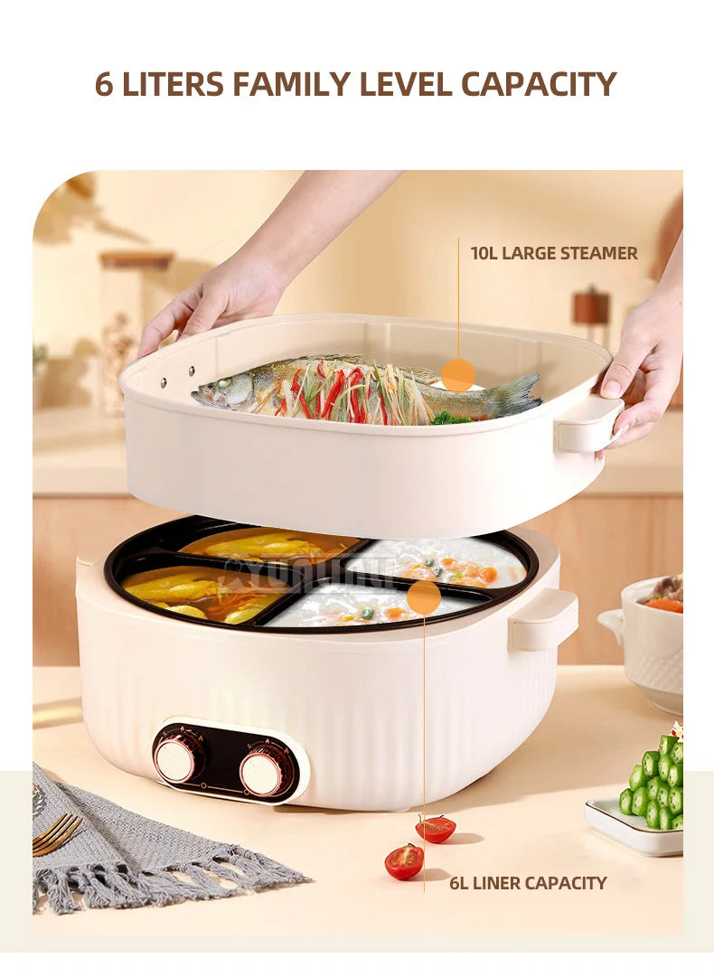6L Multi Cooker Household Large Capacity Four-Grid Hot Pot Eletrodomesticos Para Cozinha Panelas
